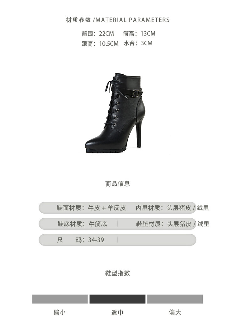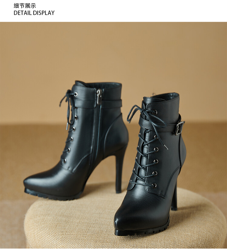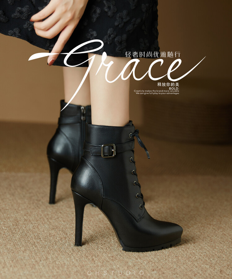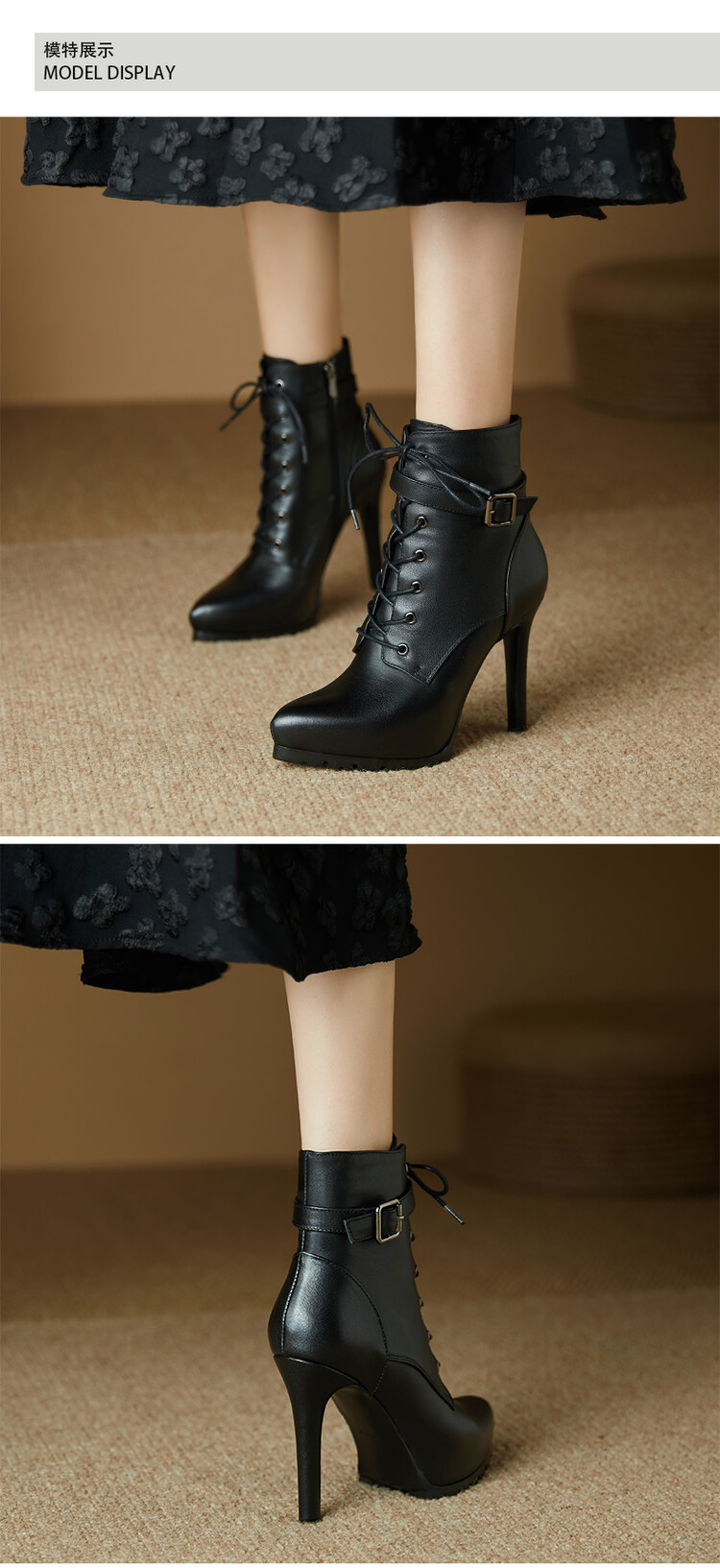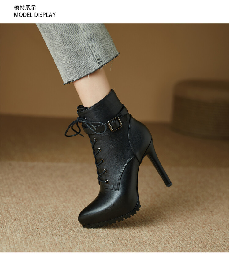 【预售5天】真皮防水台马丁靴秋冬新款超高跟鞋圆头靴子粗跟小个子短靴1&858