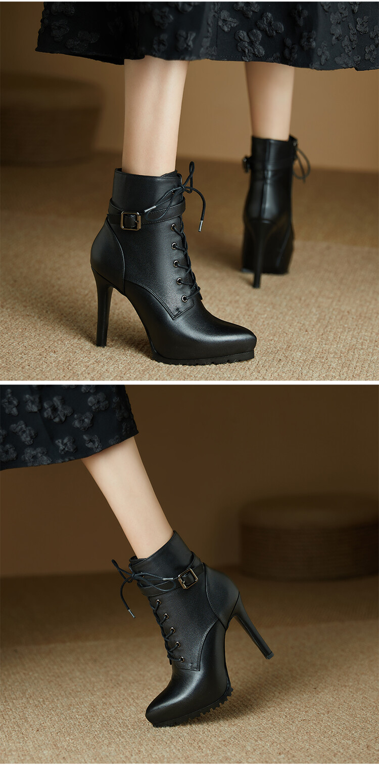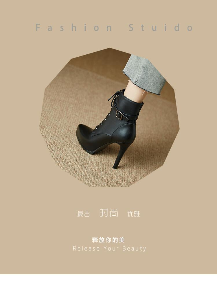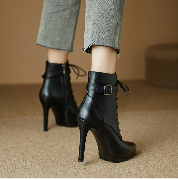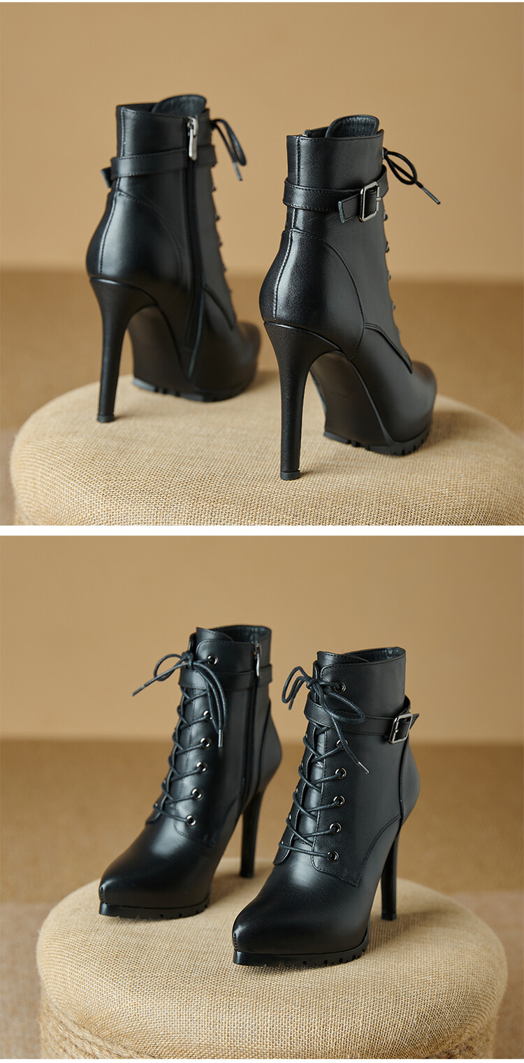 【预售5天】真皮防水台马丁靴秋冬新款超高跟鞋圆头靴子粗跟小个子短靴1&858
