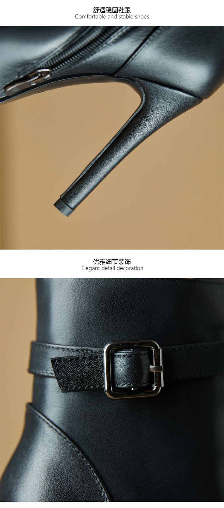 【预售5天】气质温柔风粗跟小方头裸靴小短靴冬季新款羊皮韩版时装靴DQ&DQ6805W