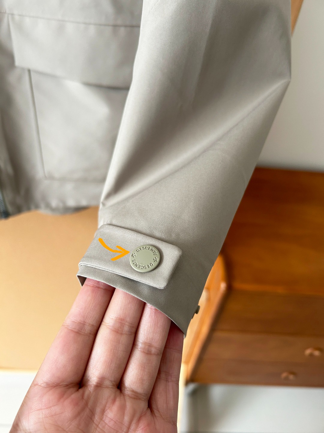 单独袖子前后做了不同的拼接,袖口两颗扣子的收紧处理!!