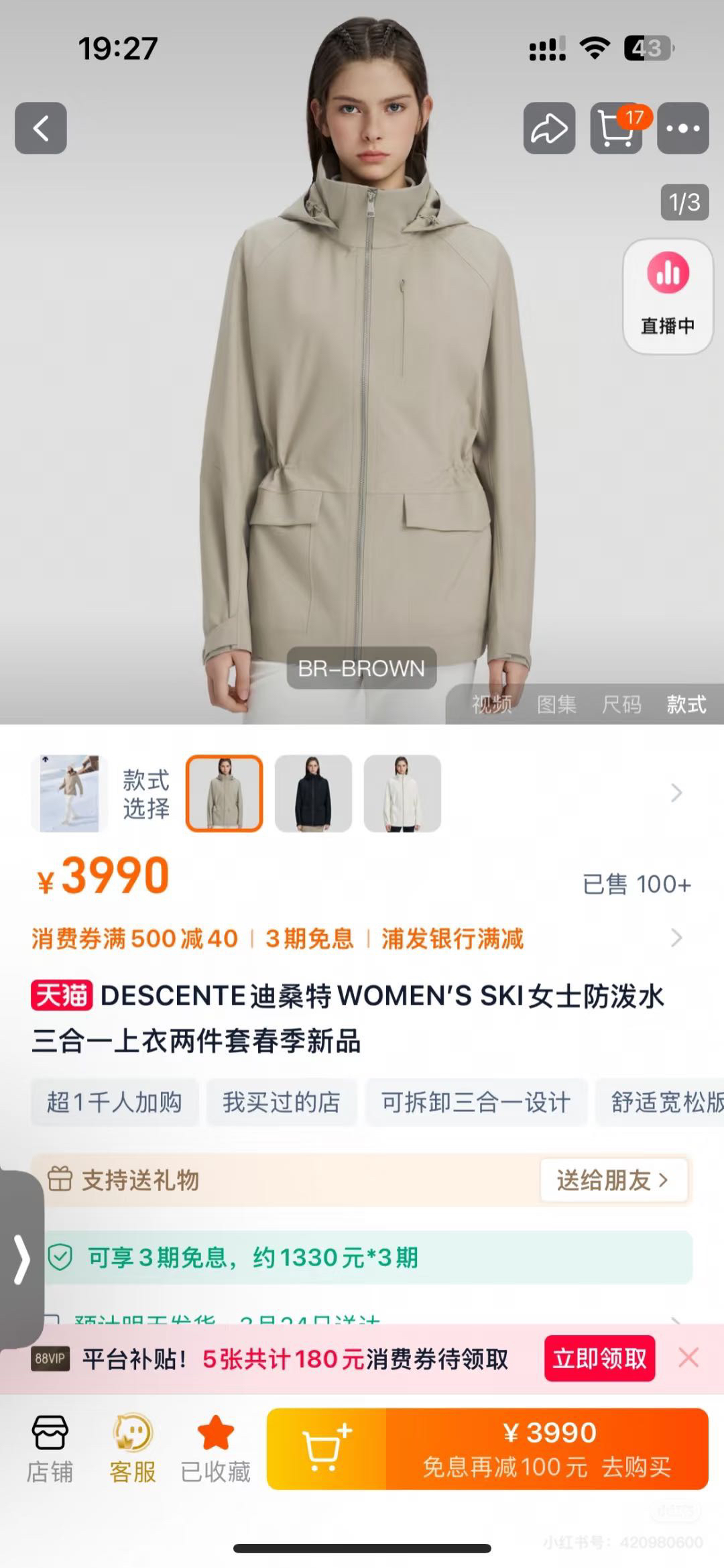 迪桑特WOMEN'S SKI女士防泼水三合一上衣两件套~这个款是25年的春季款,现在穿也是刚哈合适,基本0度以上就是完美状态,