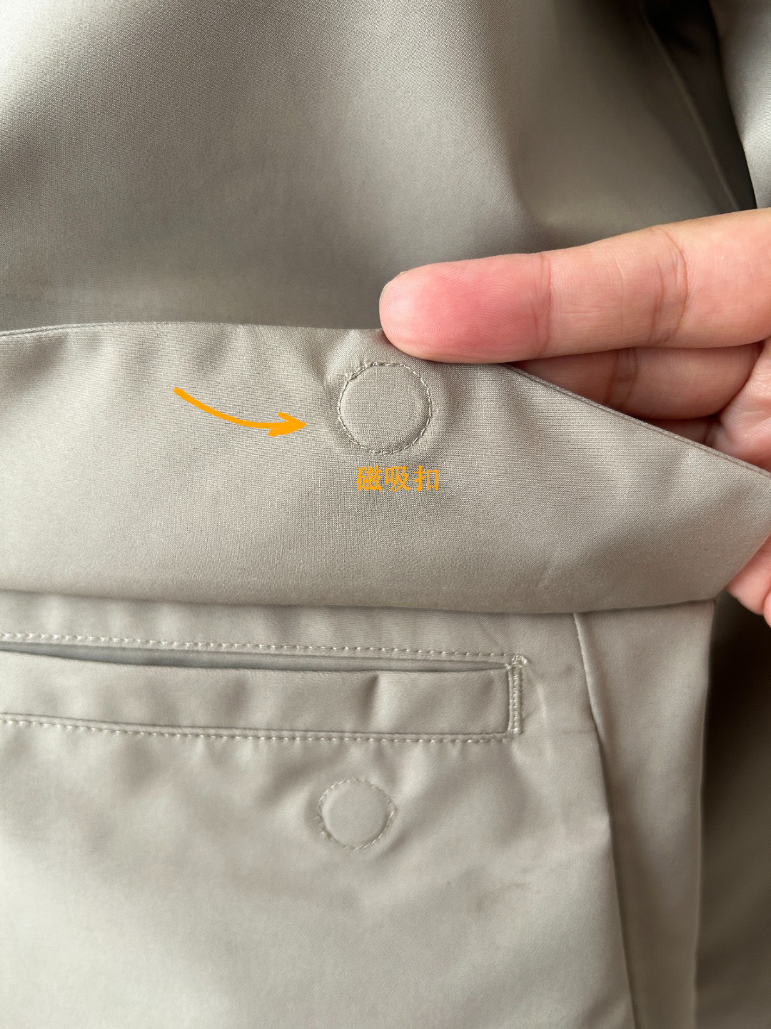 口袋有沿设计,且是磁吸扣开合,松紧度适中!