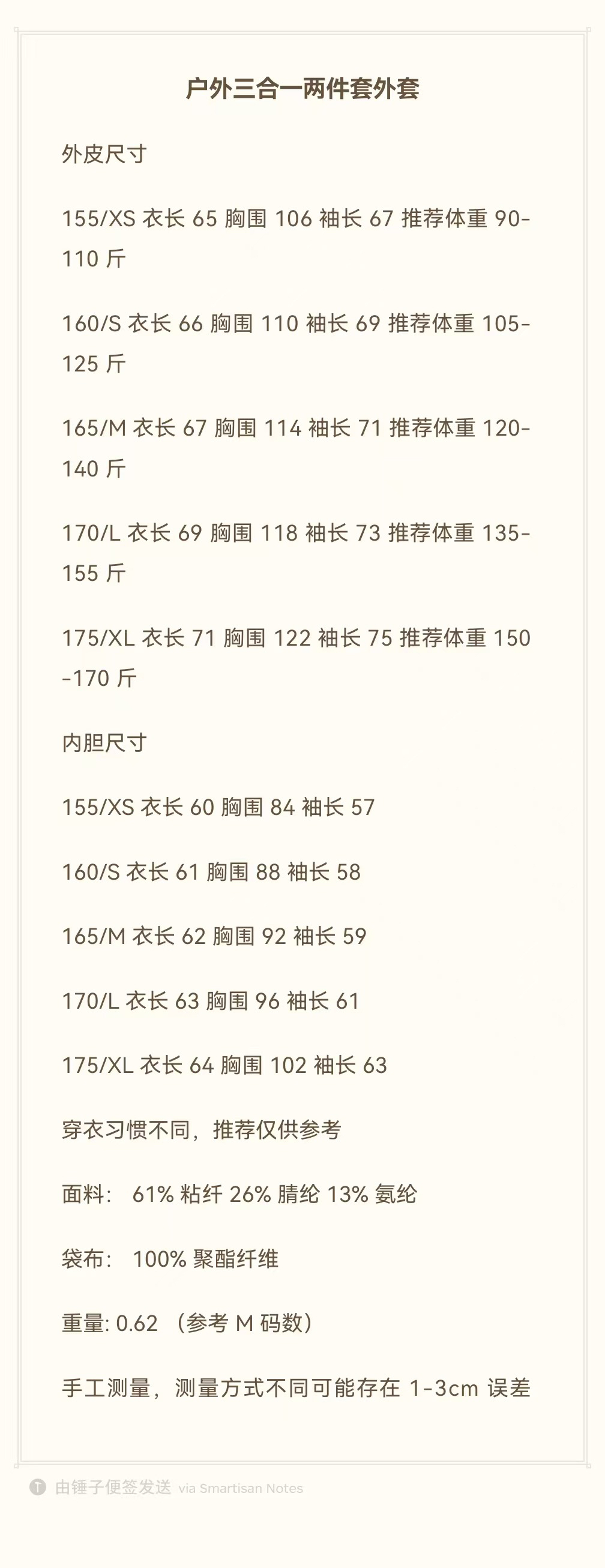 ✅中长款的版型~三合一款!跟软壳在我心中都是属于最合适的版~一件衣服可以满足不同需求的穿搭,基本除了夏天,三合一三季都可以穿搭,非常的方便!!