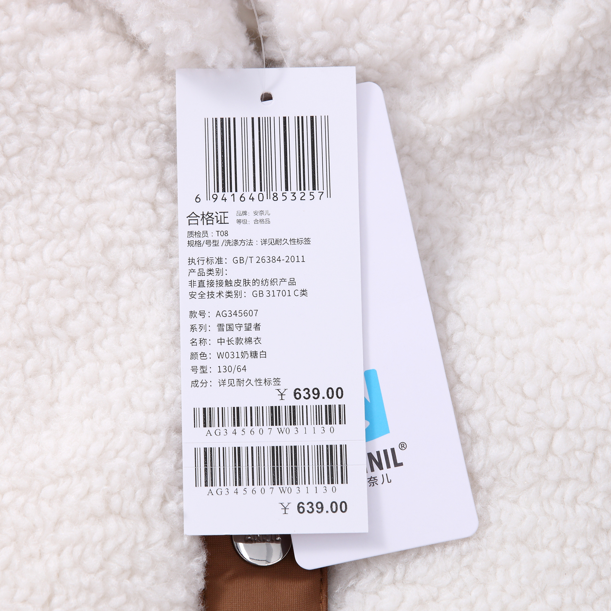 【实体店同款】女童棉服新款冬棉衣保暖外套安奈儿童装AG345607