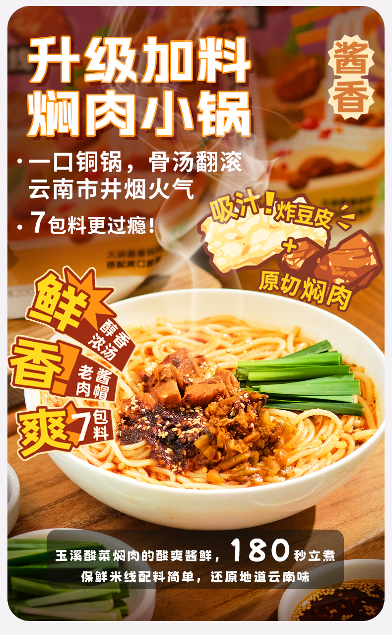 【限时特惠】德和玉溪酸菜焖肉小锅米线372g*3袋 云南特产#米线