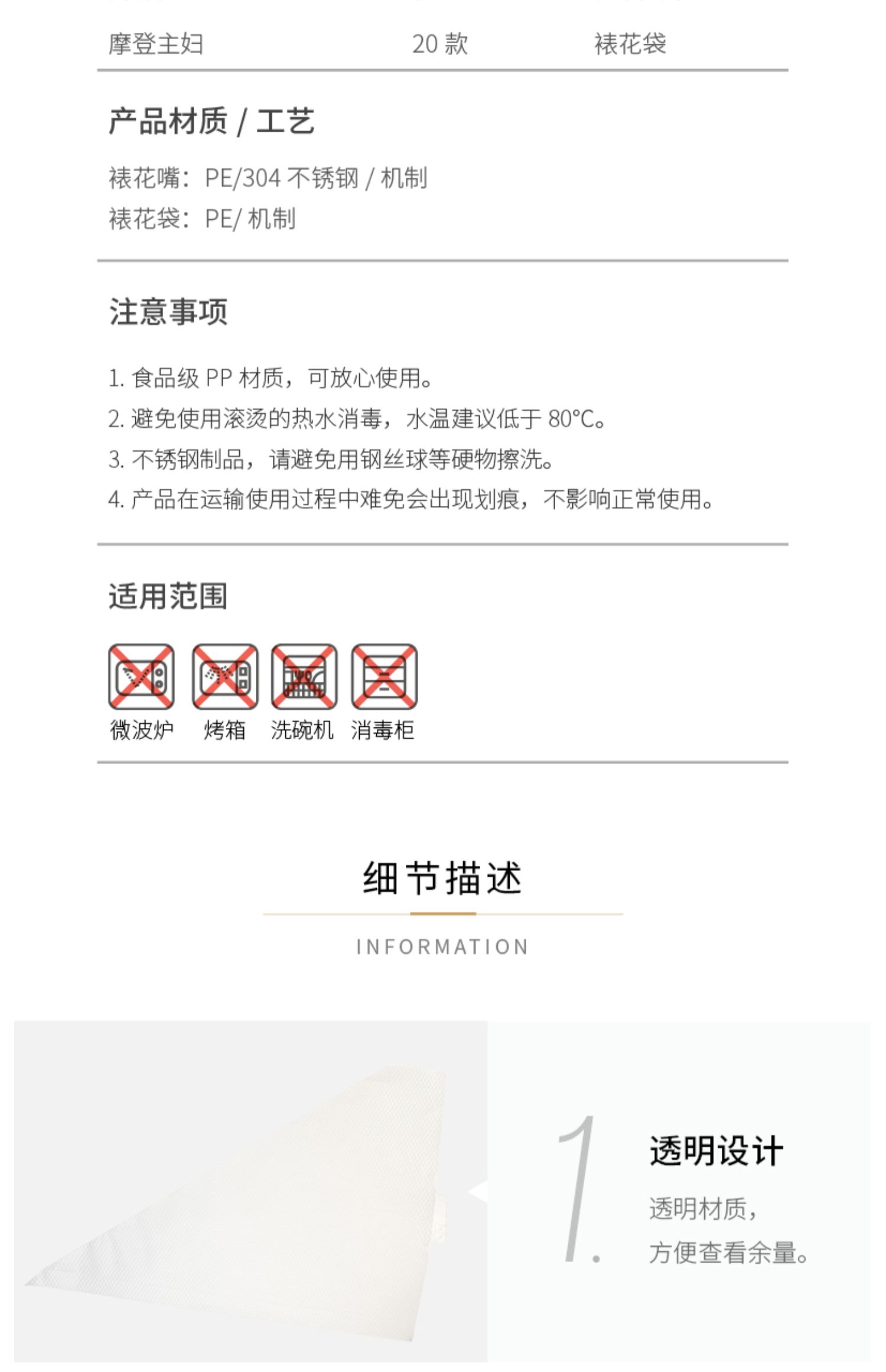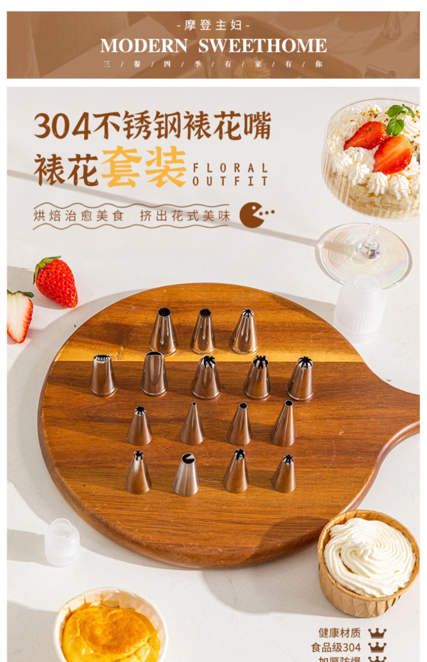 摩登主妇裱花袋嘴宝宝辅食食品级蛋糕曲奇奶油模具一次性烘焙工具