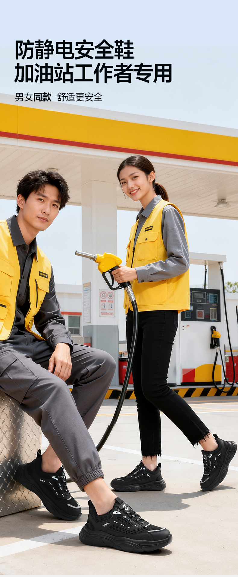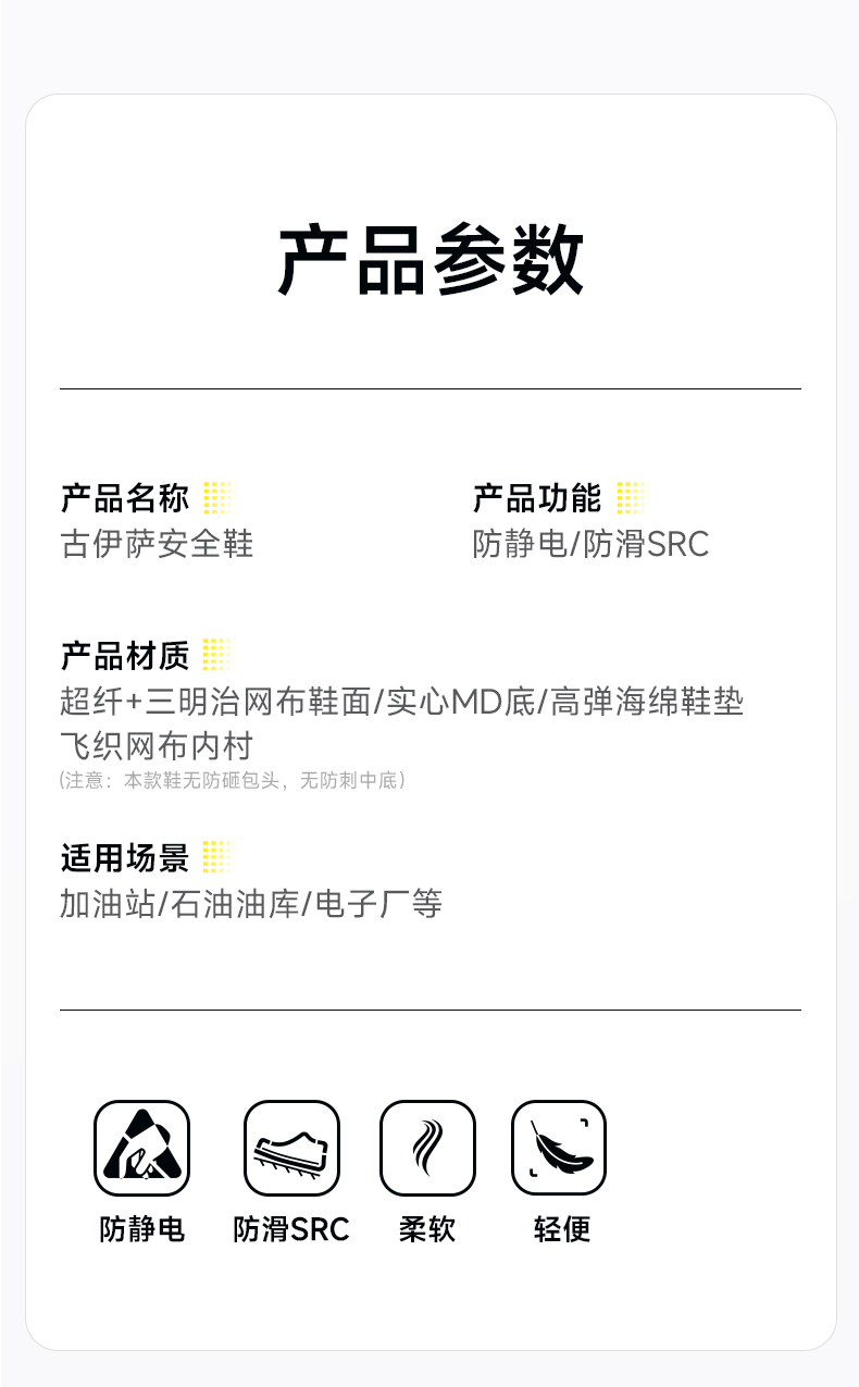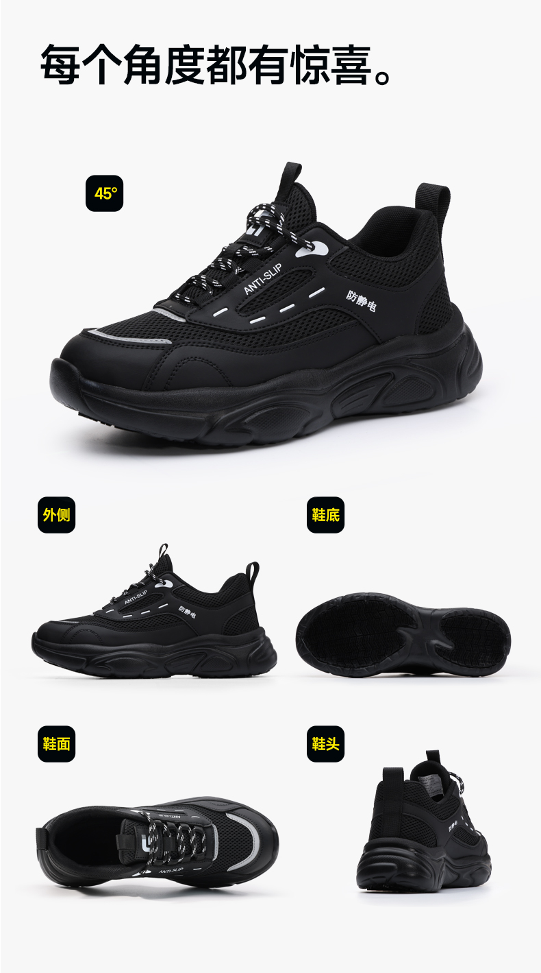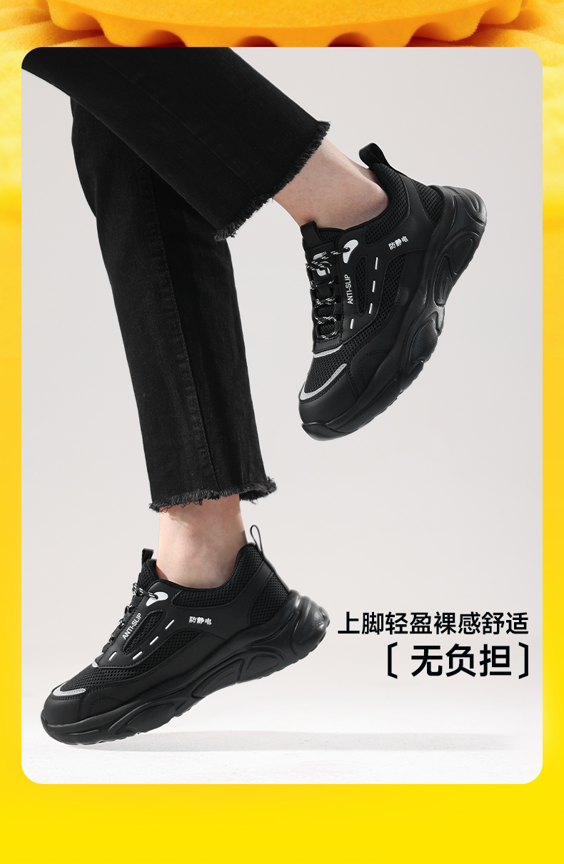 专业防静电新款安全鞋防滑SRC实心MD底无包头无中底四季款低帮