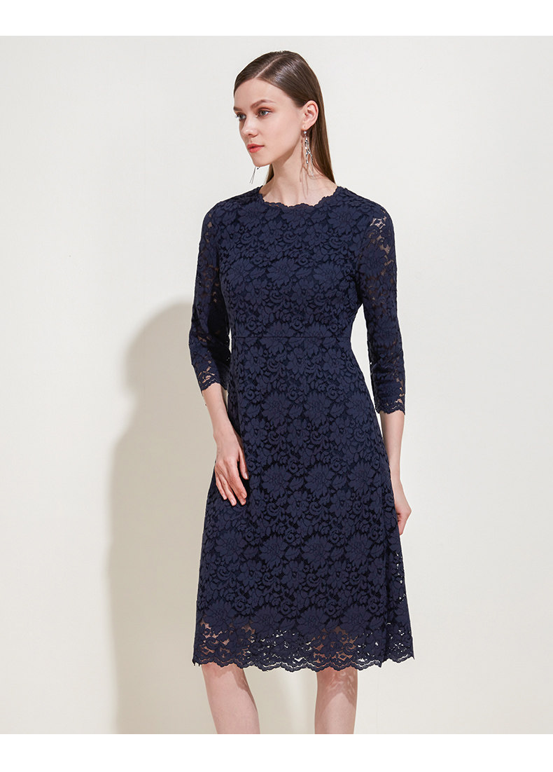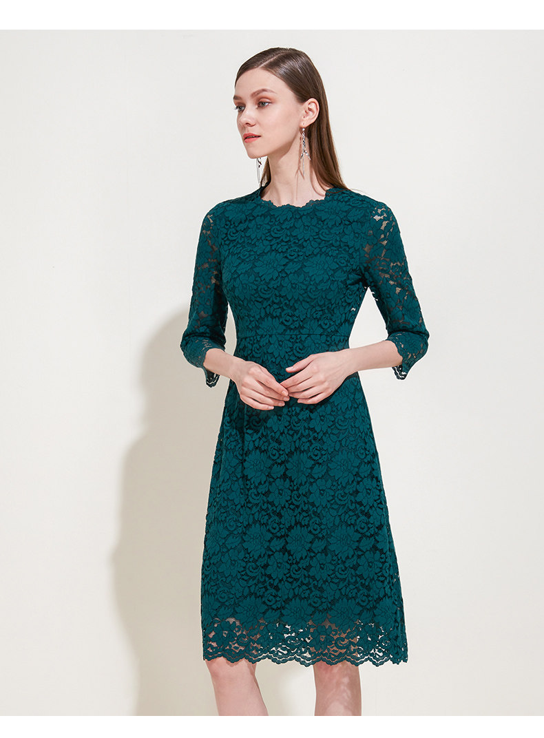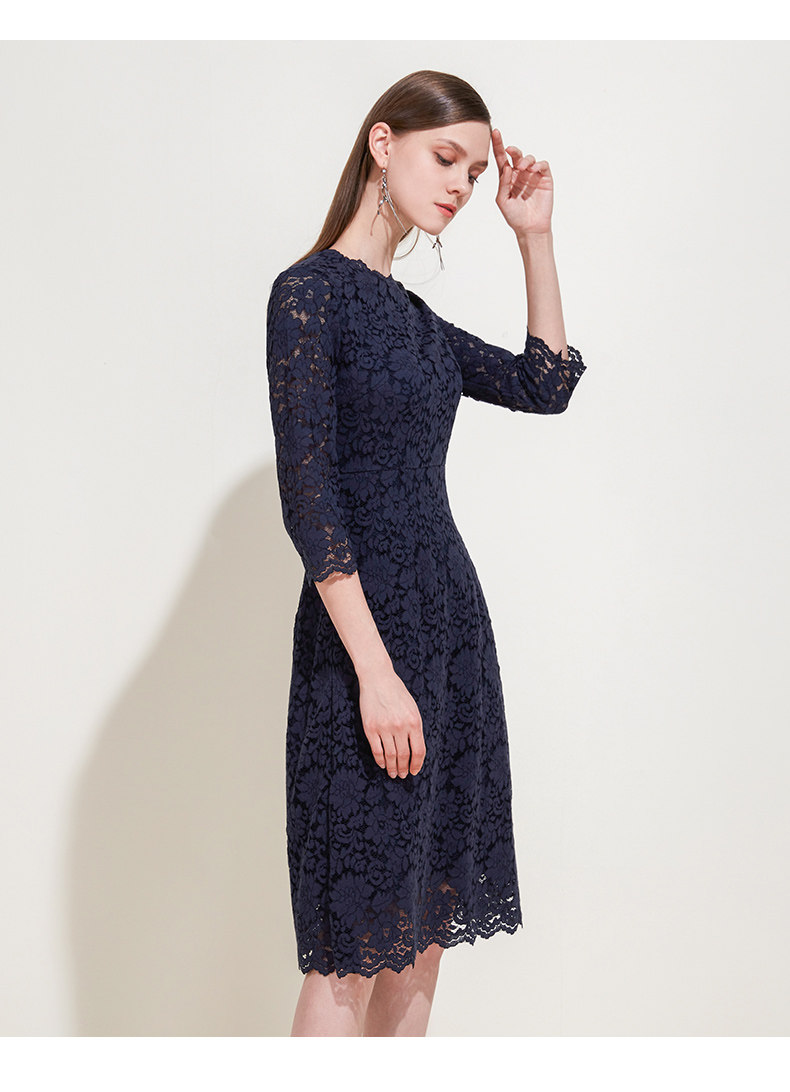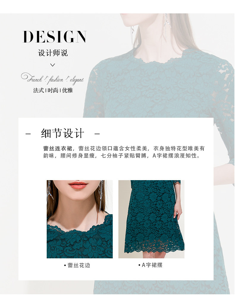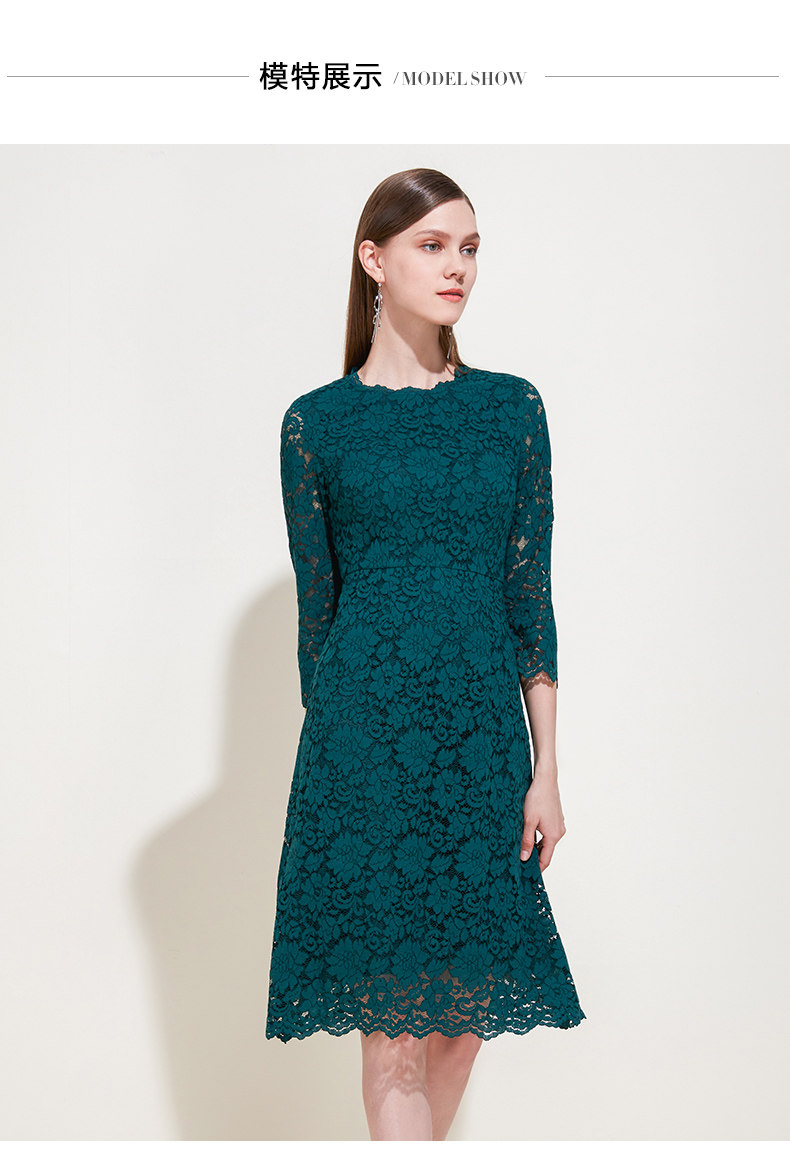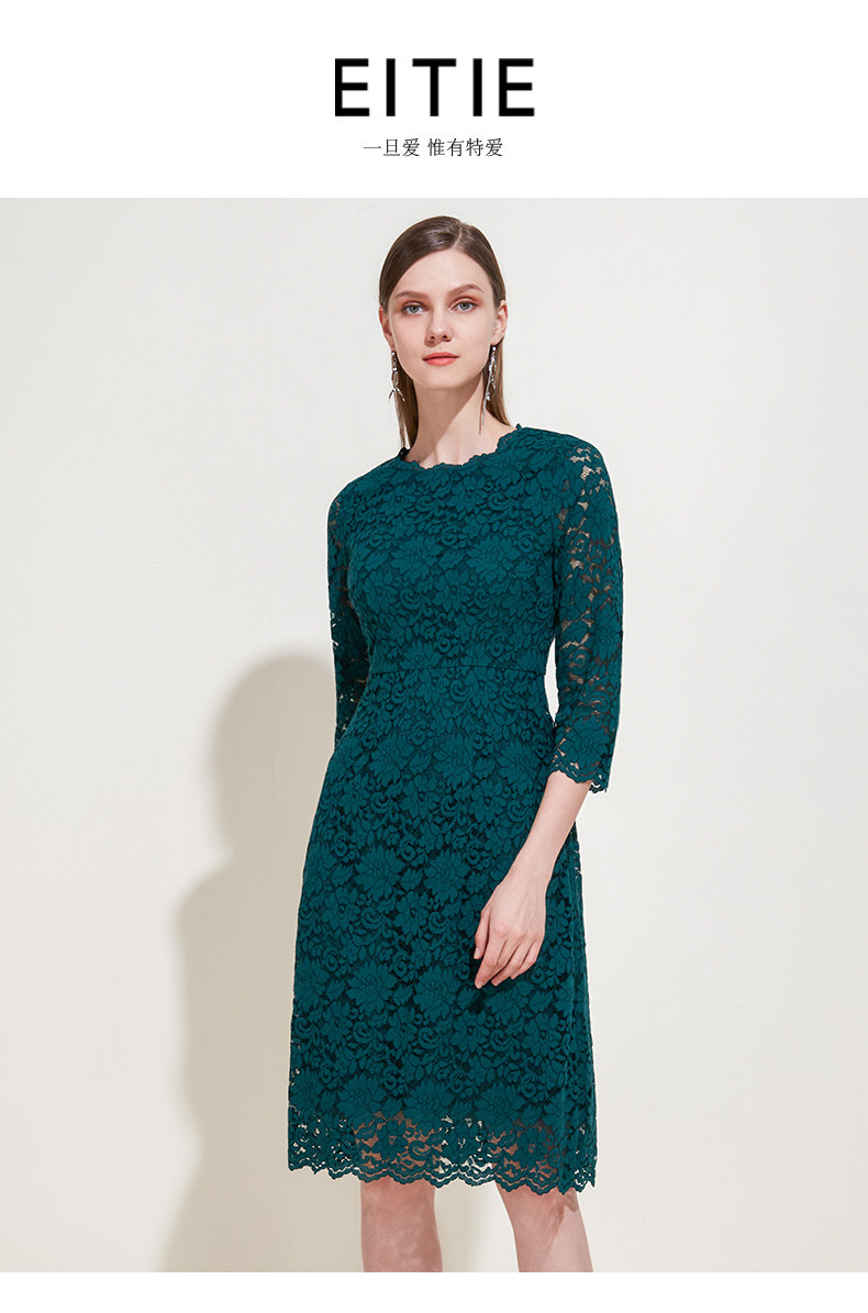EITIE爱特爱女装春夏七分袖花边领口收腰显瘦优雅蕾丝连衣裙5707466