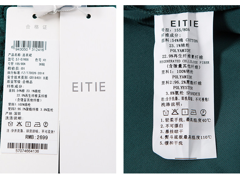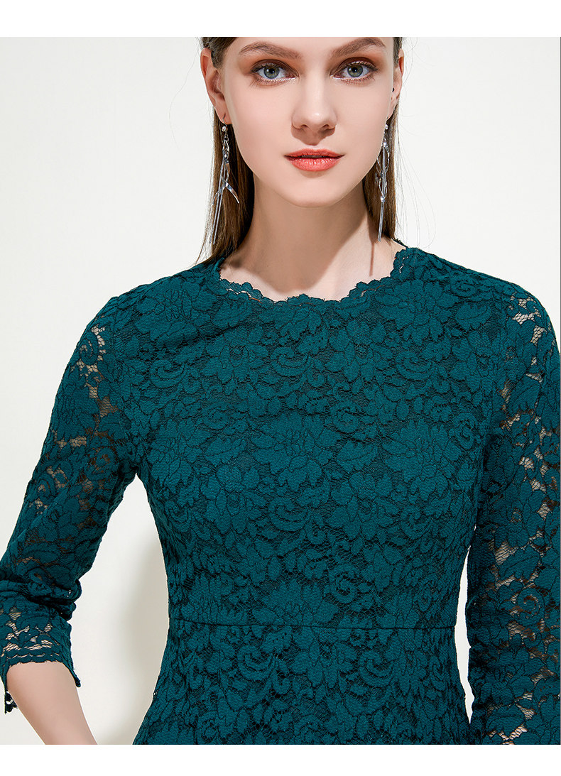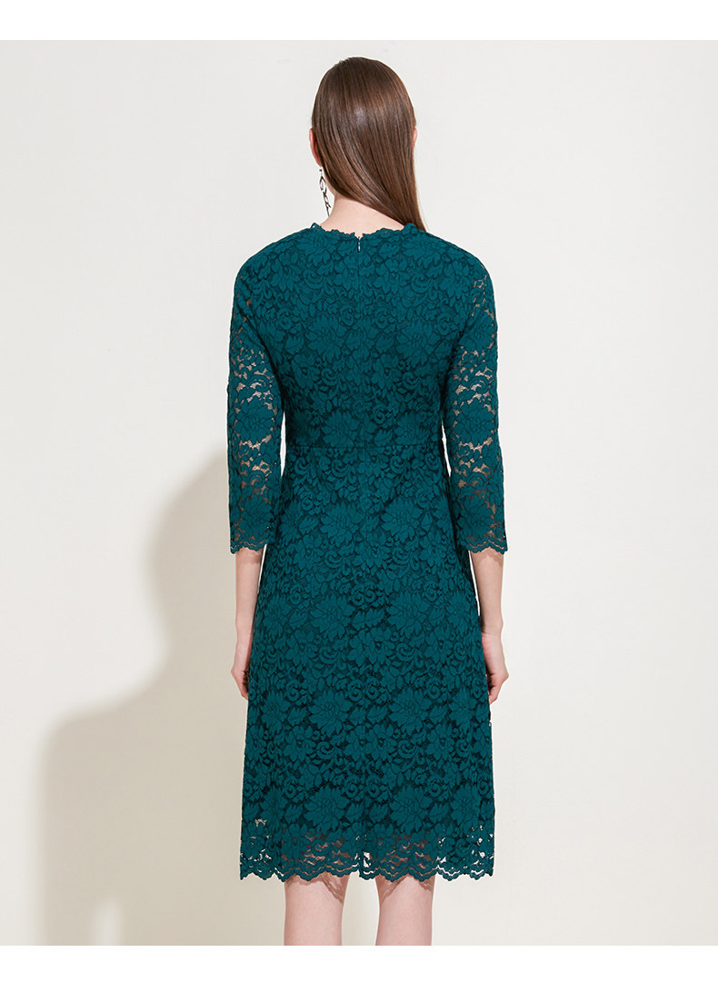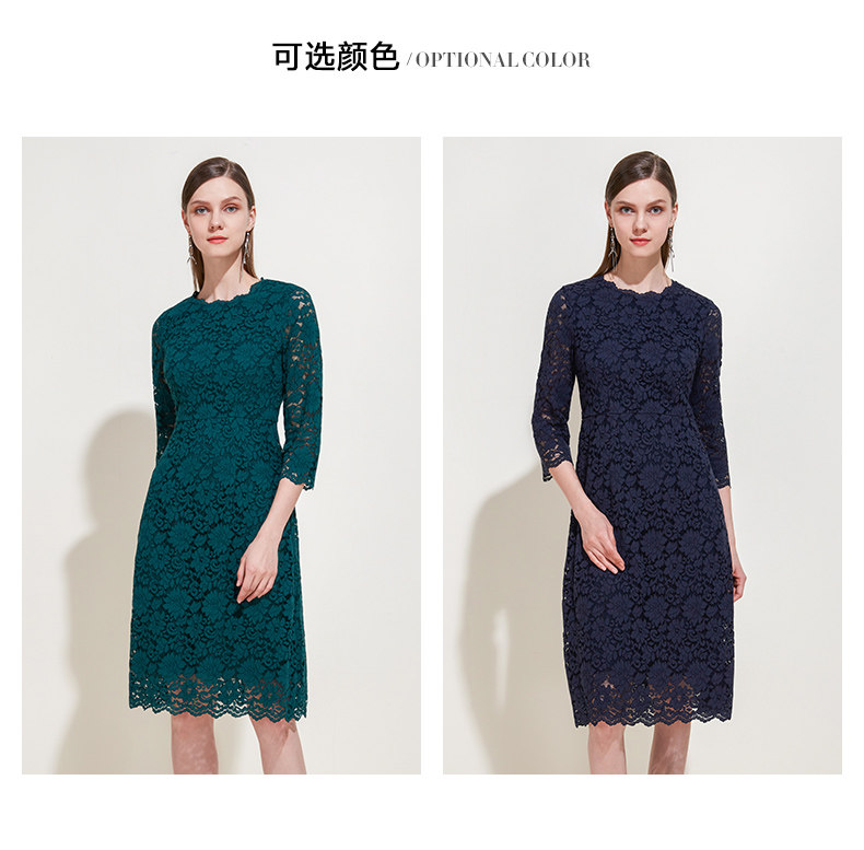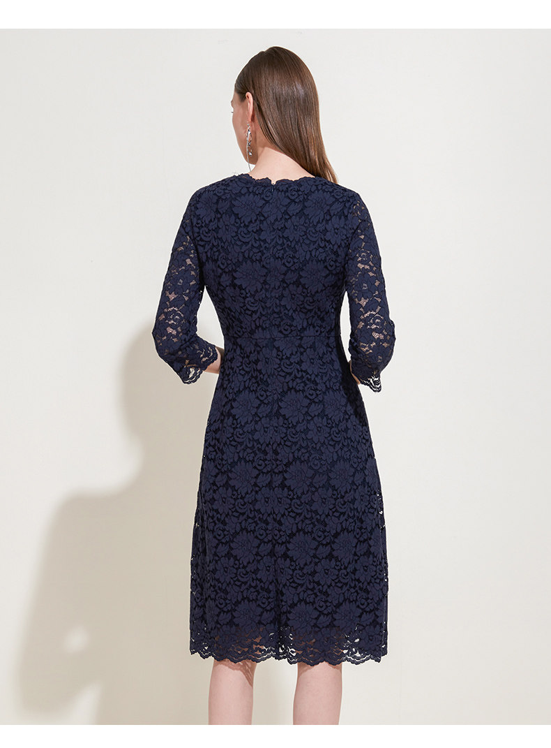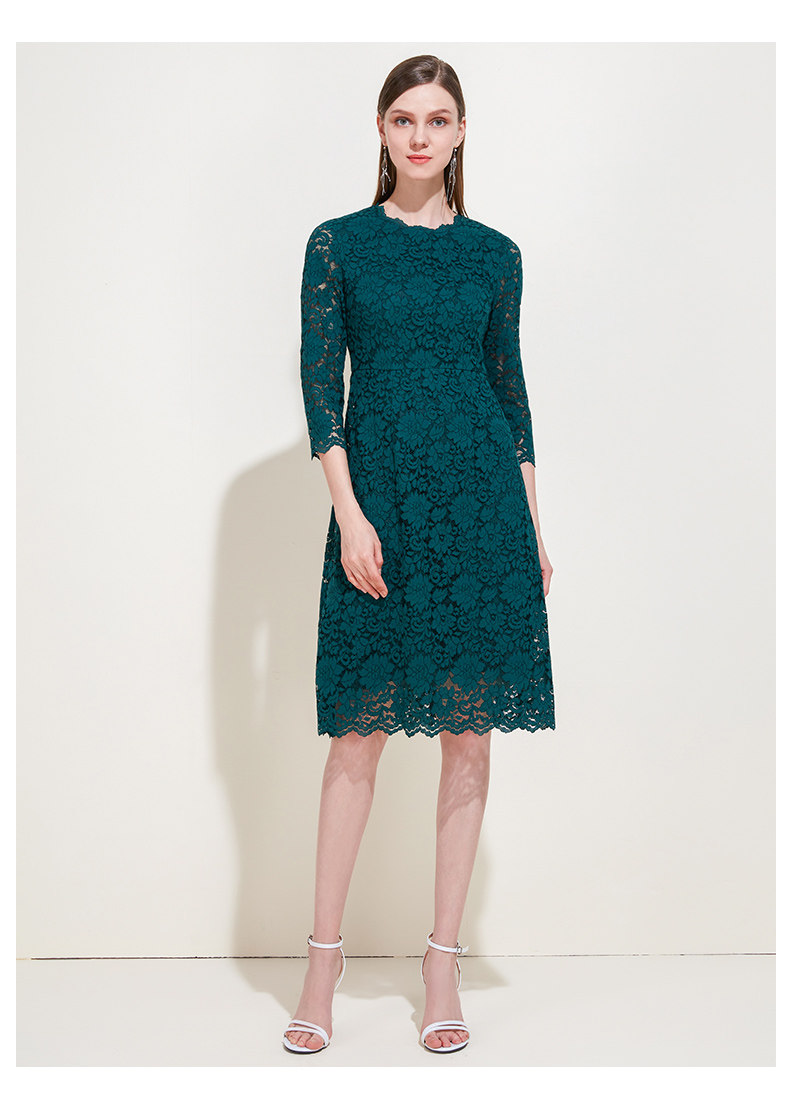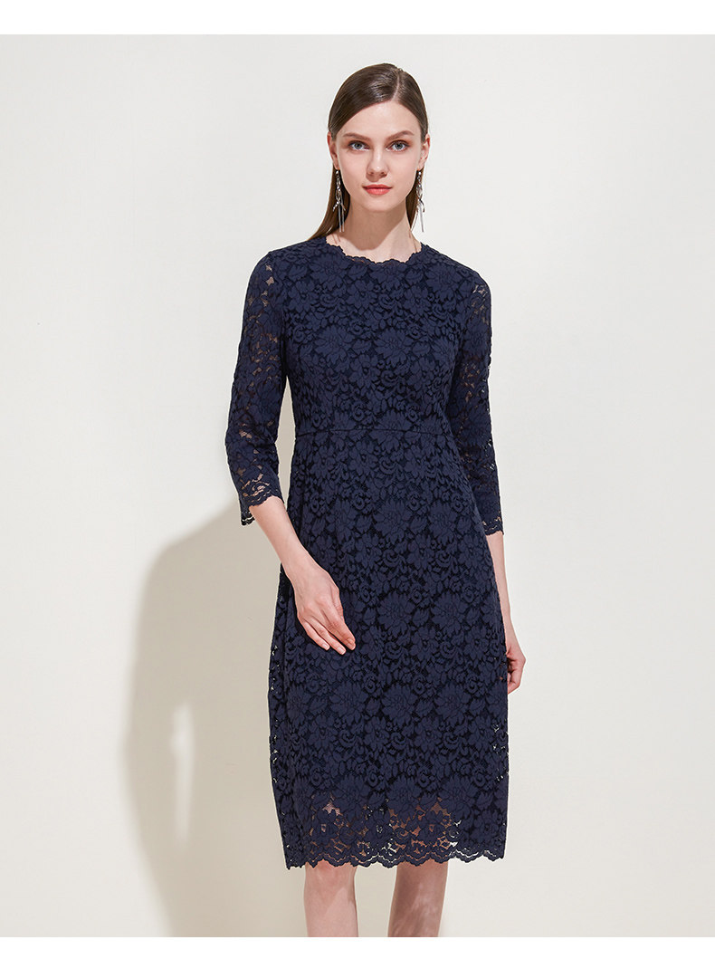 EITIE爱特爱女装春夏七分袖花边领口收腰显瘦优雅蕾丝连衣裙5707466