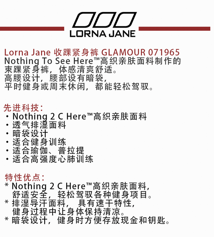 【清仓秒】澳洲Lorna Jane 【收踝紧身裤 GLAMOUR】 071965(清仓产品,收货7天内支持调货、不退款)