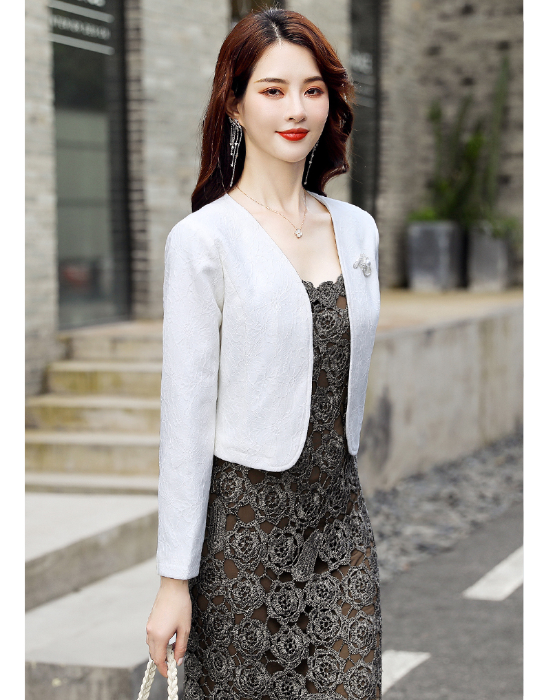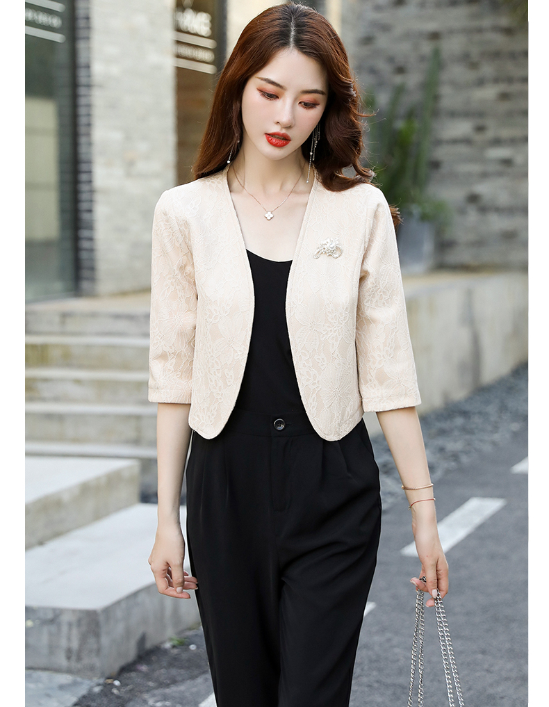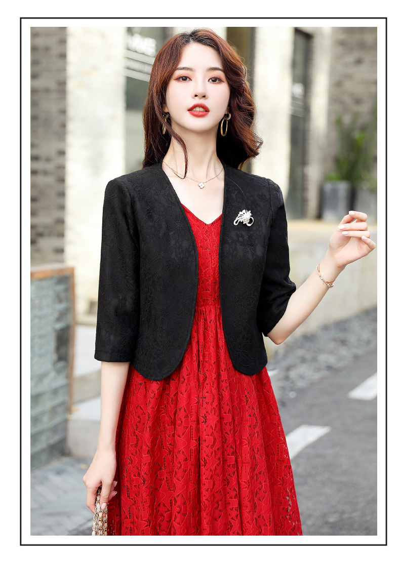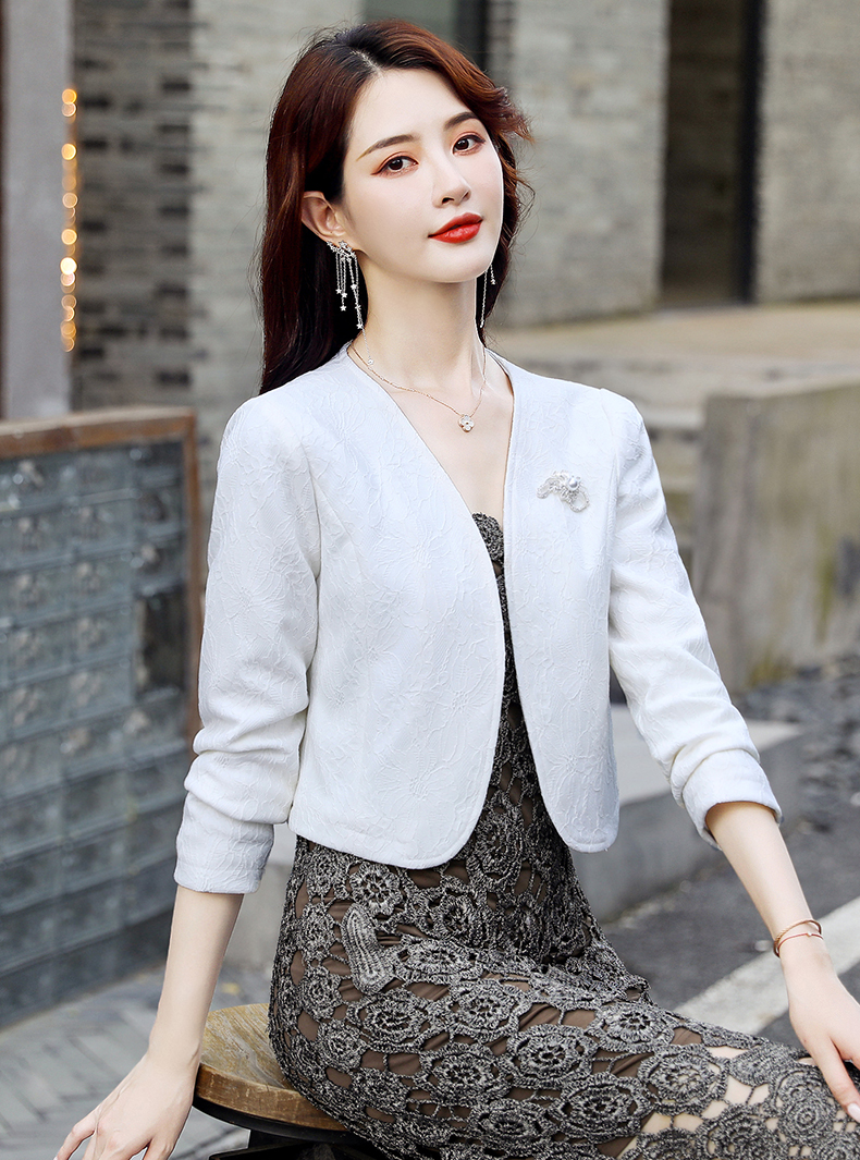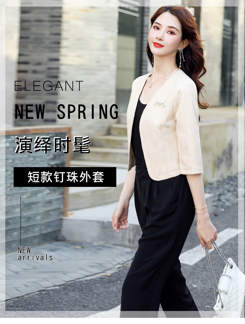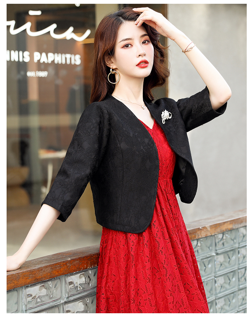 丁摩 蕾丝小披肩短外套女春秋装新款百搭西装坎肩配旗袍裙子外搭开衫5ZF-201
