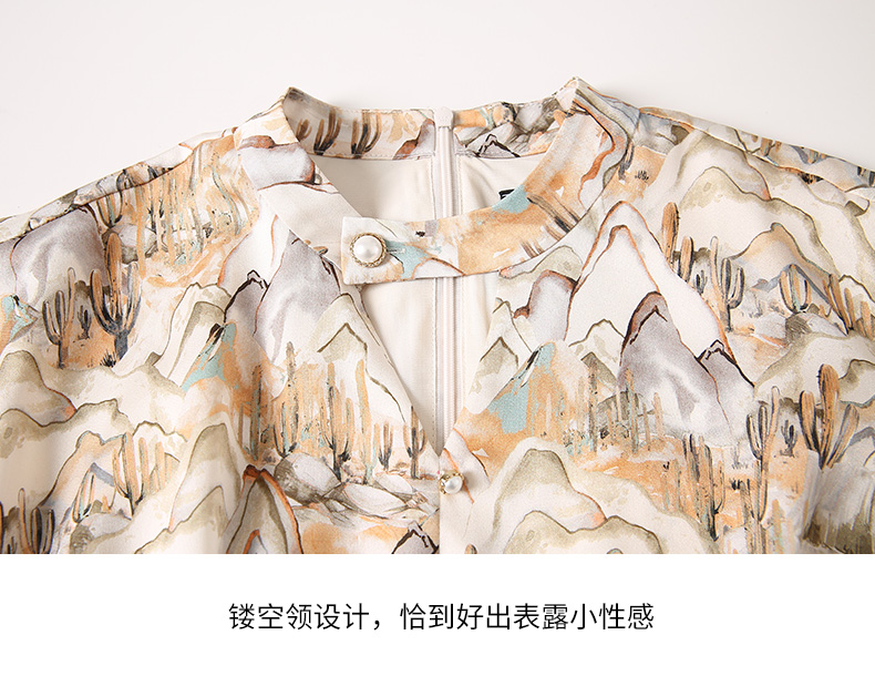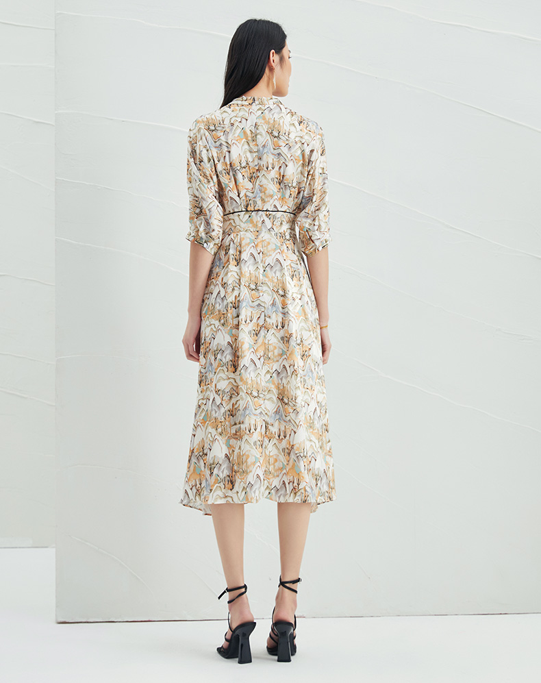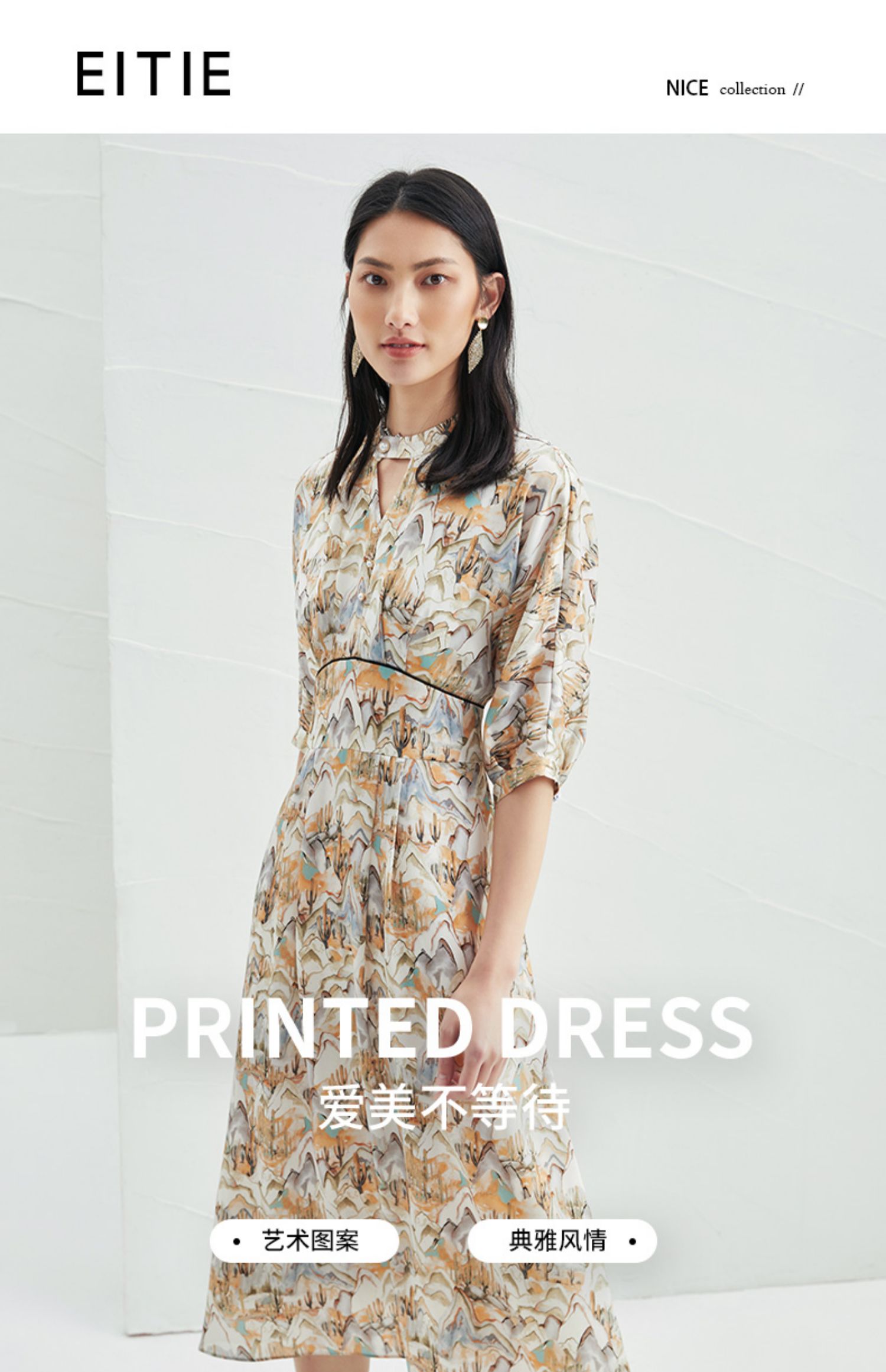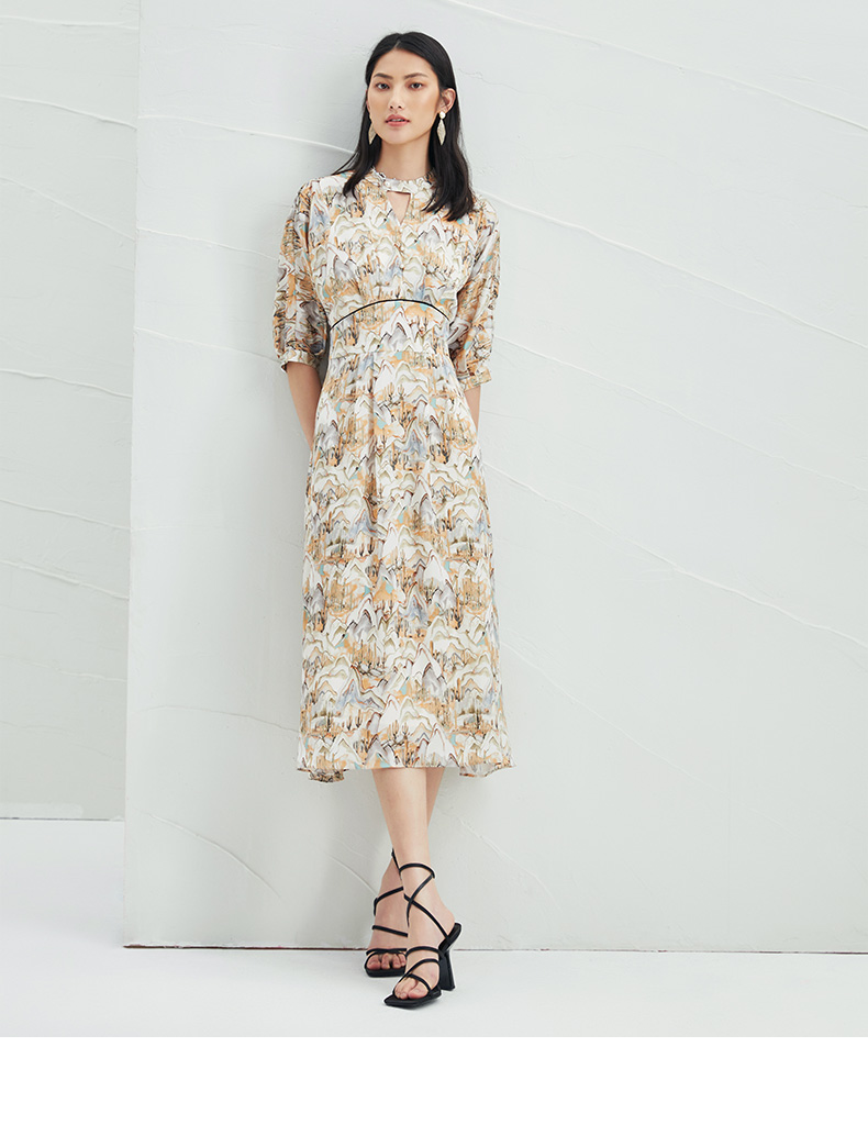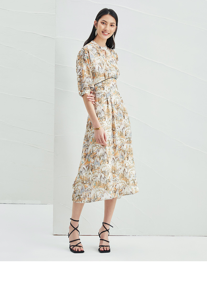 EITIE爱特爱夏新国风印花复古长裙款垂坠通勤显瘦气质连衣裙B2207910