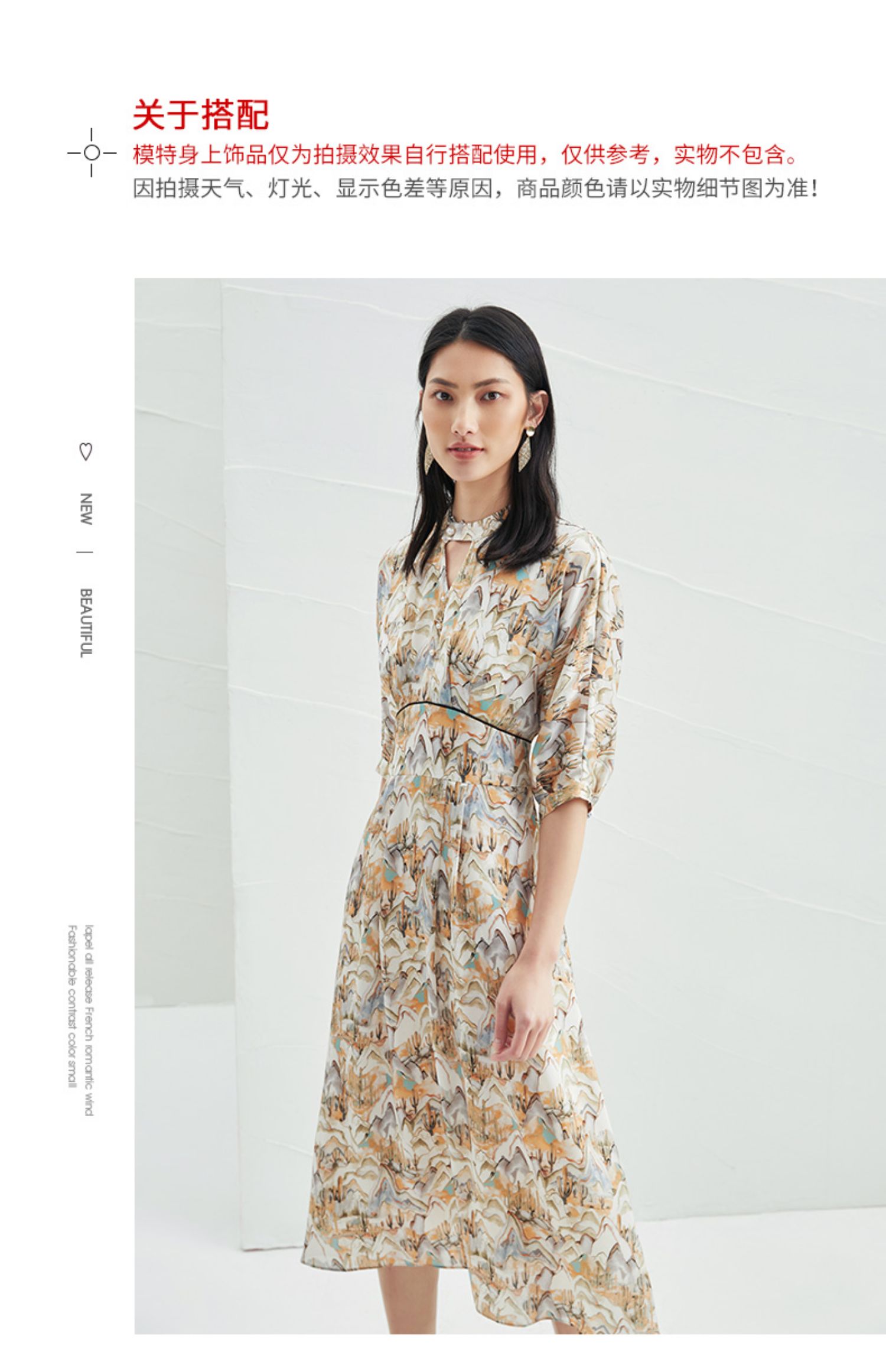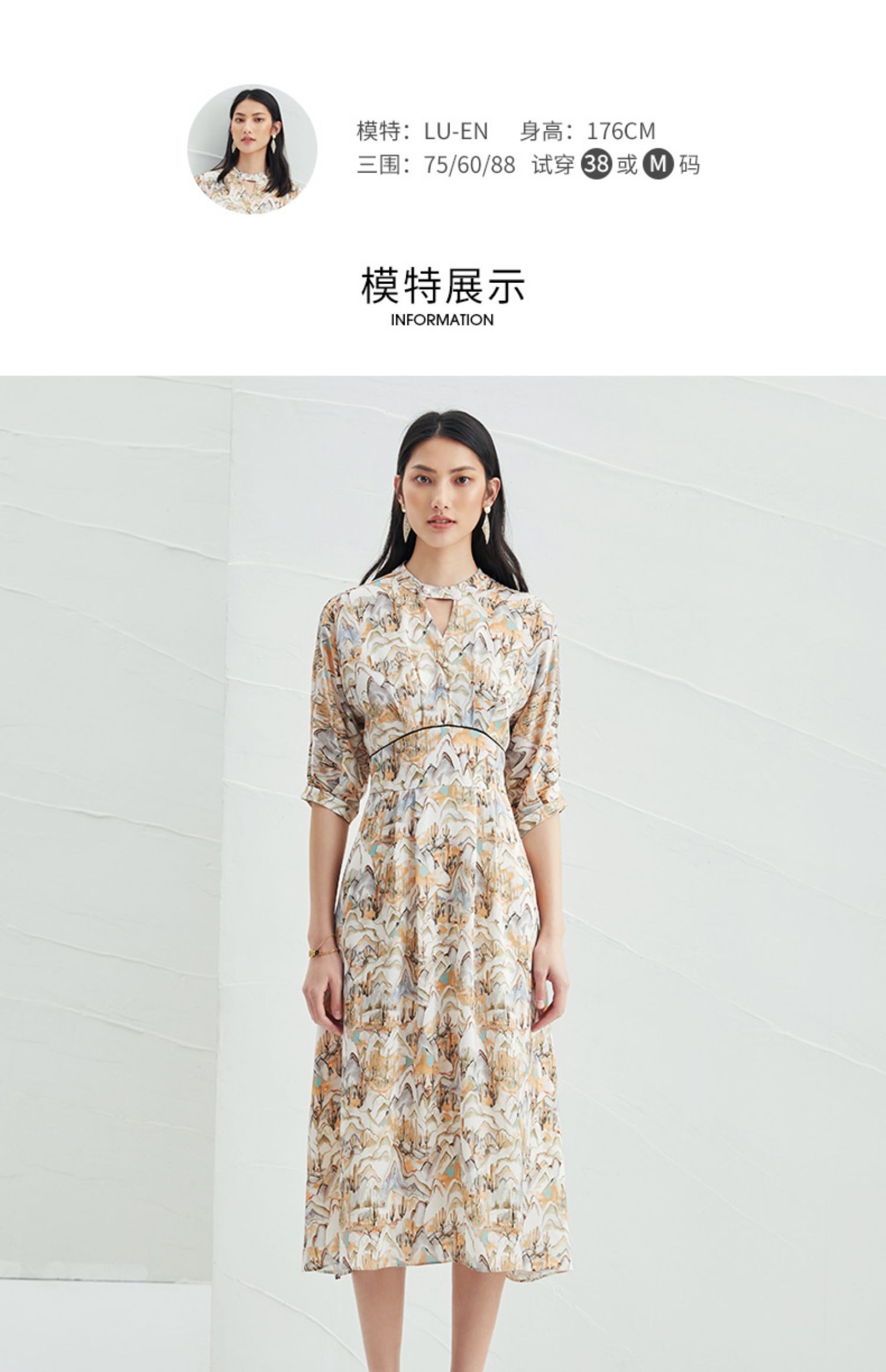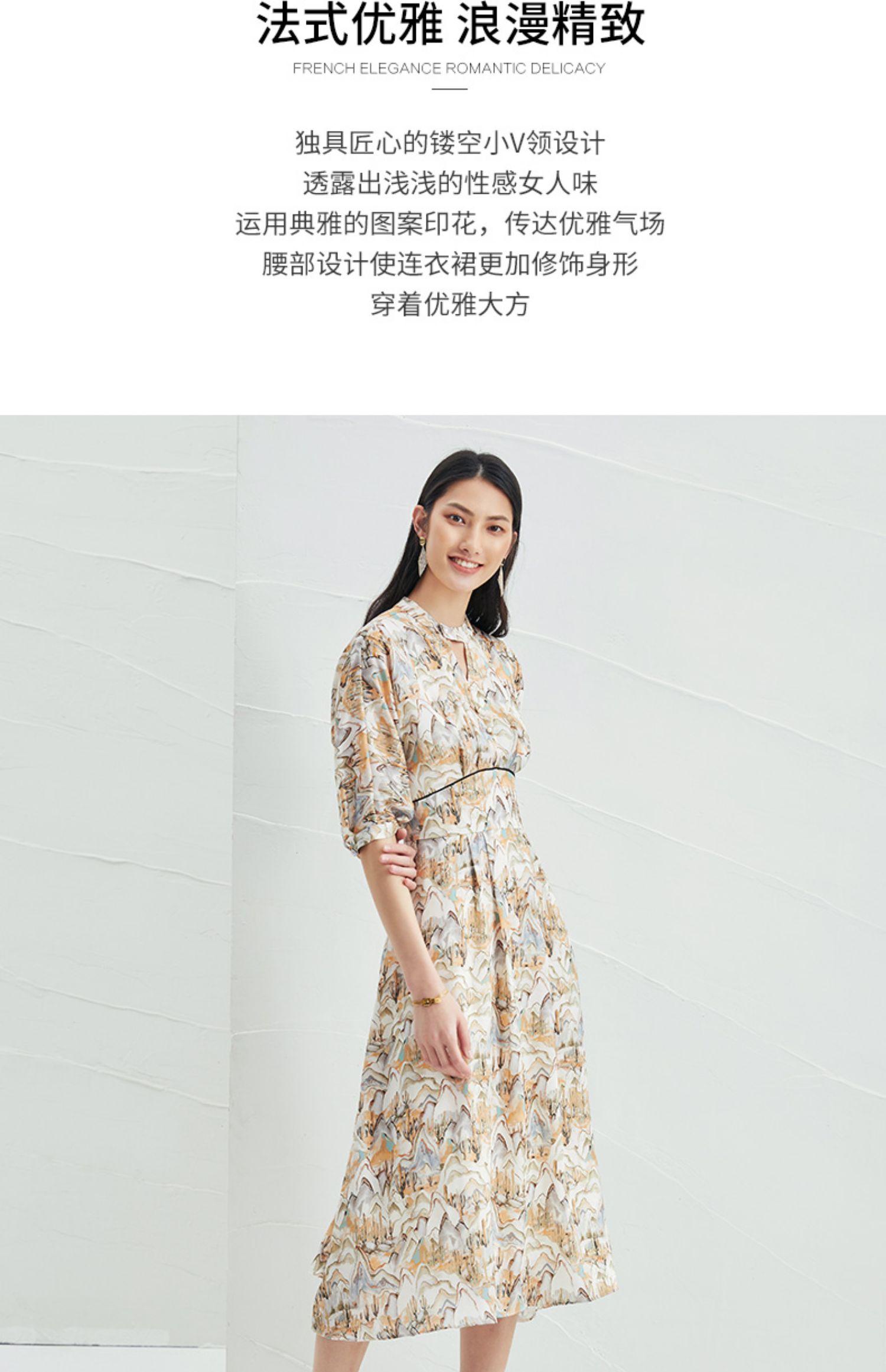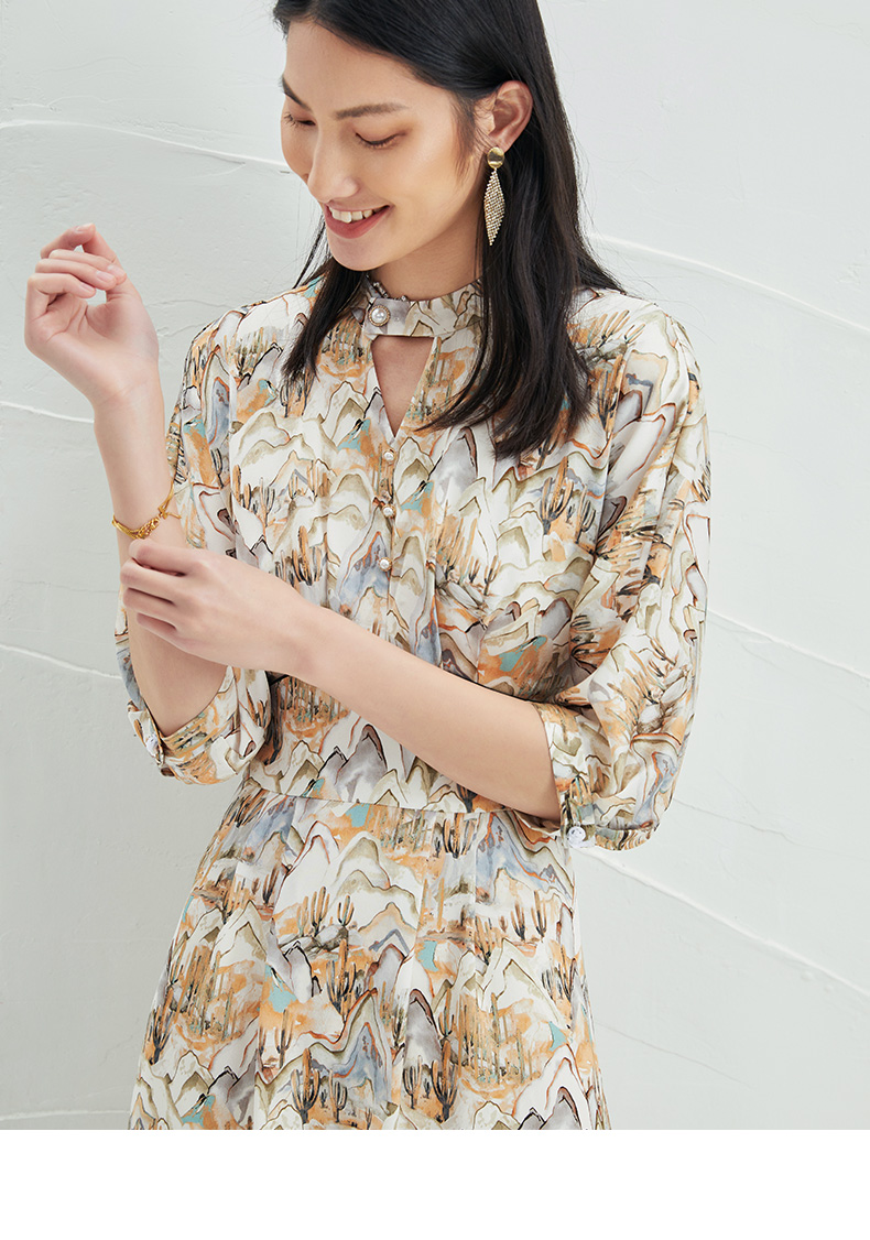 EITIE爱特爱夏新国风印花复古长裙款垂坠通勤显瘦气质连衣裙B2207910