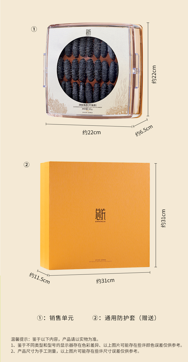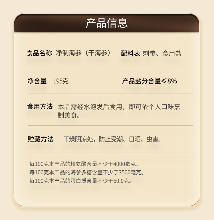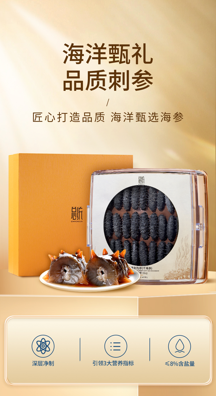 【正宗同仁堂品牌】北京同仁堂 总统牌 净制海参(干海参)195克(61-80头/500克)去砂嘴 去内脏 参体肥厚SY