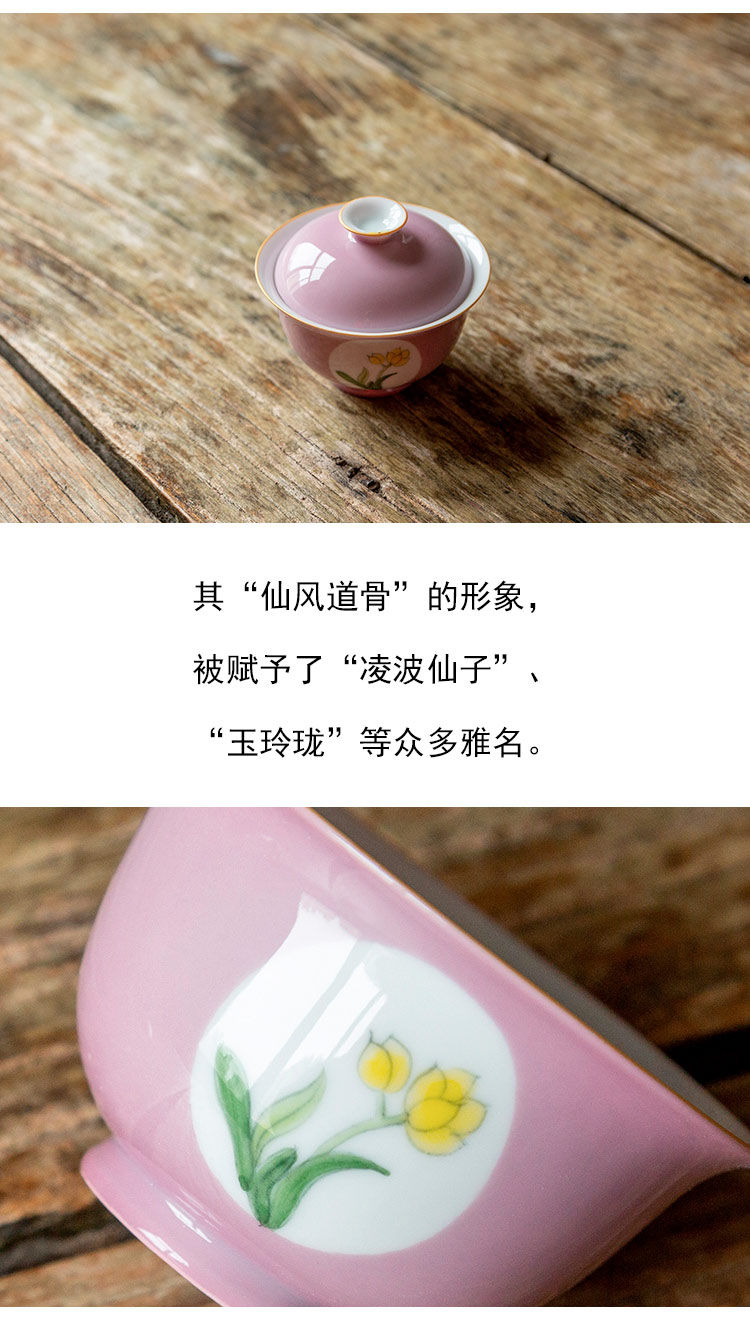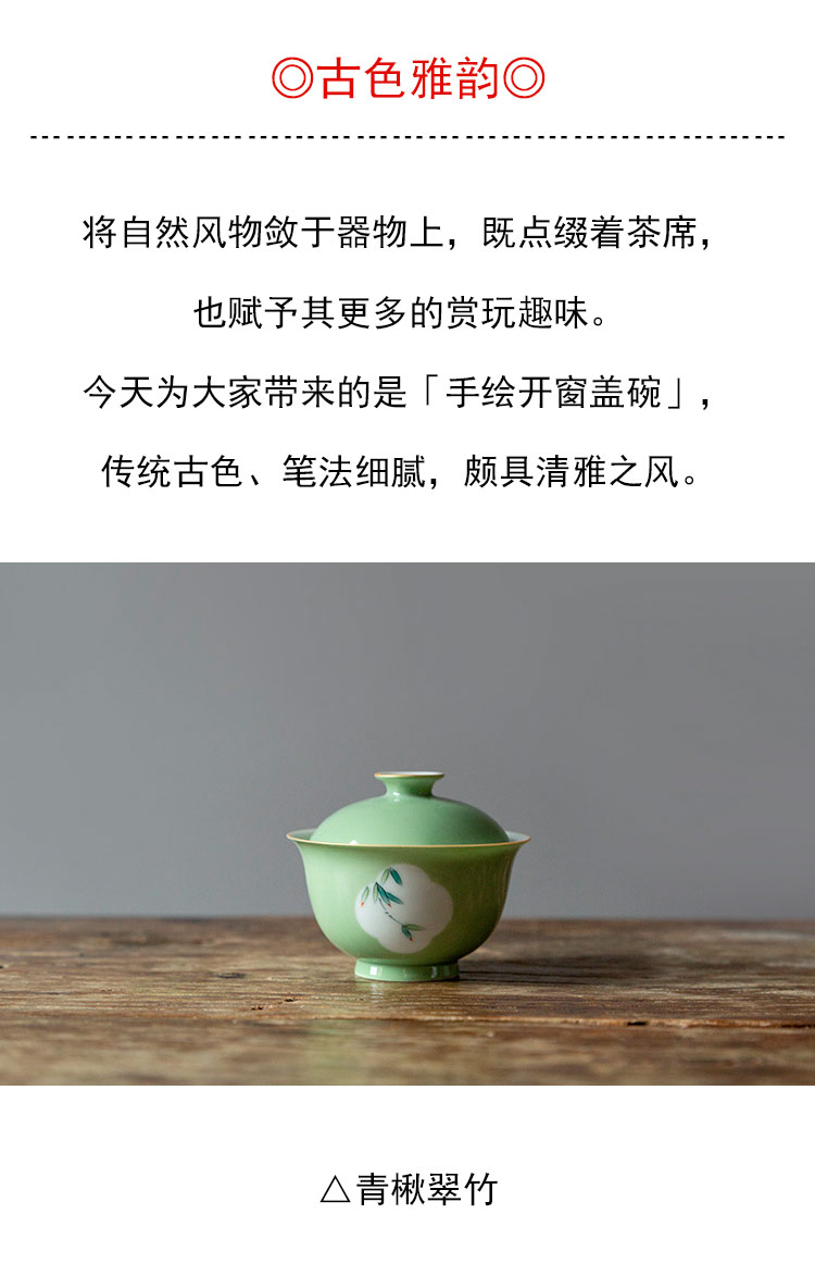 茶香记 手绘开窗盖碗 青楸翠竹 黛紫水仙 古色雅韵 小巧趁手