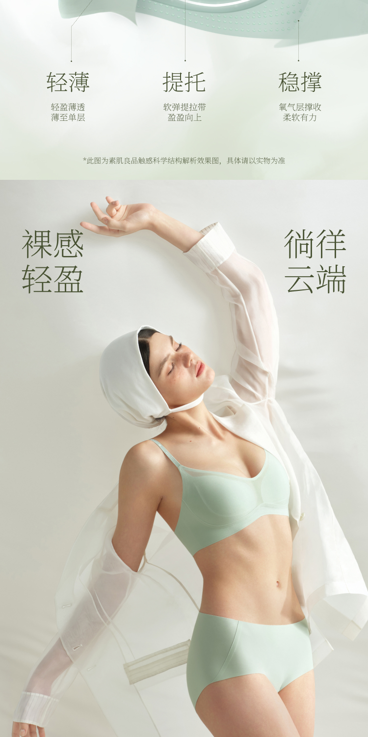 【E】素肌良品悬浮牛油果杯内衣女薄款小胸聚拢文胸收副乳防下垂无钢圈MX327 商品图3