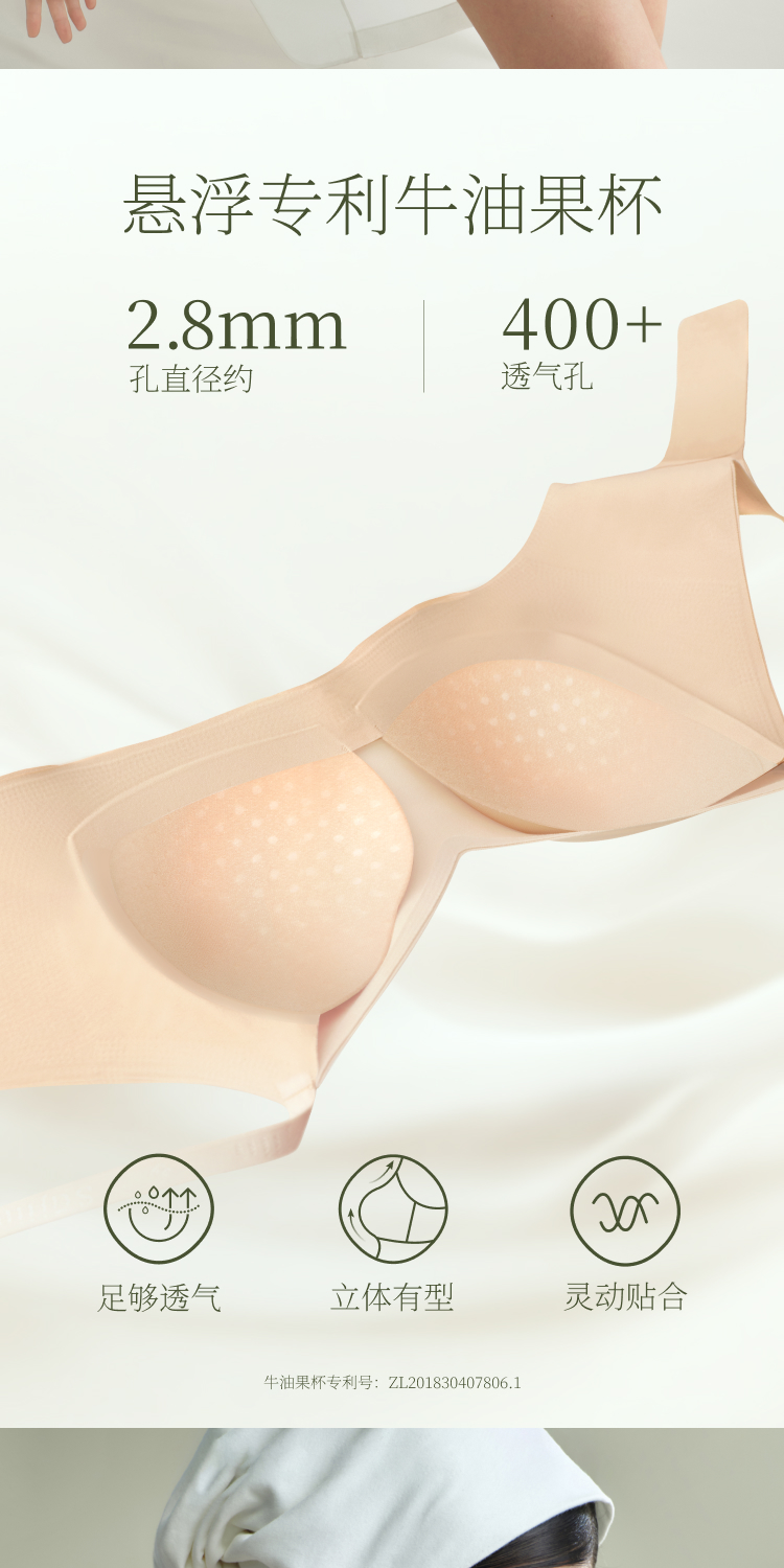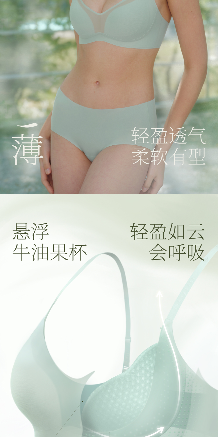 【E】素肌良品悬浮牛油果杯内衣女薄款小胸聚拢文胸收副乳防下垂无钢圈MX327 商品图2