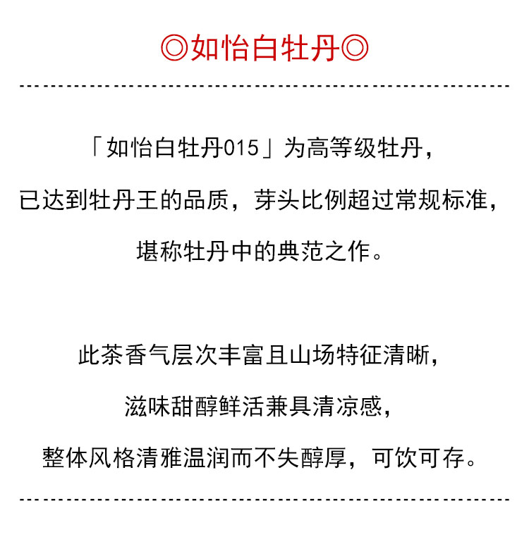 茶香记 如怡白牡丹015高等级福鼎老白茶特级牡丹王芽头饱满 毫香蜜韵
