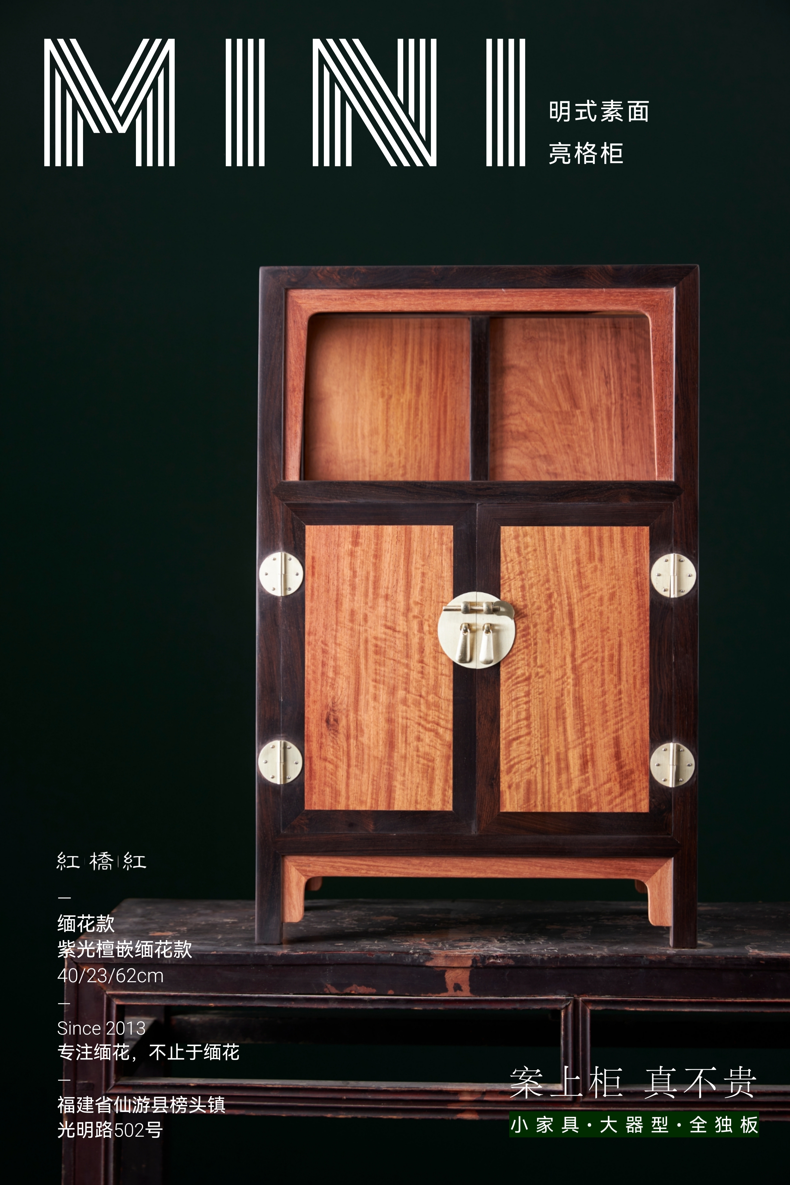 此柜原型收录于王世襄《明式家具研究》一书;是英国维多利亚及阿尔伯特博物馆藏款。经典复刻,按原版比例1:1缩小,古典雅致,可放置于案上,用来放置摆件,文玩等。