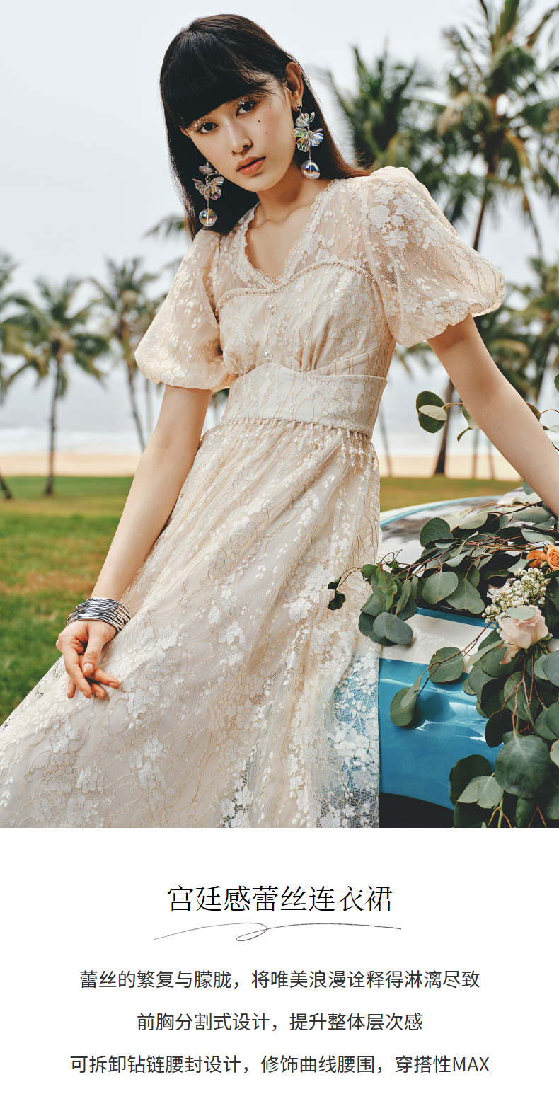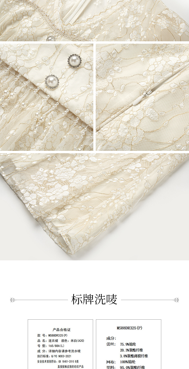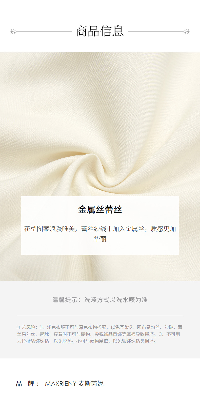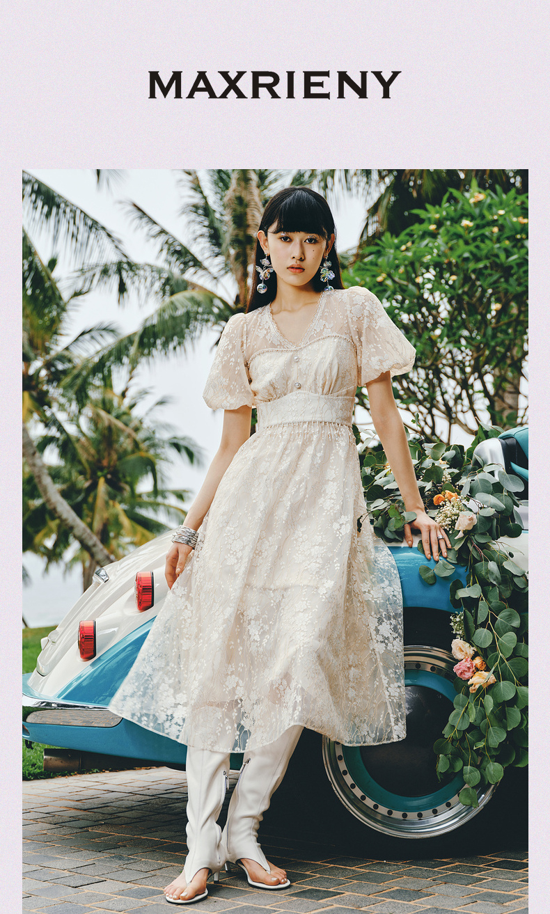 MAXRIENY复古宫廷感浮雕连衣裙蕾丝网纱小白裙(货号:MS88DR325)
