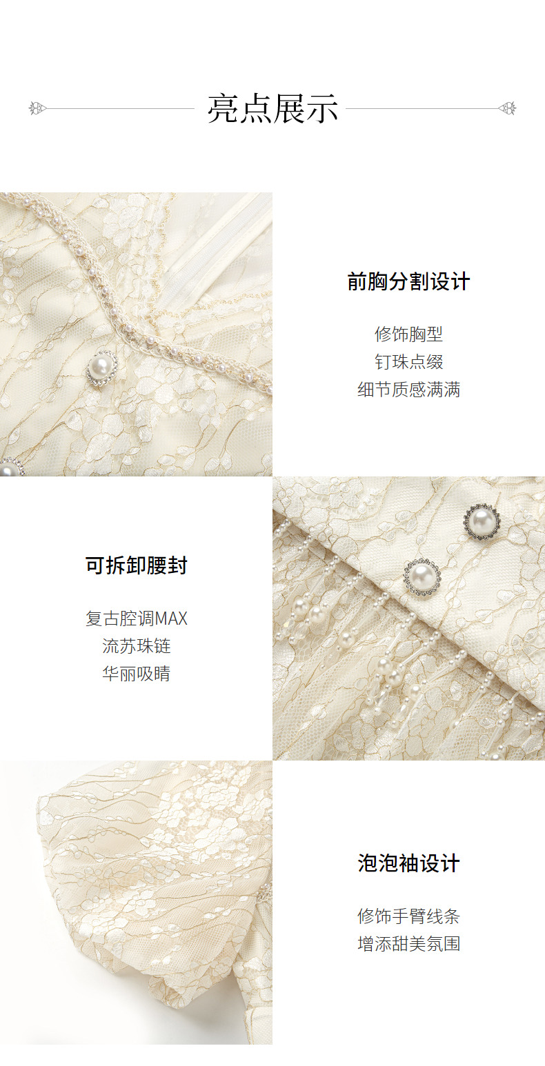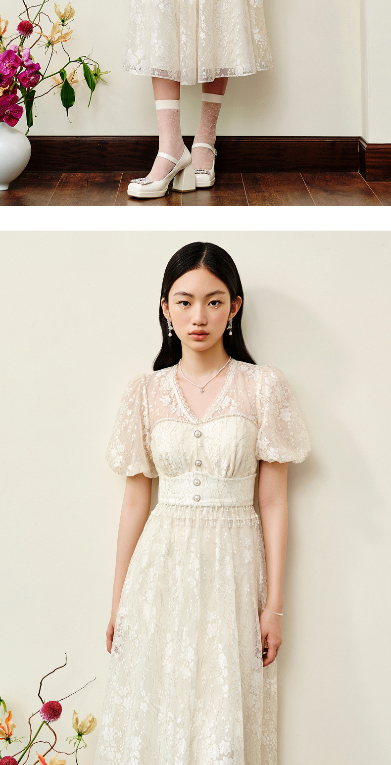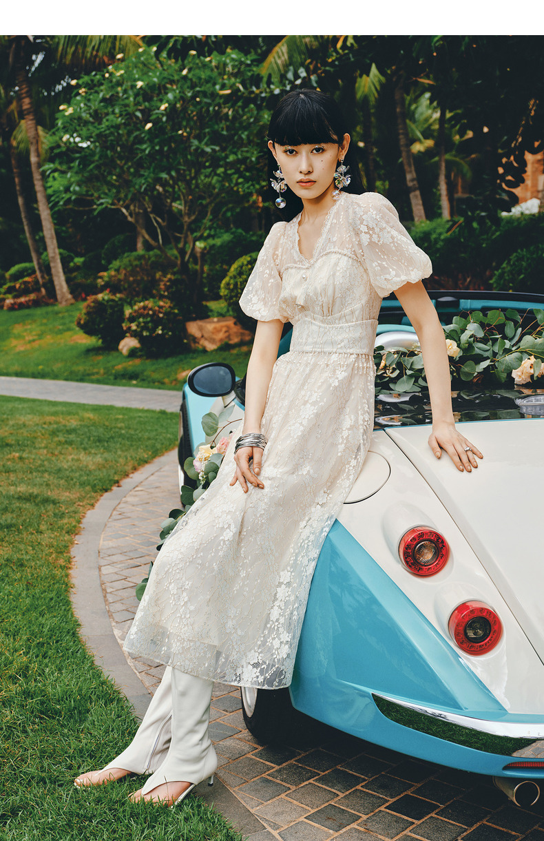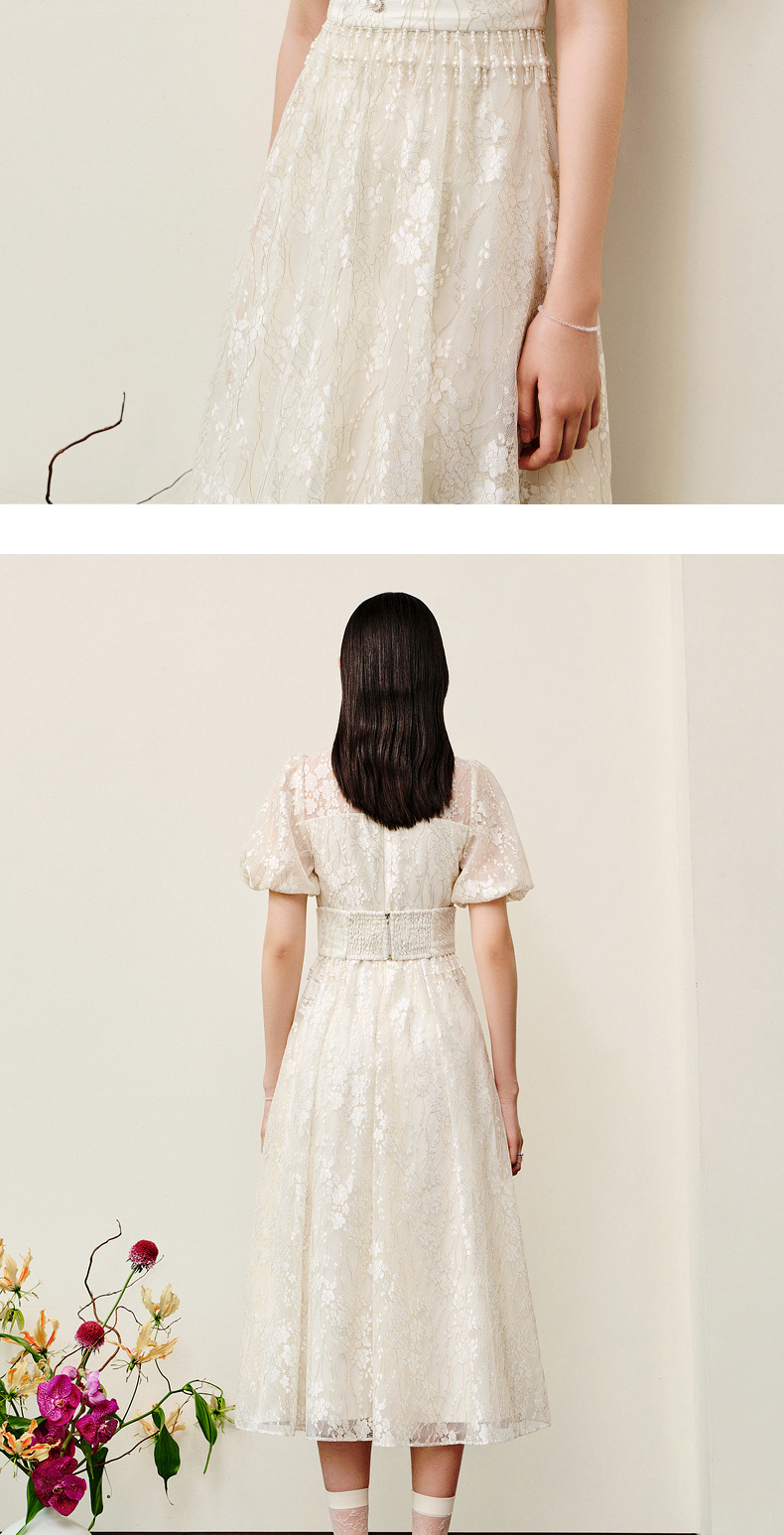 MAXRIENY复古宫廷感浮雕连衣裙蕾丝网纱小白裙(货号:MS88DR325)