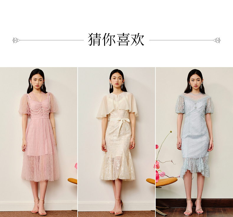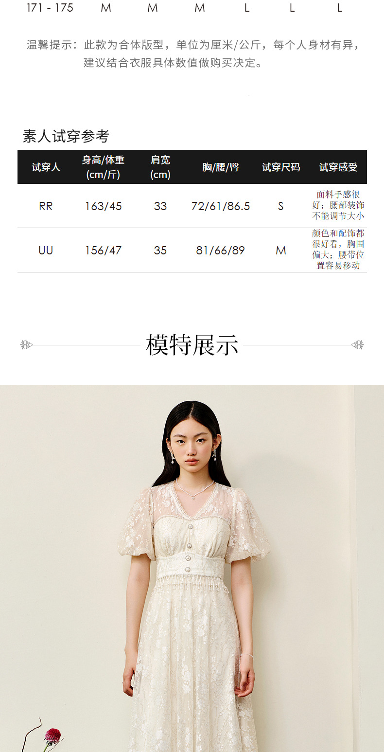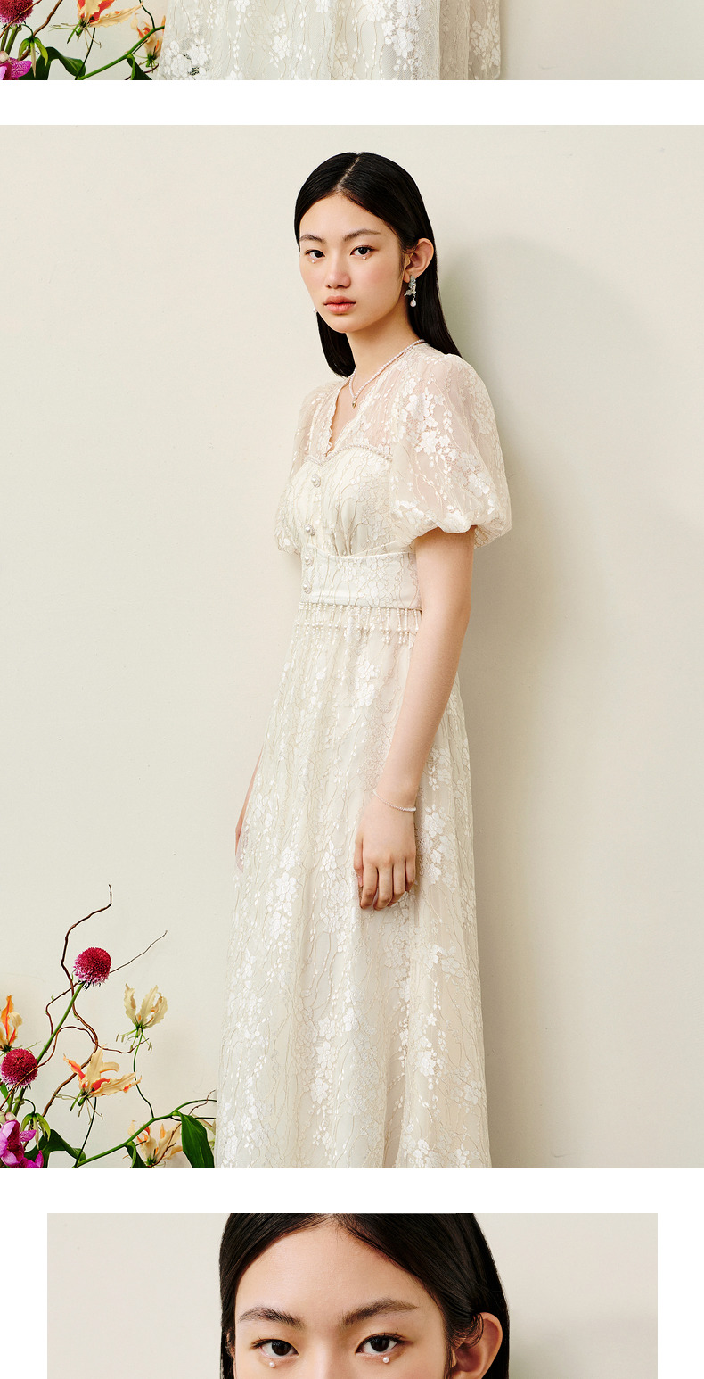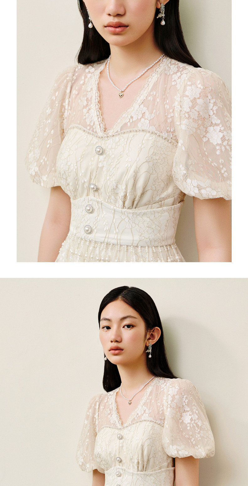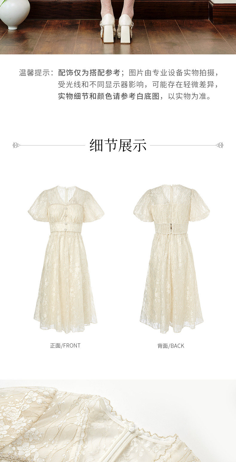 MAXRIENY复古宫廷感浮雕连衣裙蕾丝网纱小白裙(货号:MS88DR325)