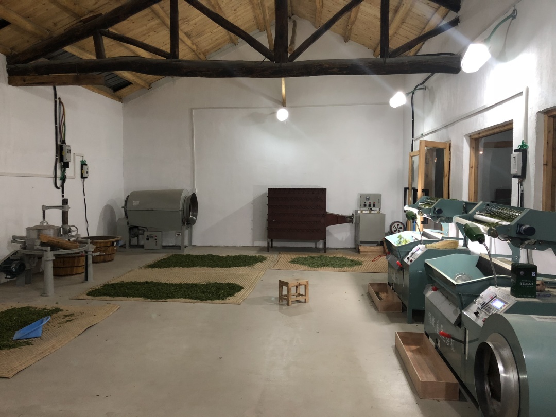 茶场有自己的加工车间,加工过程采用数字化电热炒茶机,炒茶过程保证茶叶不落地,干净卫生。经过摊青、杀青、回潮、辉锅、精制、归堆等工艺,新鲜绿茶去除了青草气,成为了一把适口的龙井,香气能够充分散发出来。