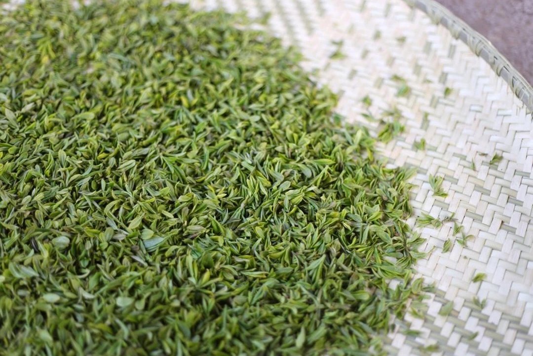 干茶成型后还需经过风选,去除干茶中的茶末、黄片,然后人工进一步挑选,在竹席上均堆,使得茶叶质量保持一致,至此,一份龙井制作完成。