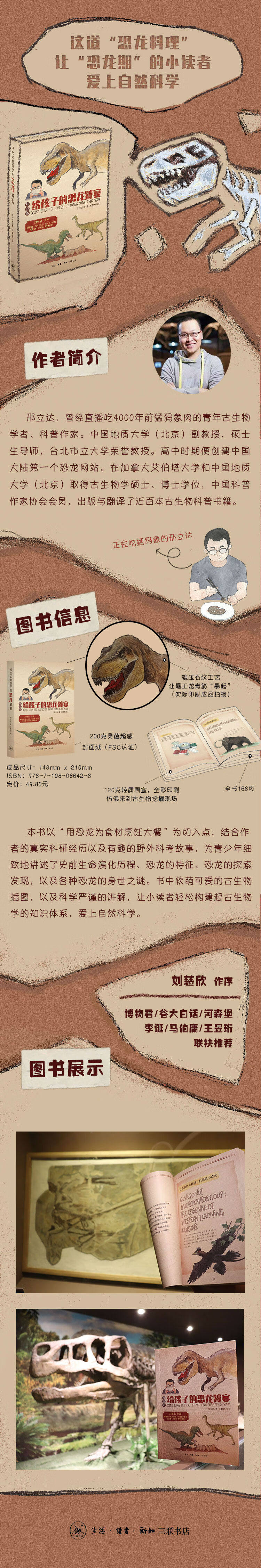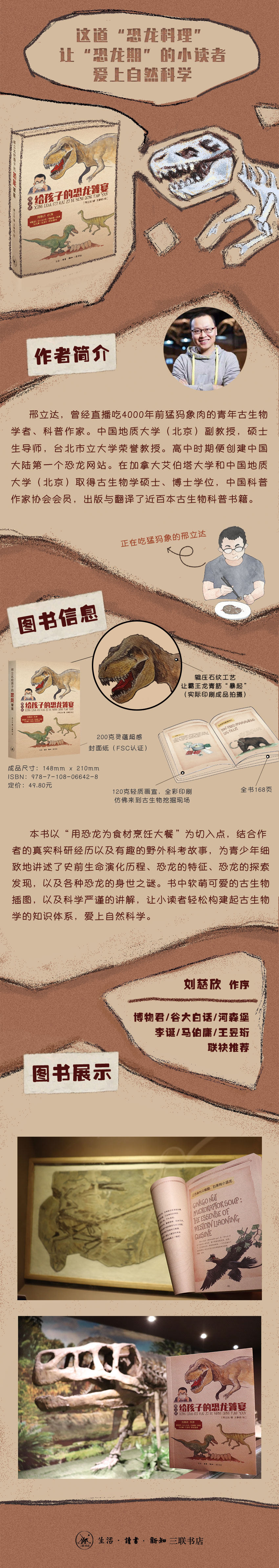 | 书 名:邢立达给孩子的恐龙饕宴 书 号:ISBN 9787108066428 作 者:邢立达 出 版:生活·读书·新知 三联书店 版 次:年月第版 规 格:开 页 码:约 定 价:49.8元 |