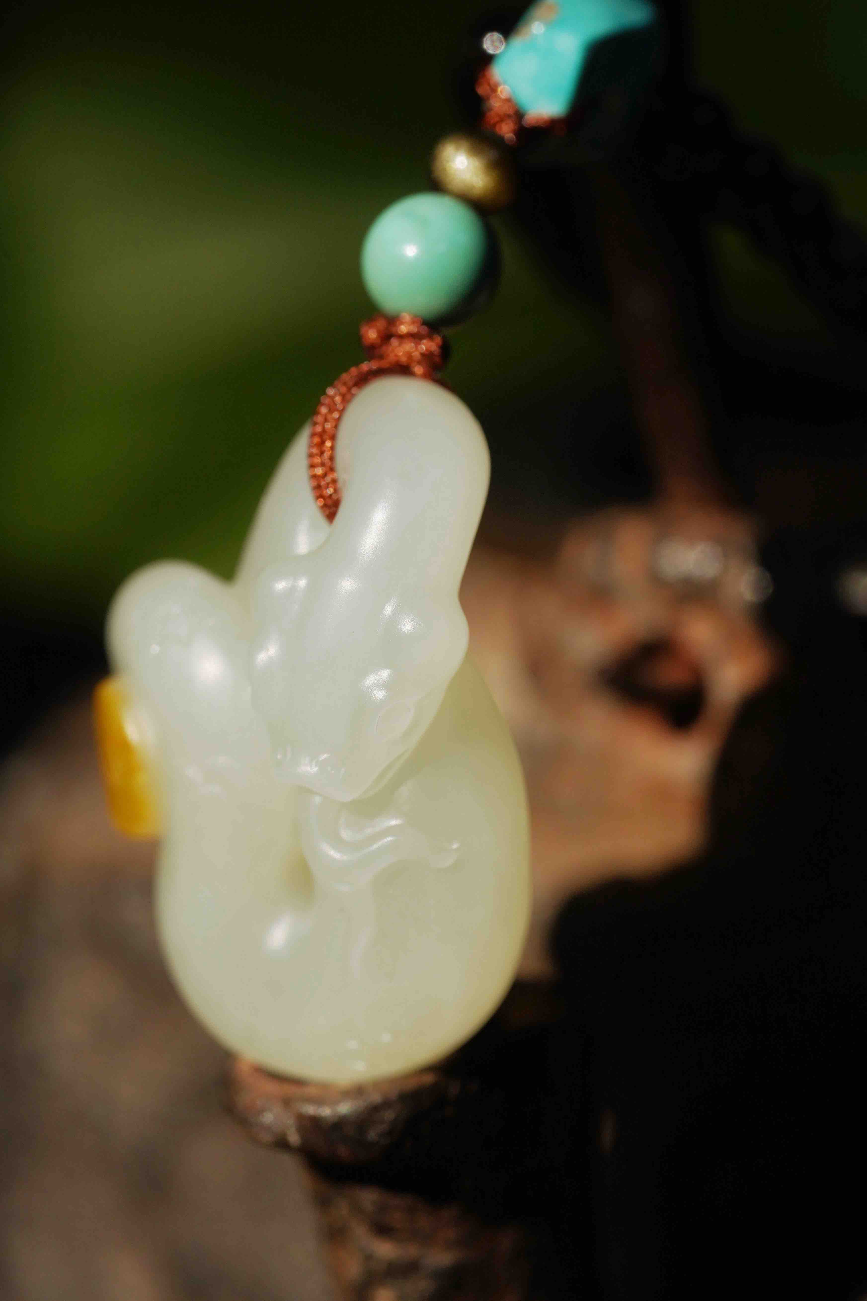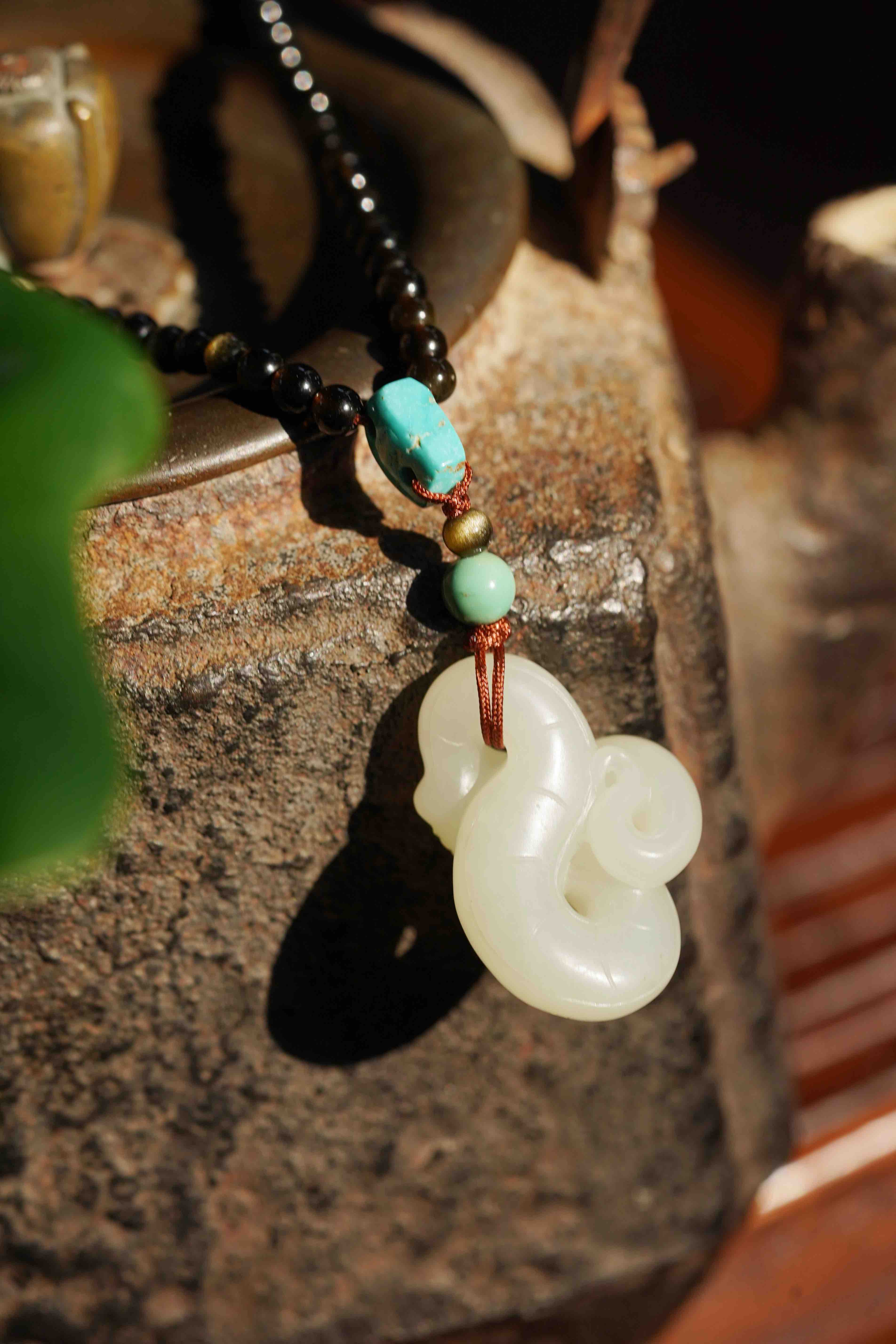 和田玉灵蛇吊坠