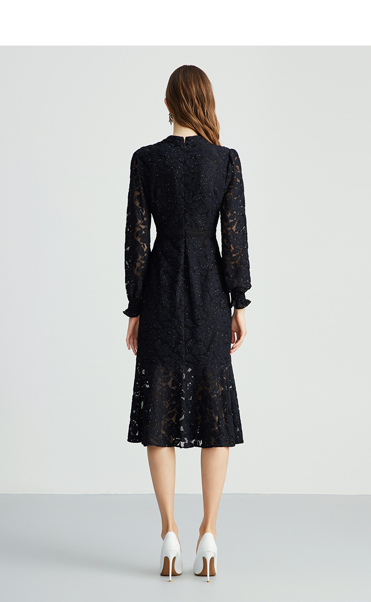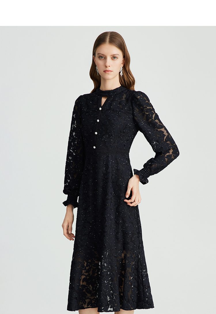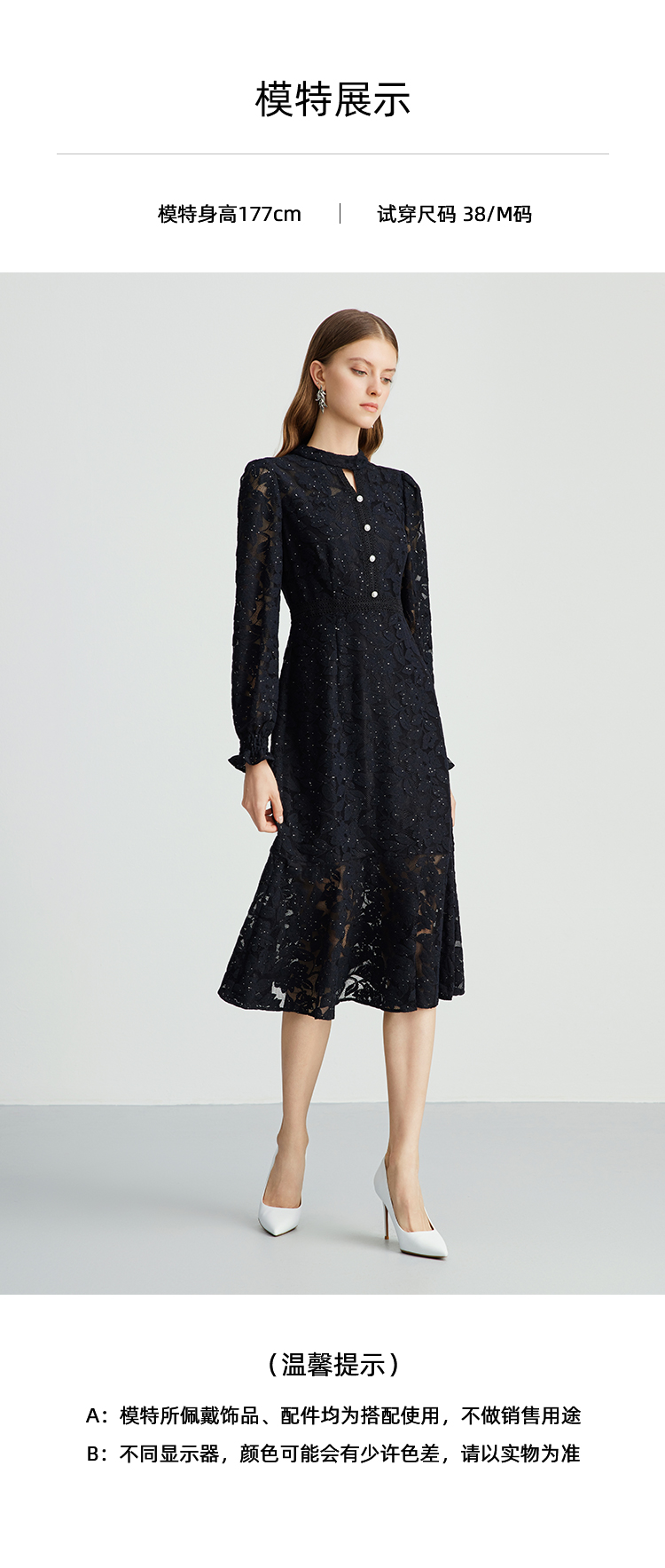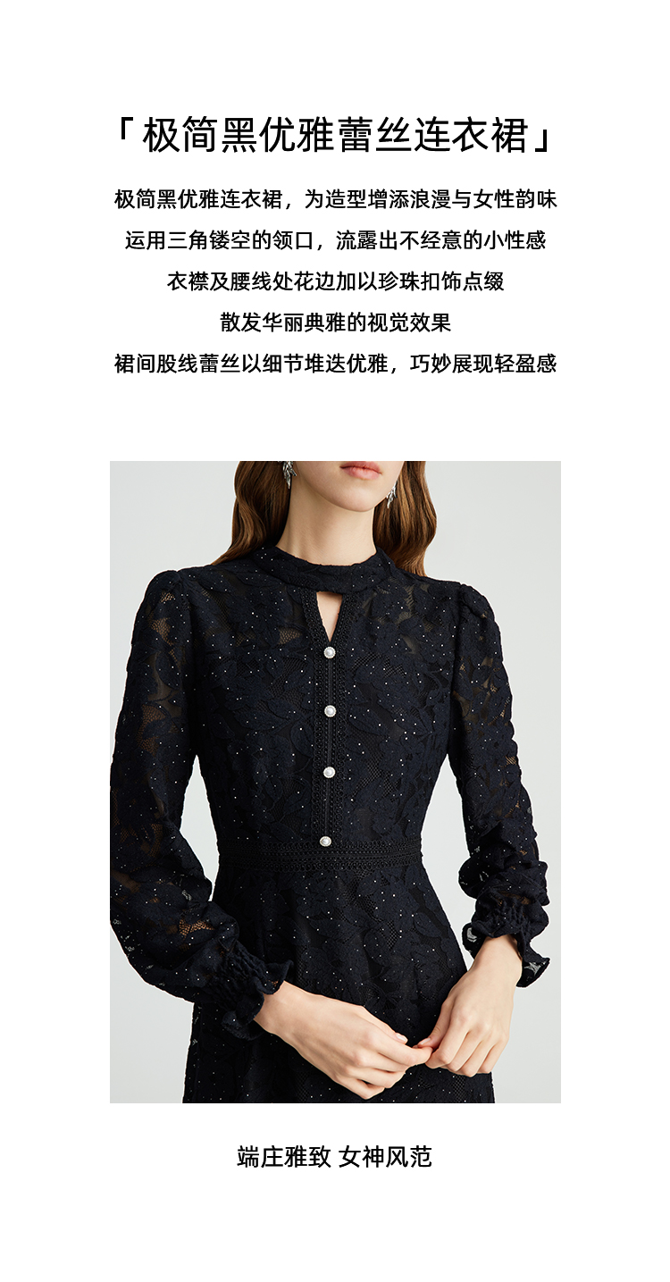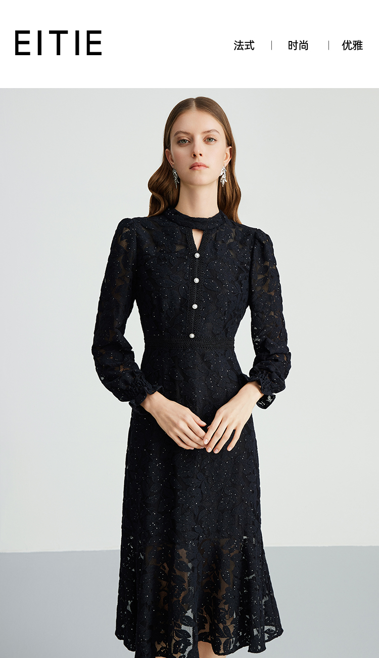 EITIE爱特爱气质修身显瘦钩花蕾丝连衣裙秋季新款C2407424