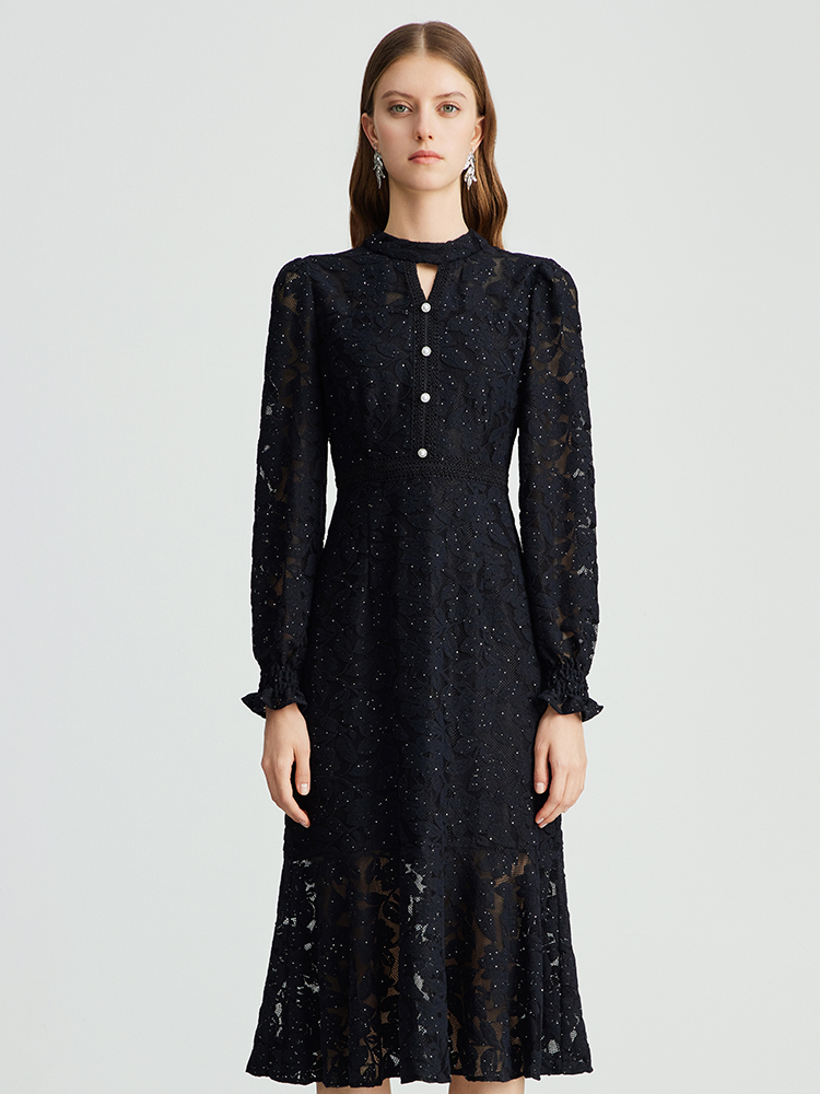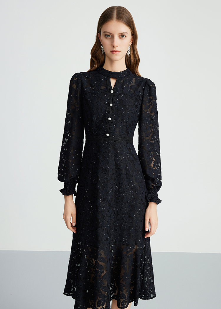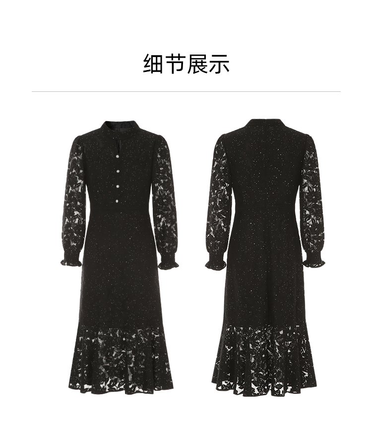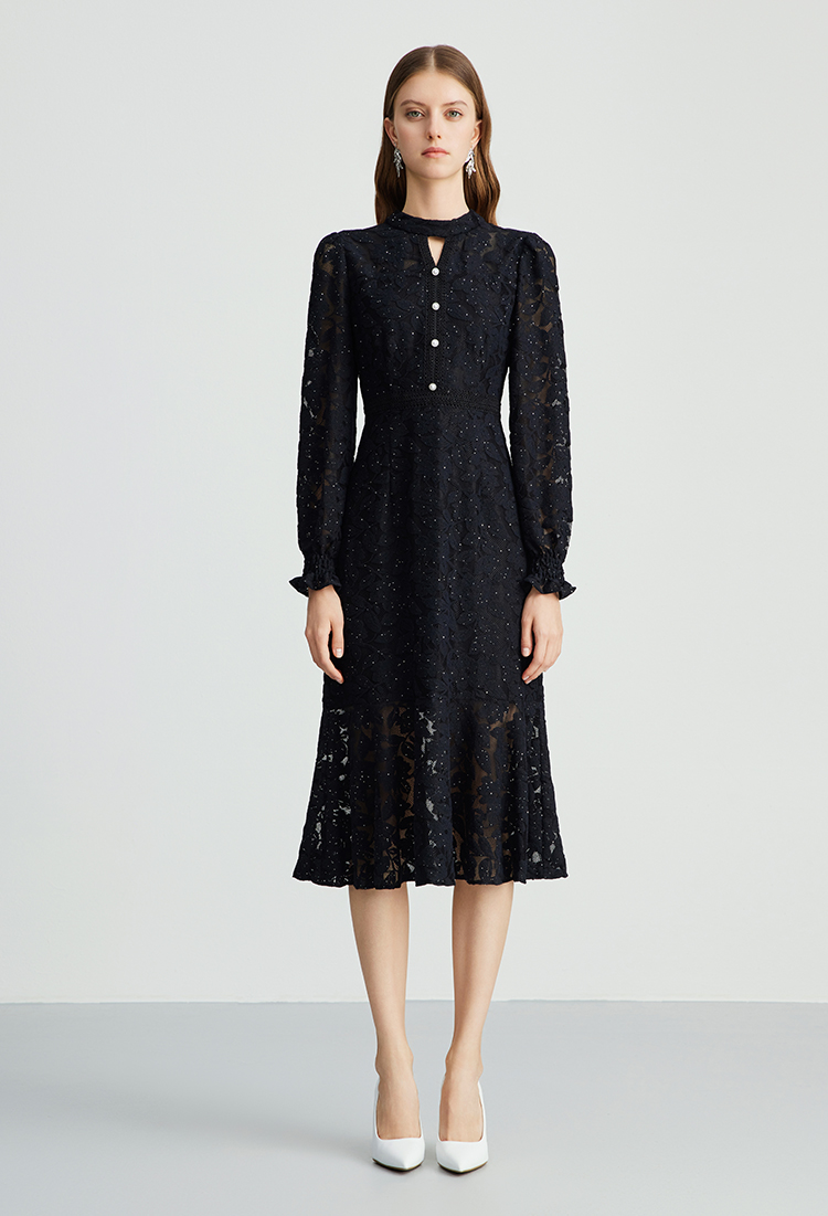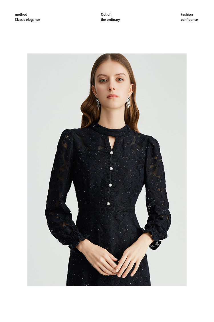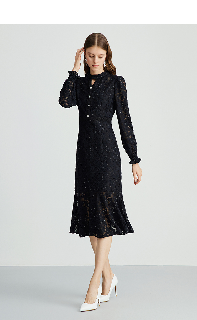 EITIE爱特爱气质修身显瘦钩花蕾丝连衣裙秋季新款C2407424