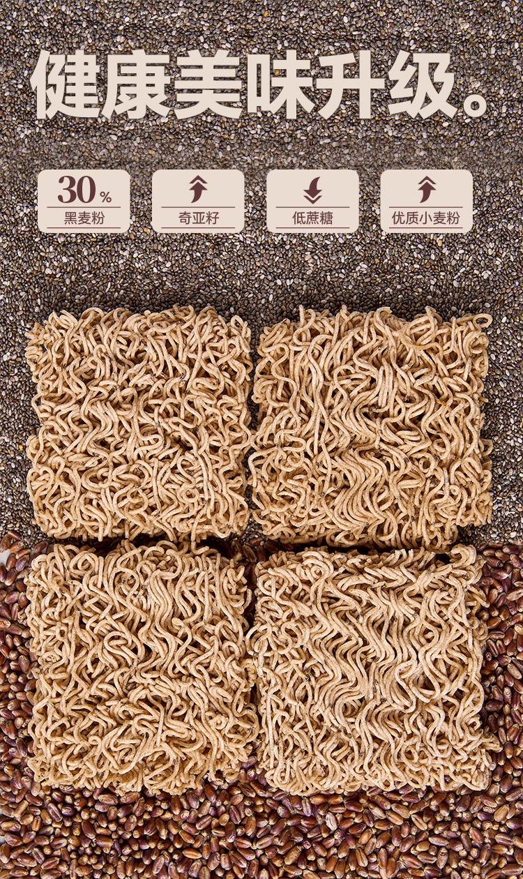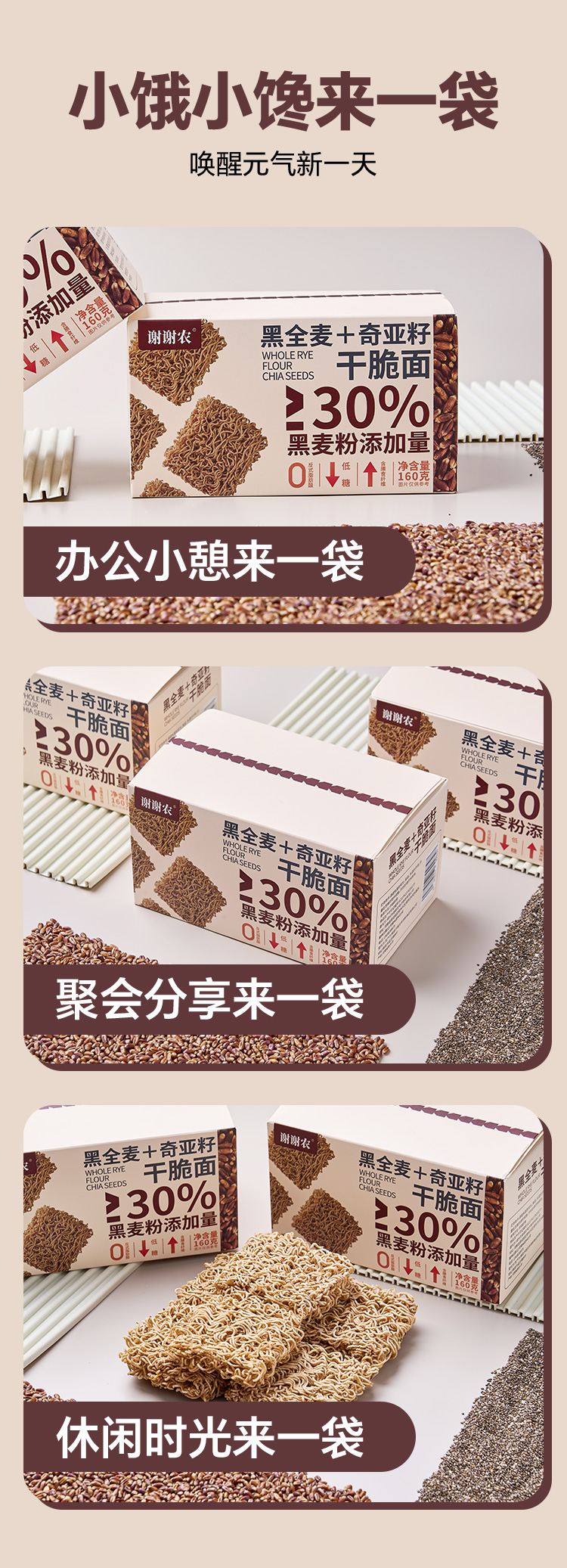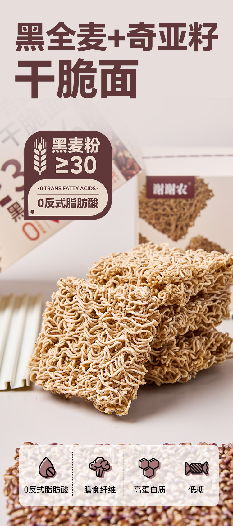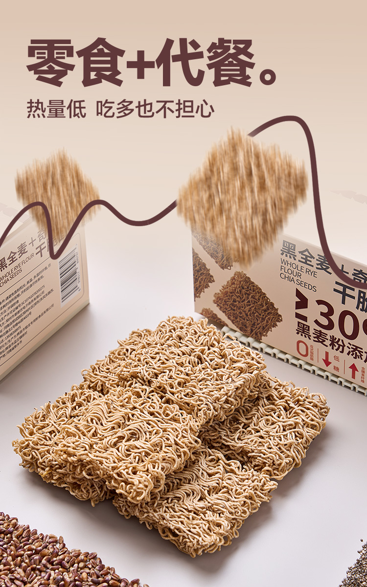 黑全麦奇亚籽干脆面 满满膳食纤维 低热量饱腹代餐 0反式脂肪酸