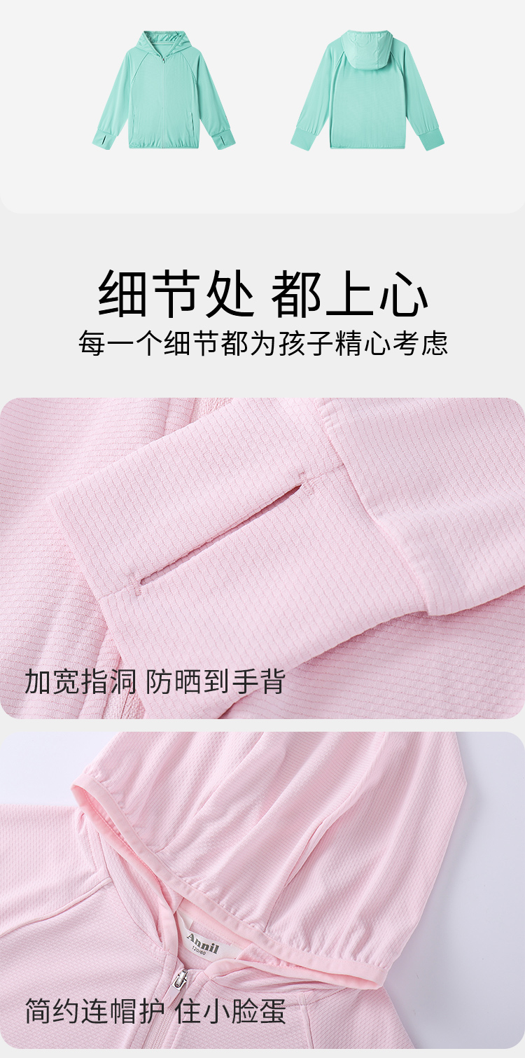【防晒指数50+】男童女童针织外套防晒衣服安奈儿童装EM325083