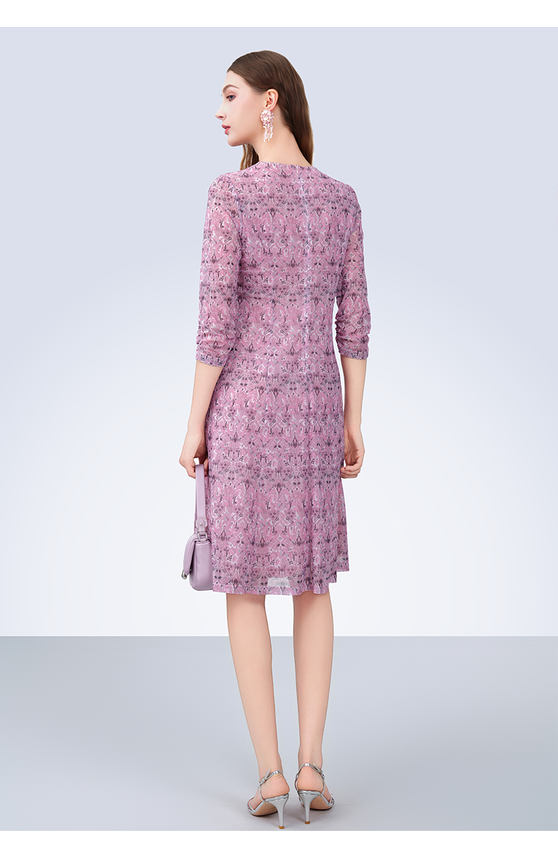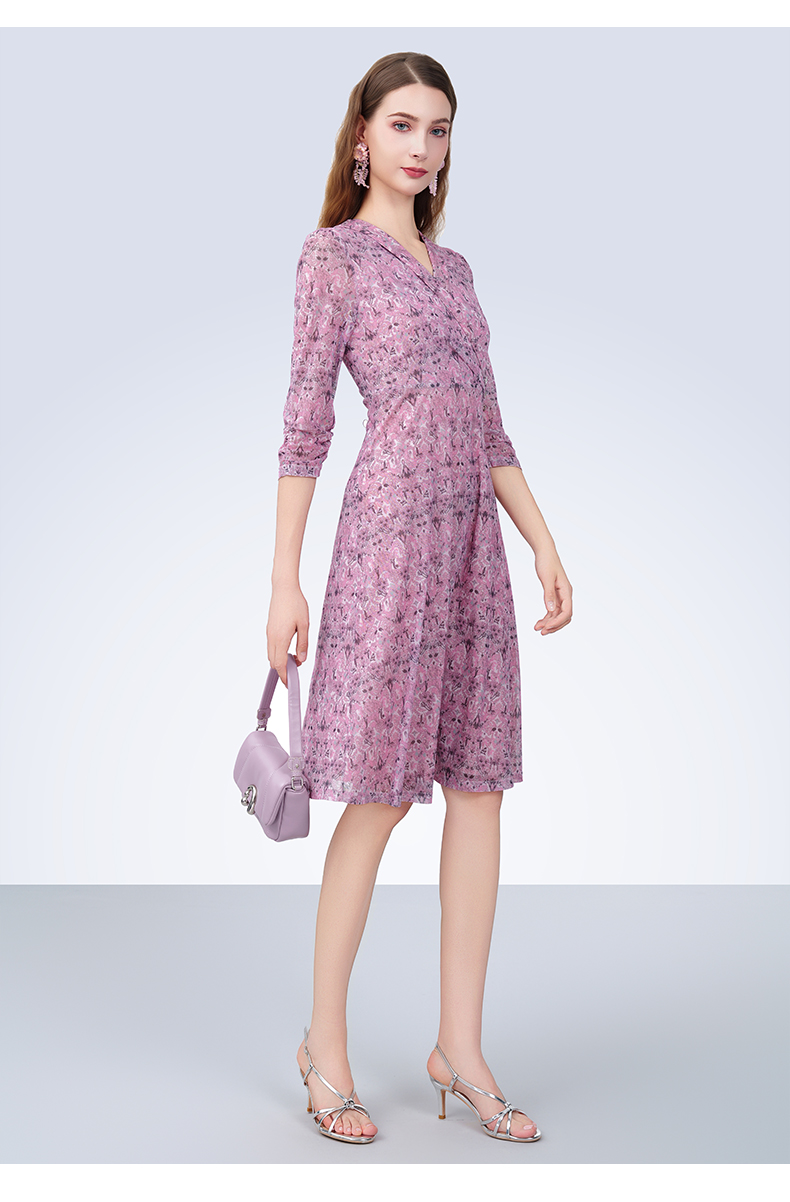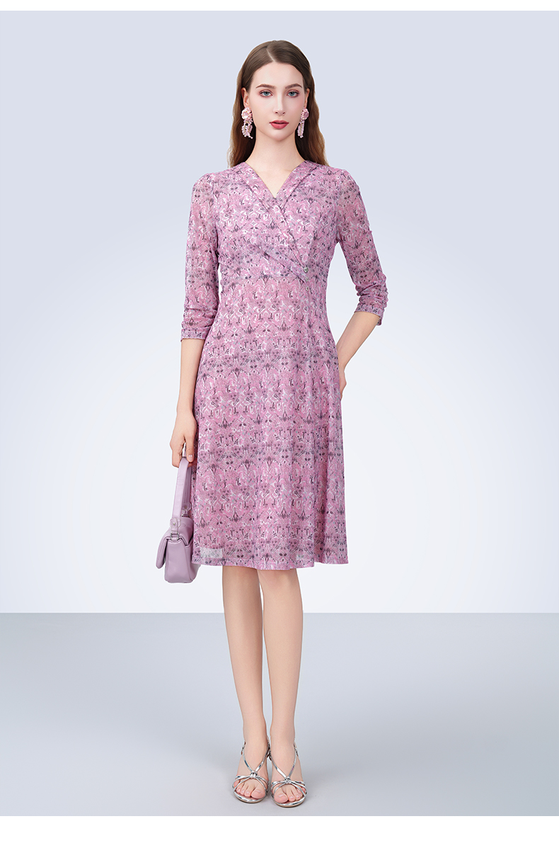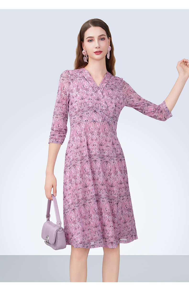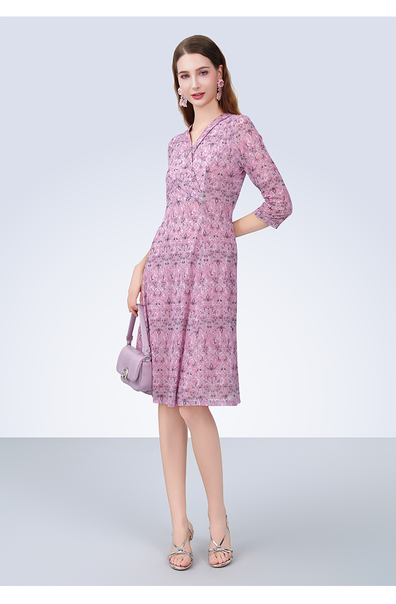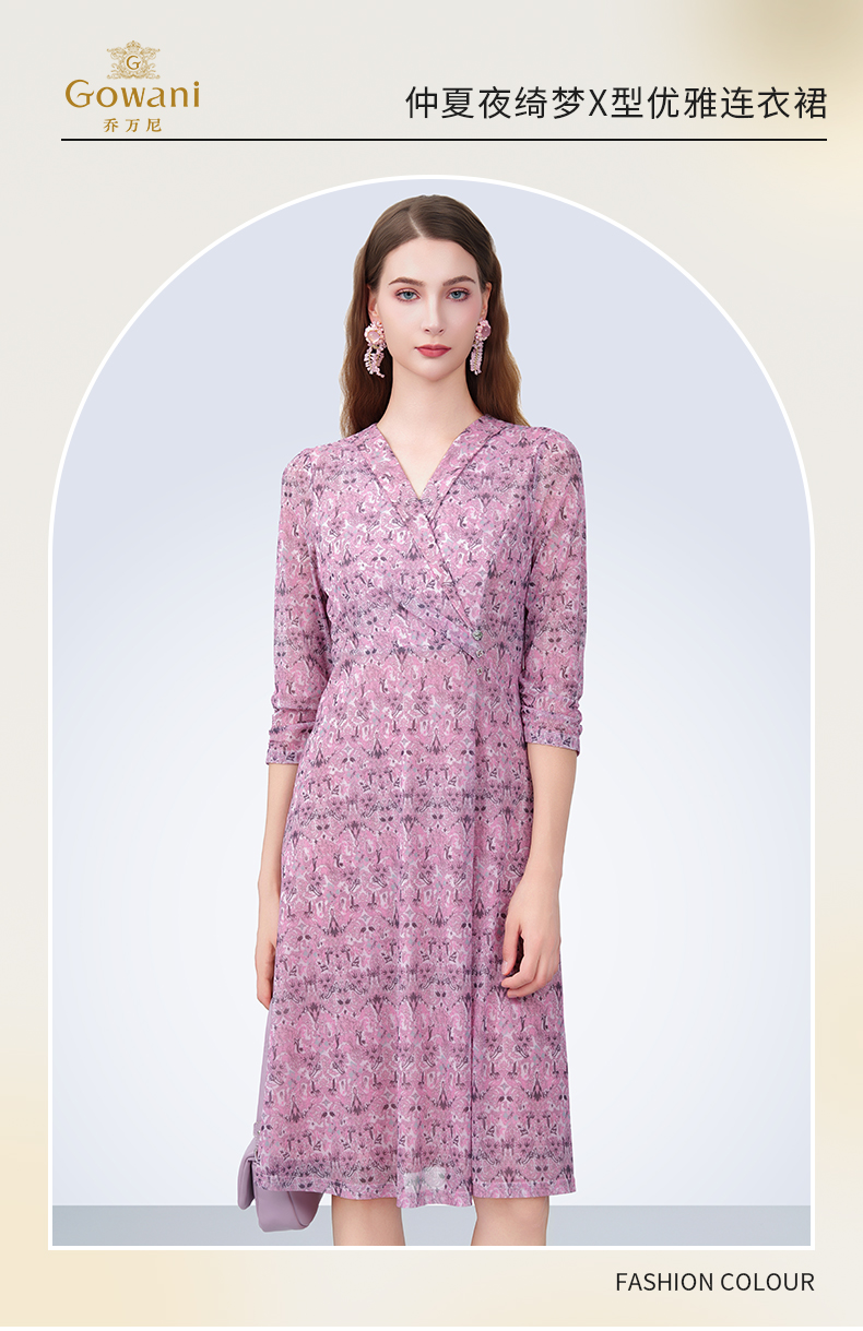 乔万尼2025夏季新品V领艺术印花轻盈收腰连衣裙ED2E409