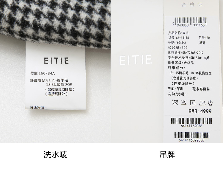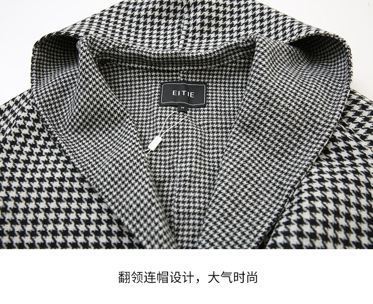EITIE爱特爱网纱拼接半高领气质黑色针织衫灯笼袖修身秋新款C2201022