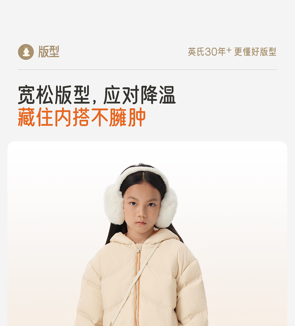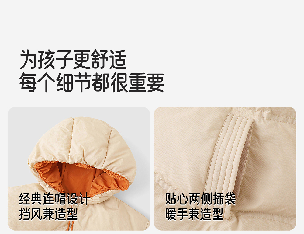 【商场同款】英氏女童羽绒服撞色秋冬温暖防风御寒连帽儿童新款