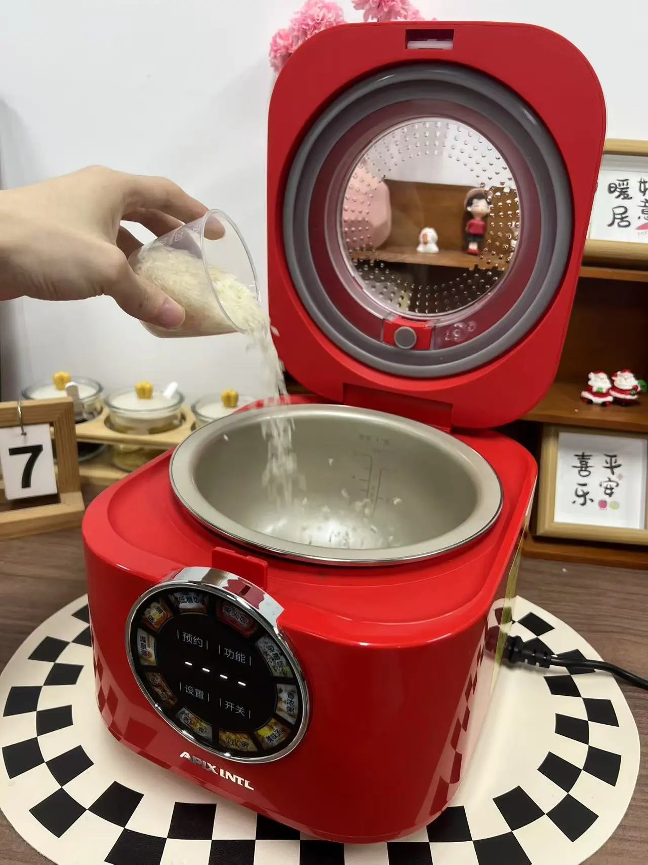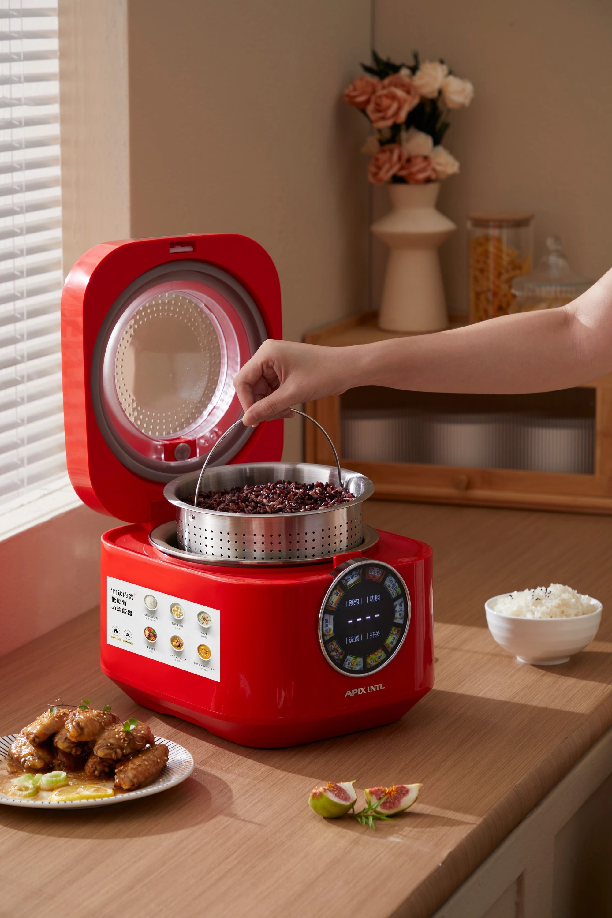 299到手APIXINTL安本素珐琅钛低糖电饭煲加厚0氟珐琅钛不沾内胆炫彩触控屏操作可视化天窗3L大容量10大功能24小时智能预约基地直邮