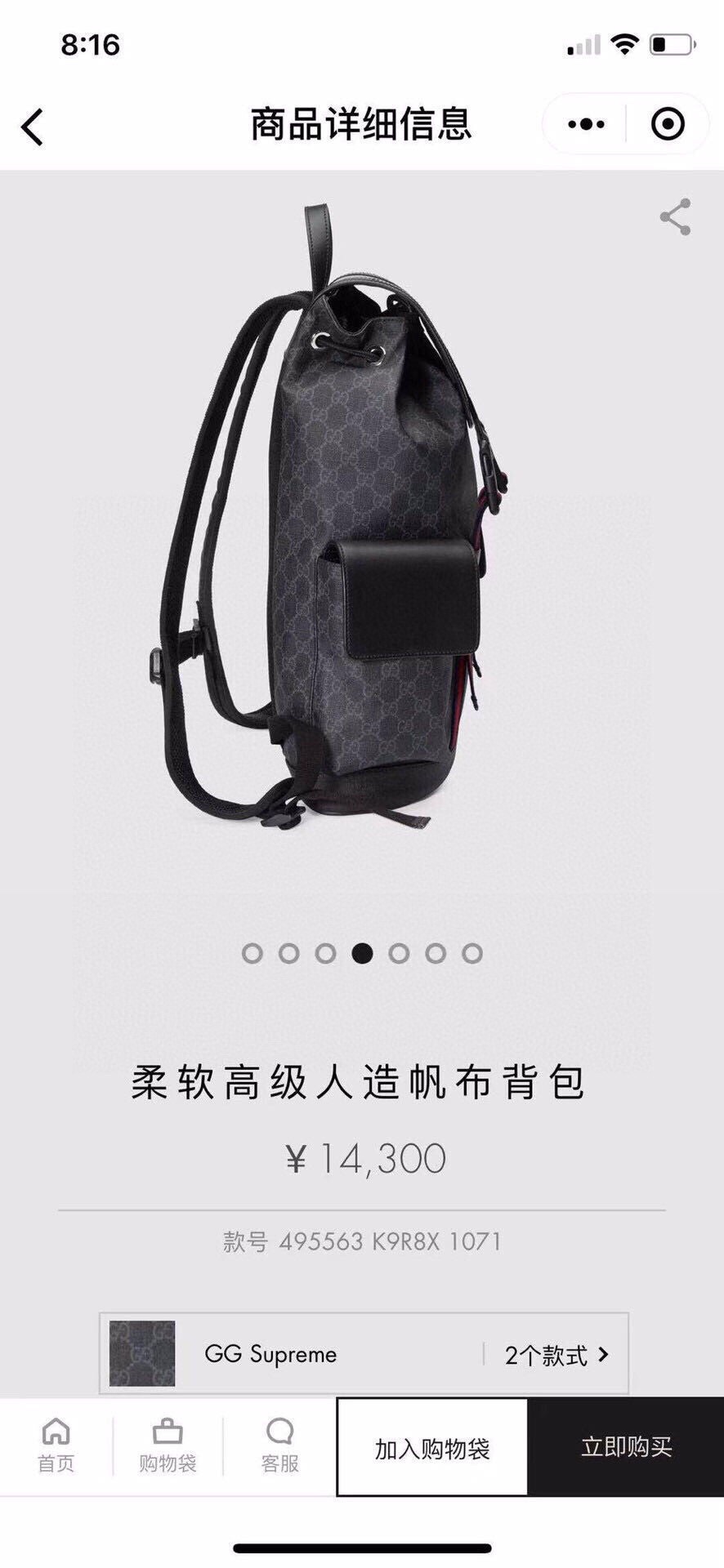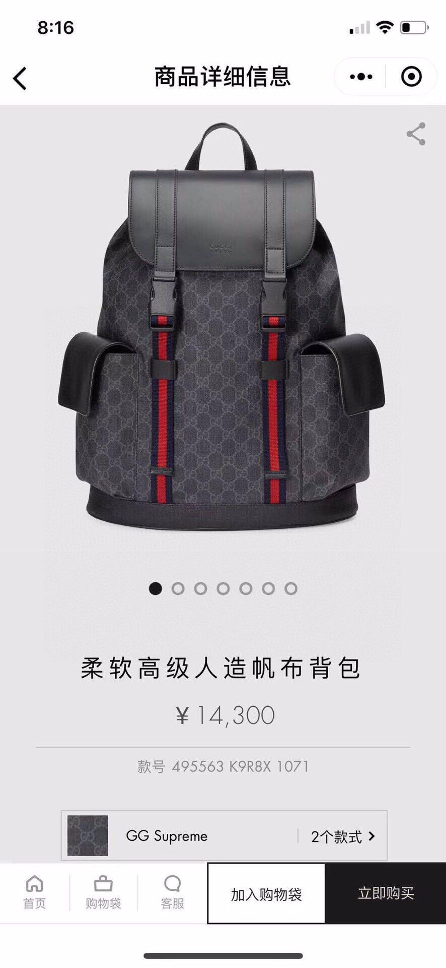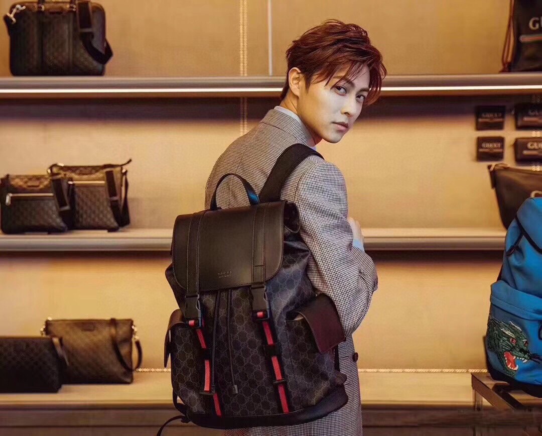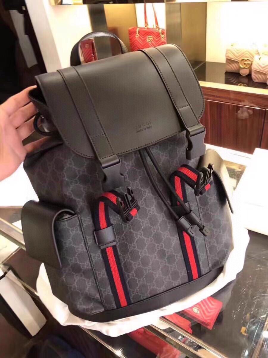 Gucci 古奇男士🇮🇹双肩包~更搭配织带装饰肩带和采用柔软高级人造帆布精心打造,此材料为高级人造帆布更为柔软的版本,以超细纤维涂层面料制成,装饰精美的GG图案。覆面超细纤维面料制作,配以黑色进口牛皮滚边,