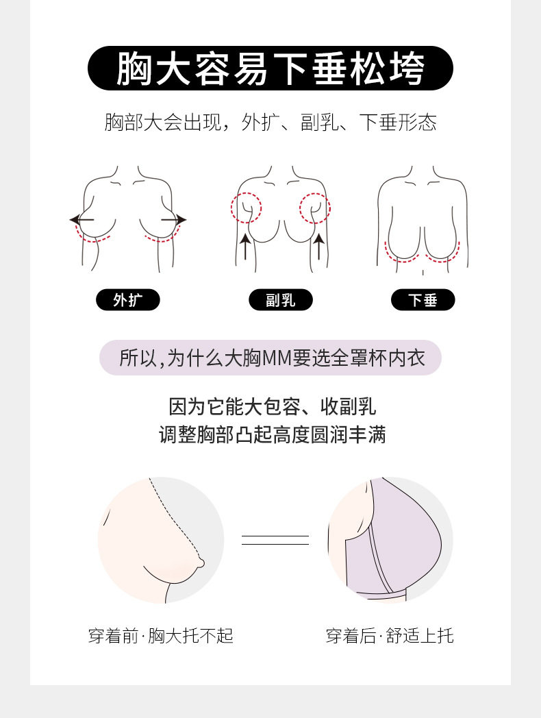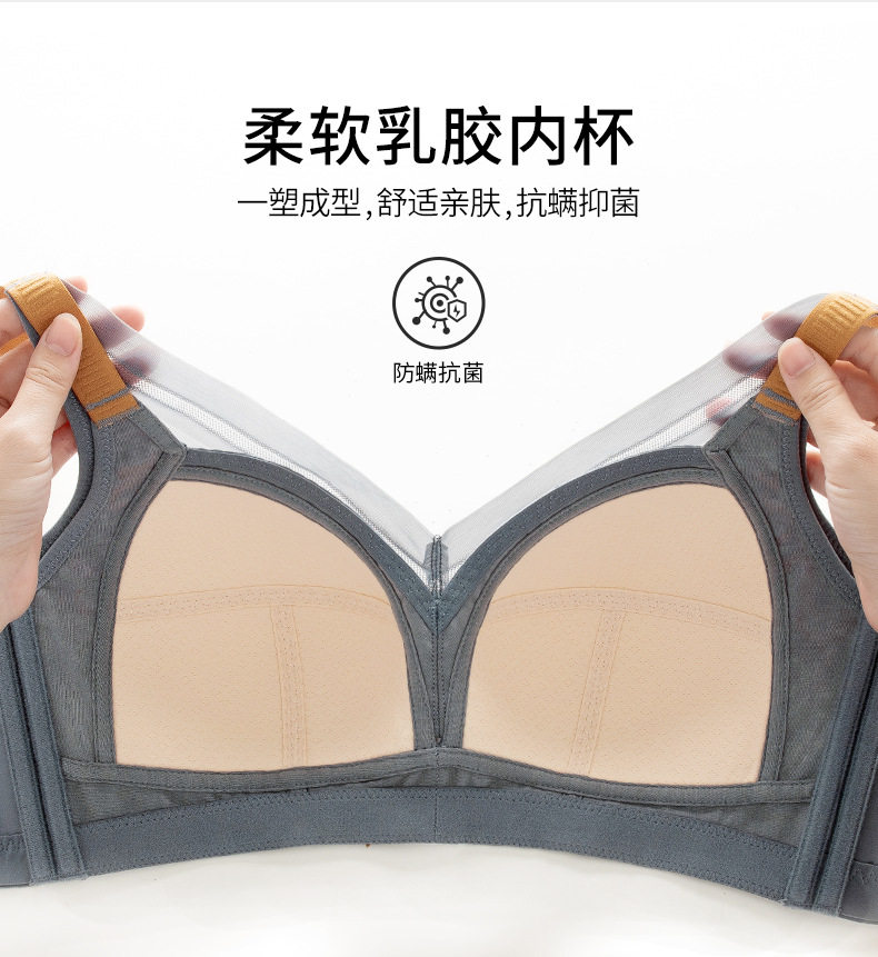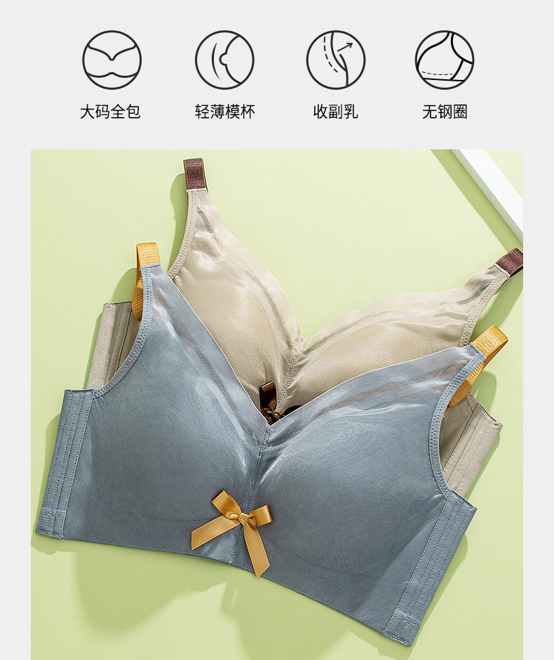 QC-W6057* 大胸显小薄杯光面文胸无钢圈乳胶大码内衣全罩杯聚拢轻薄上托文胸(单件)