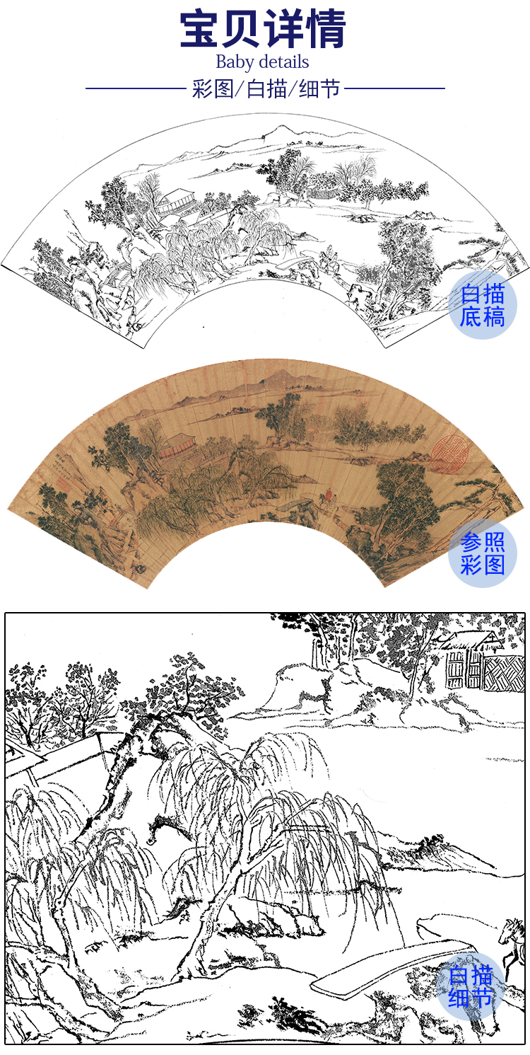 工笔画白描底稿 山水扇面小品 明 文徵明 SR26
