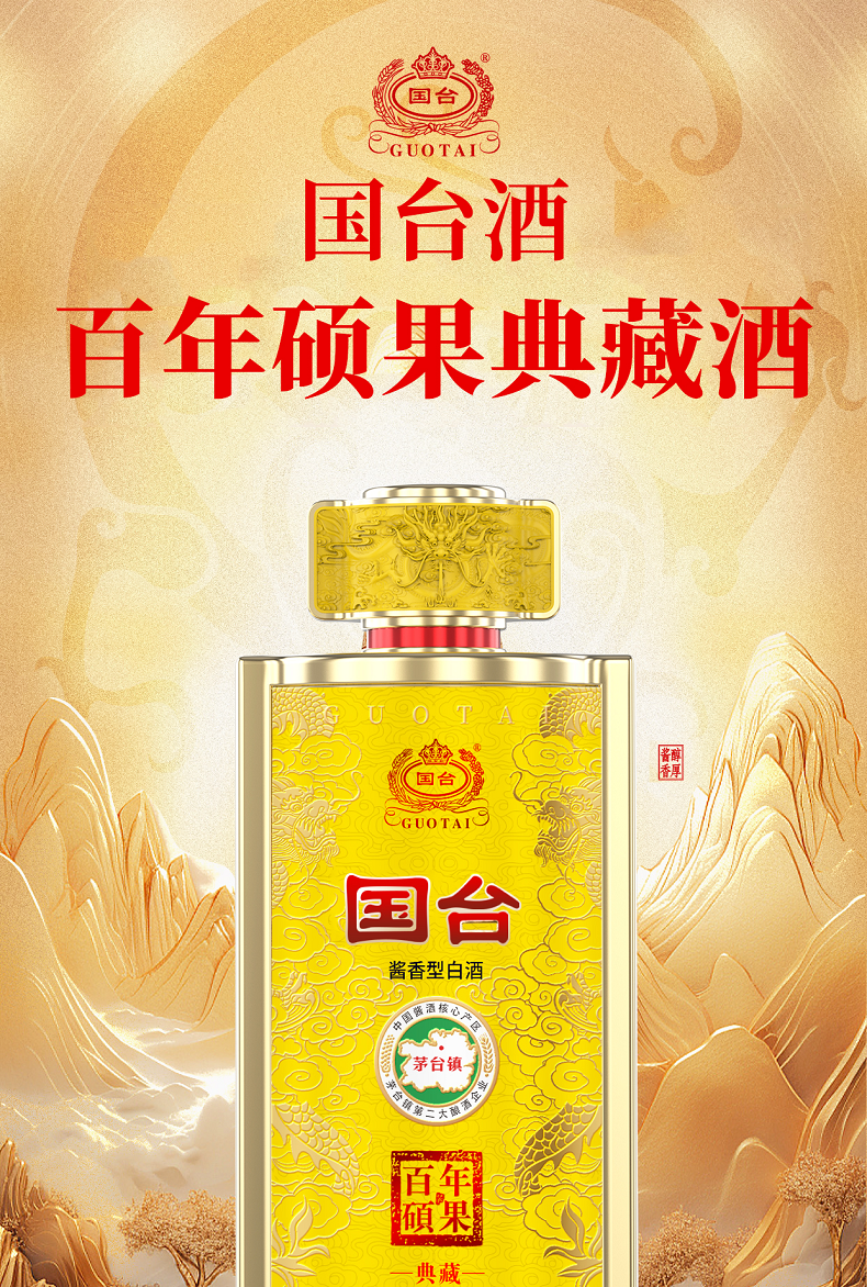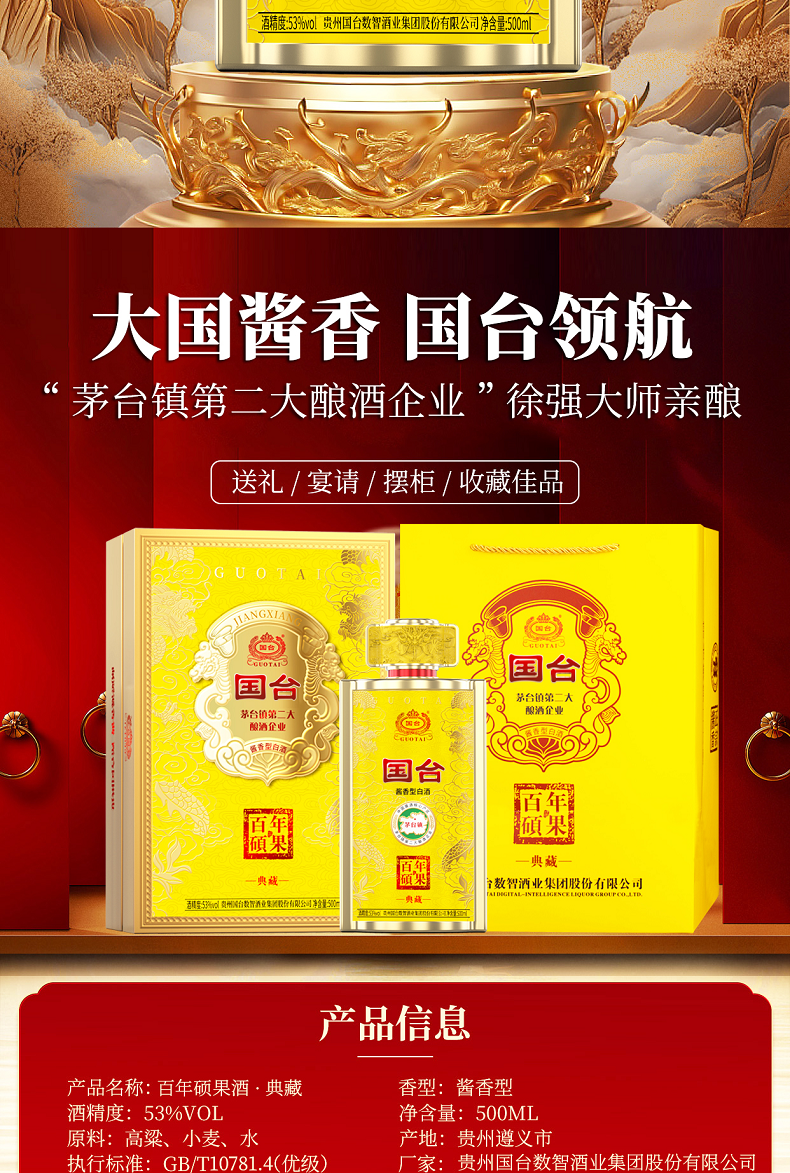 热卖中!!顺丰发货!【国台集团 徐强大师亲酿】国台百年硕果·典藏 53度酱香型白酒 500ml/瓶内赠2酒杯