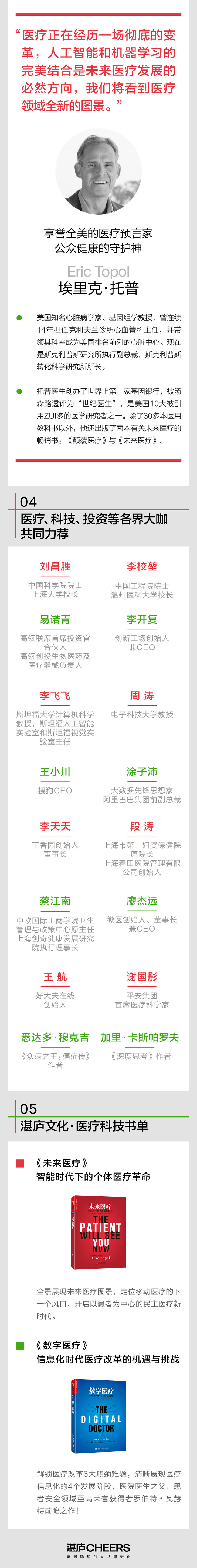 埃里克·托普有一种独特的本领,他能在书中把我们带到医学的前沿。这本《深度医疗》可读性强、文笔优美、内容充实,能够从根本上改变你对未来医疗技术及其对我们生活的影响的看法。我极力推荐这本书。