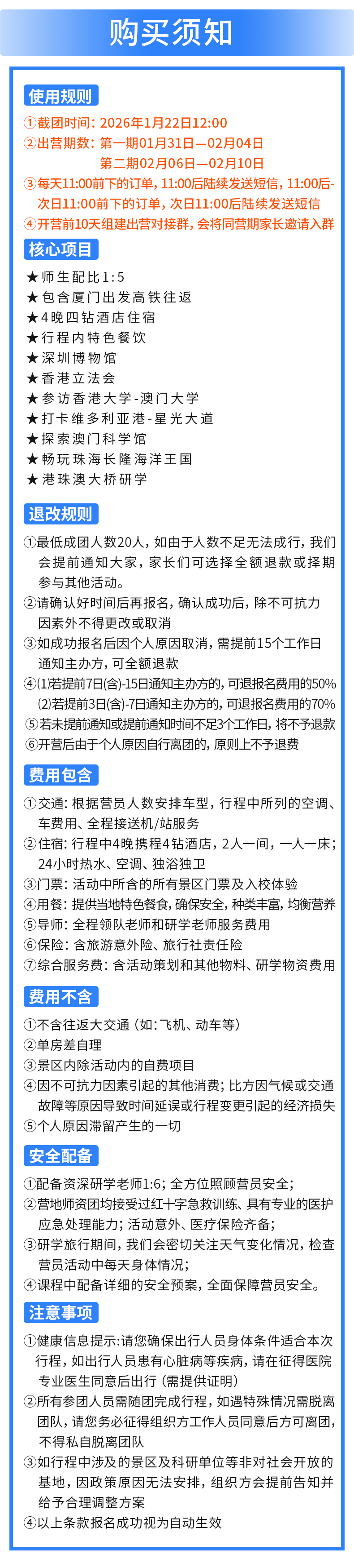【2025|冬令营】港珠澳5天4晚三城联动精品游学冬令营/1名(营地:中国香港、澳门)【叼生活】