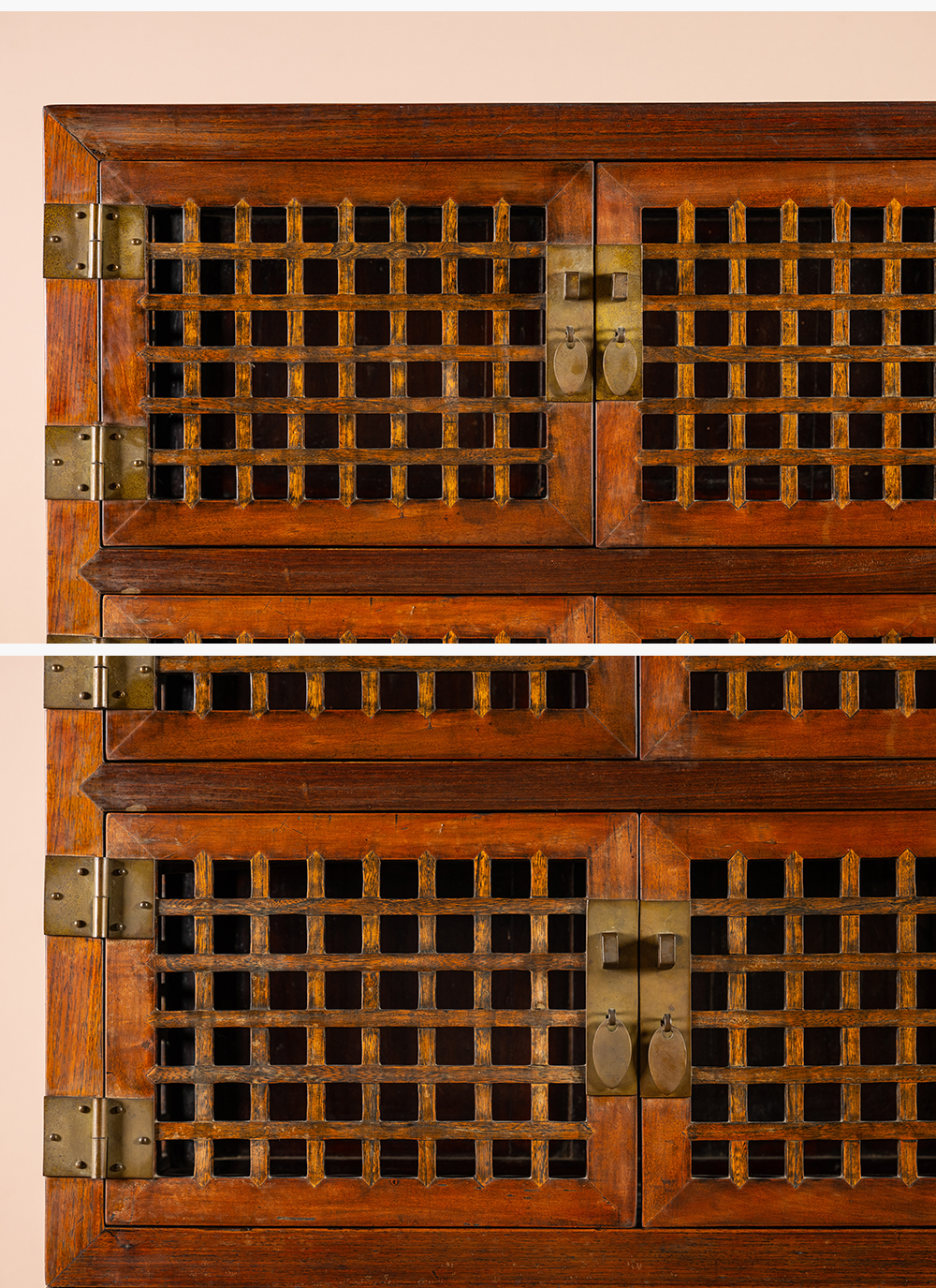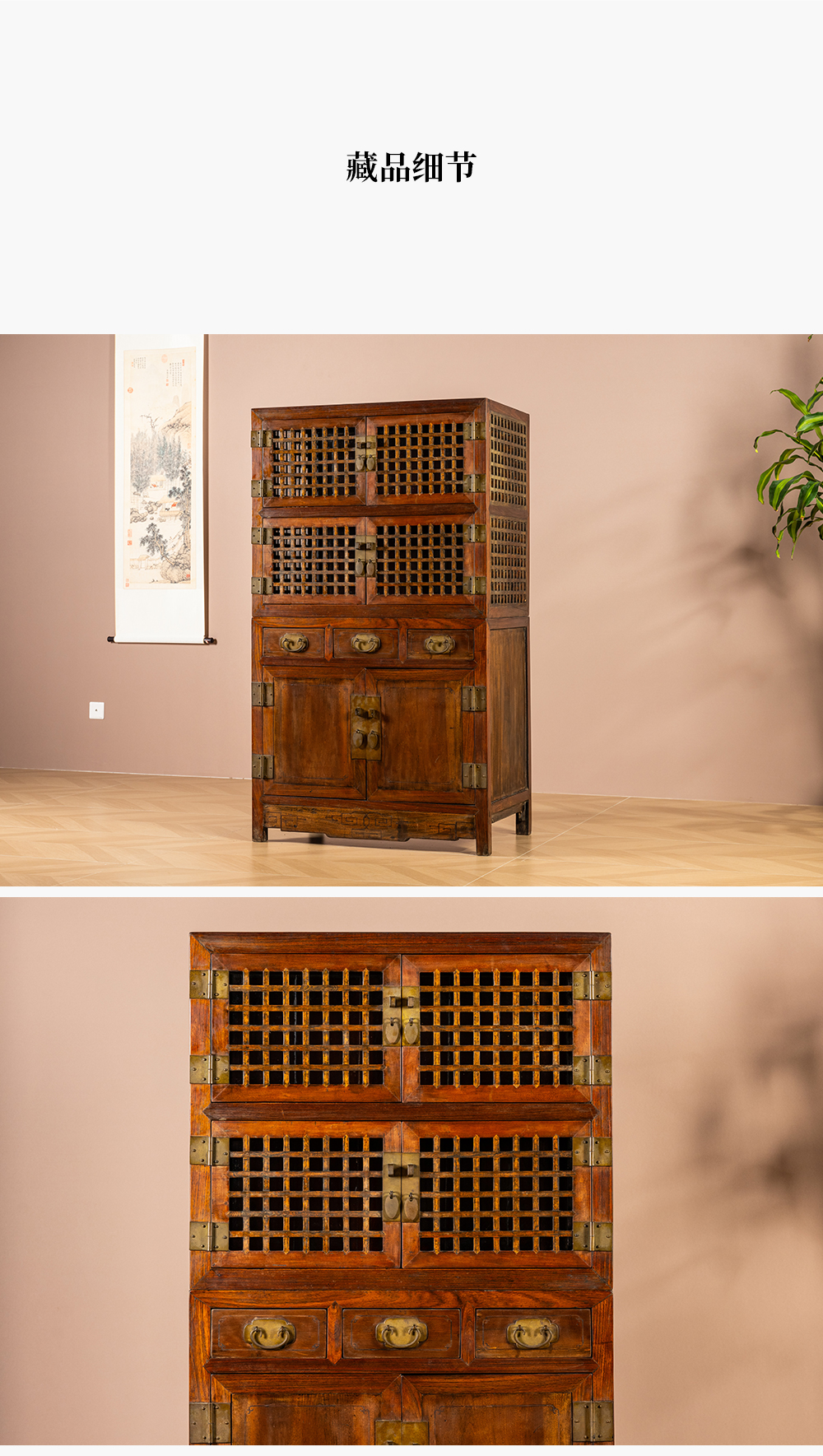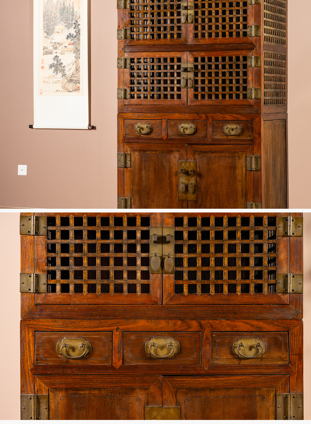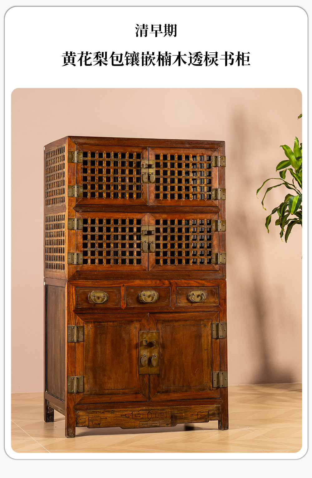 清早期 黄花梨包镶嵌楠木透棂书柜