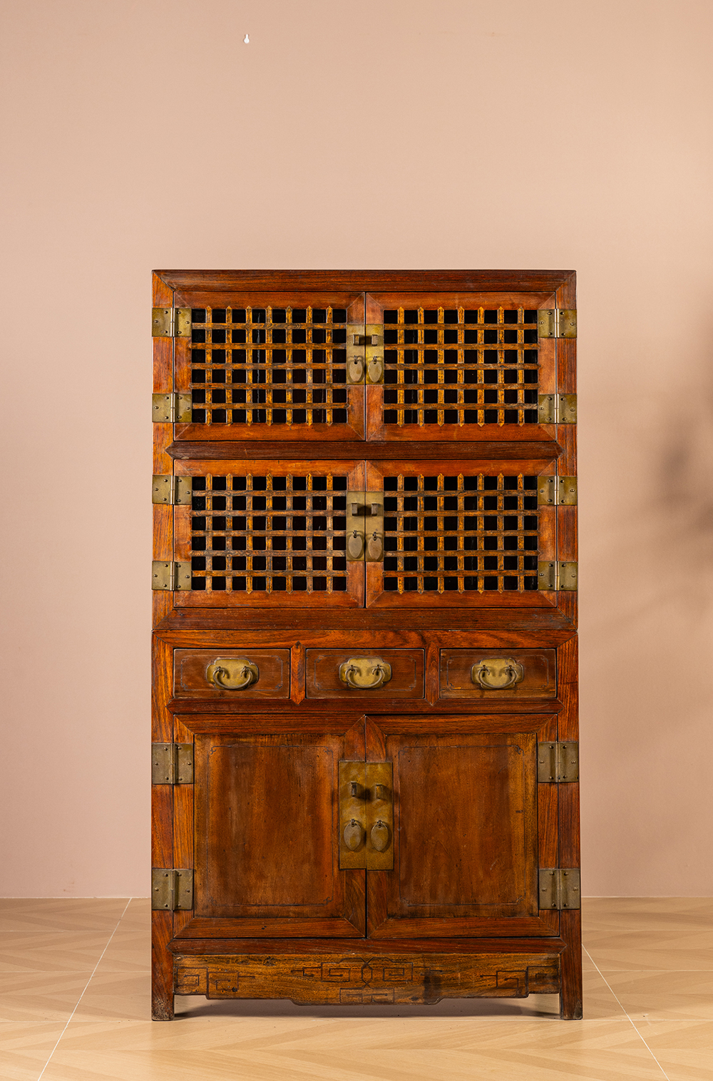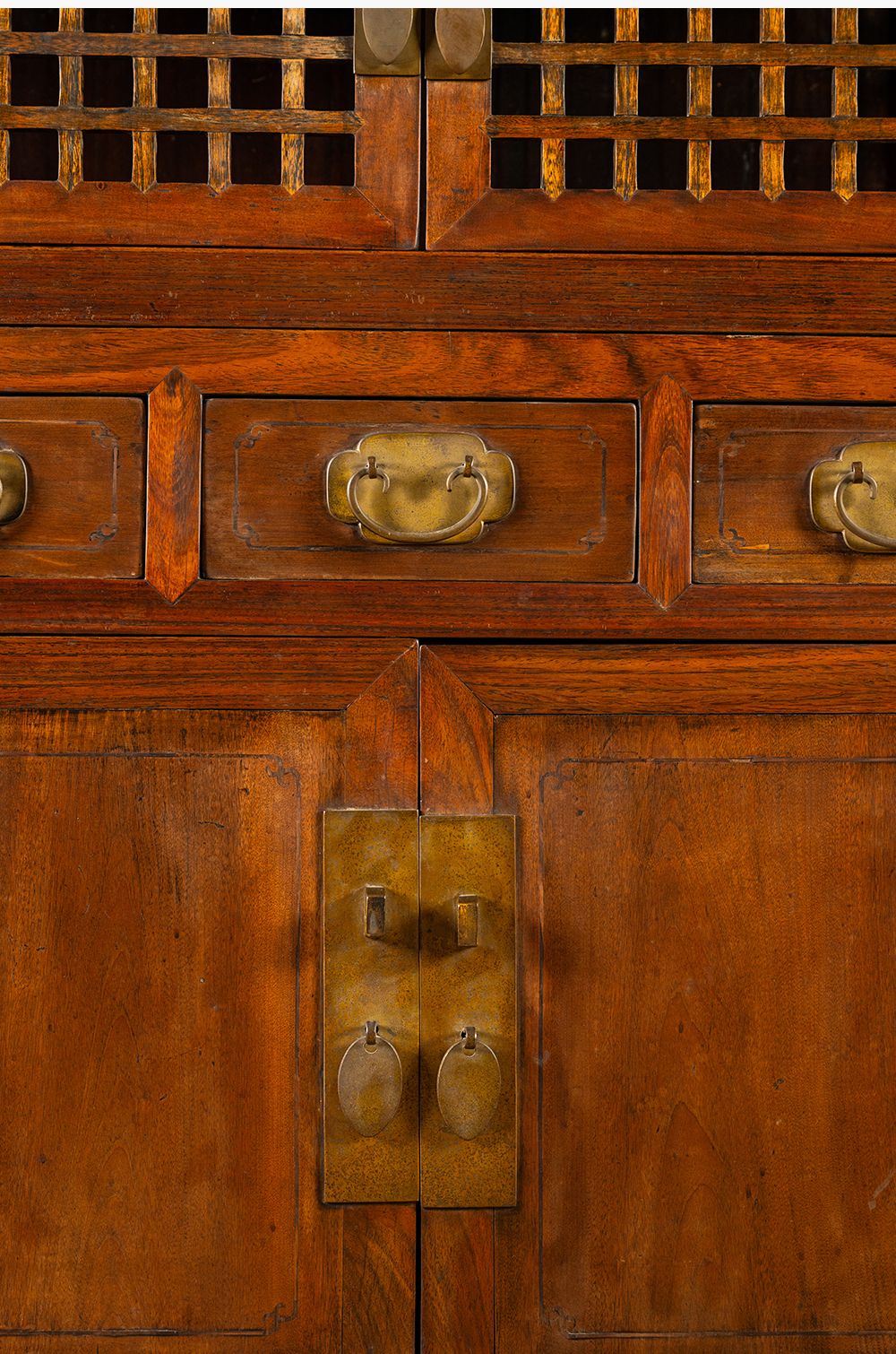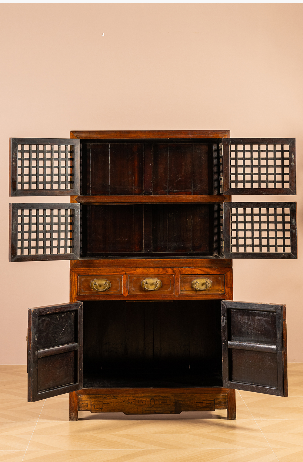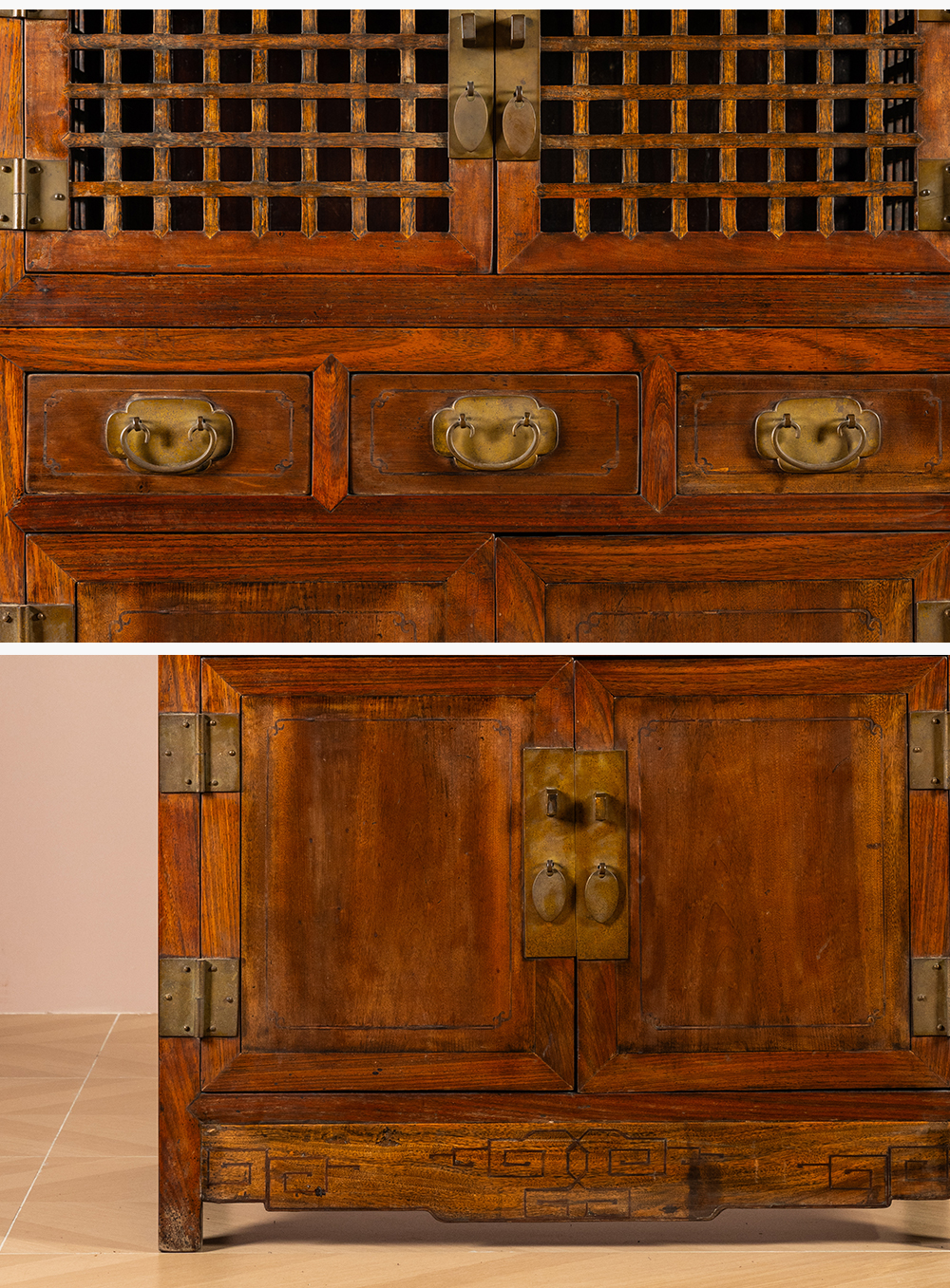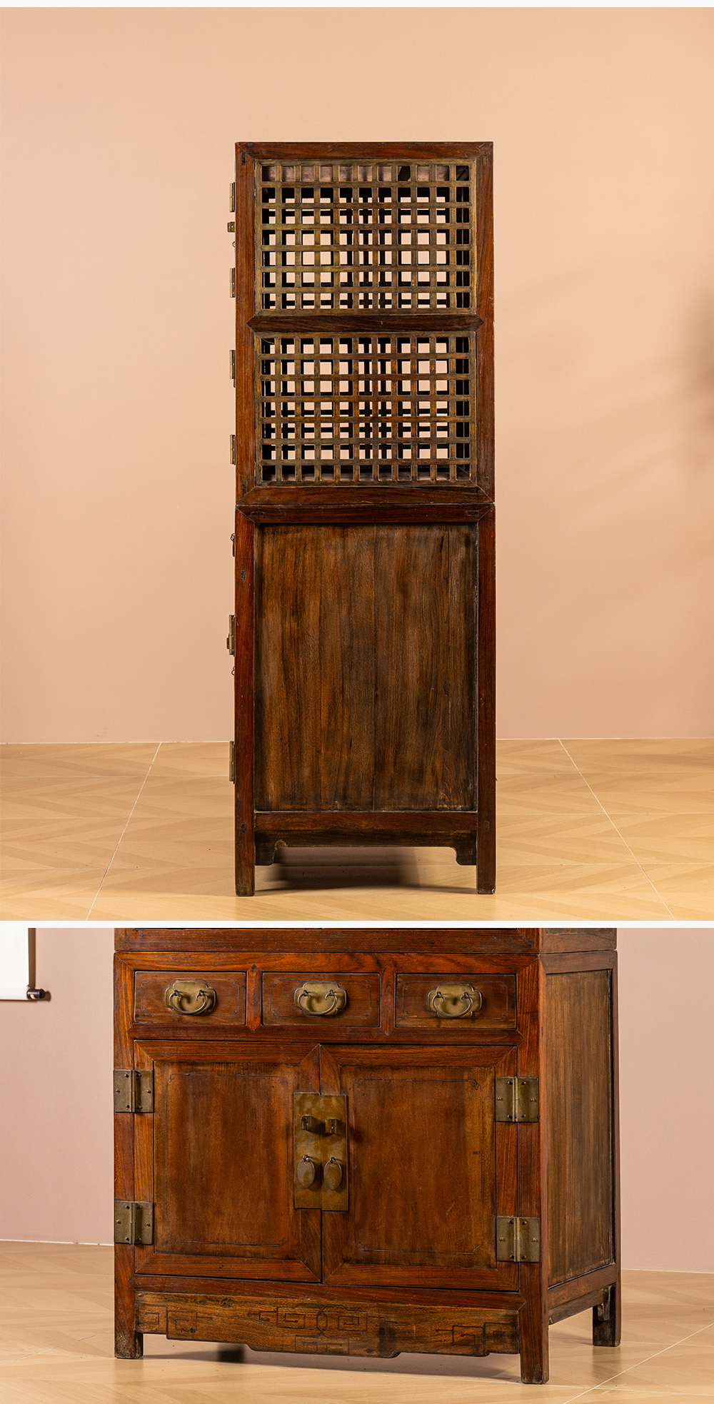 清早期 黄花梨包镶嵌楠木透棂书柜
