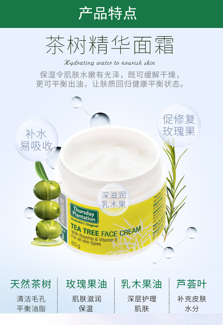 【海外直邮】星期四农庄茶树 祛痘疤淡化痘印滋润保湿面霜 65g
