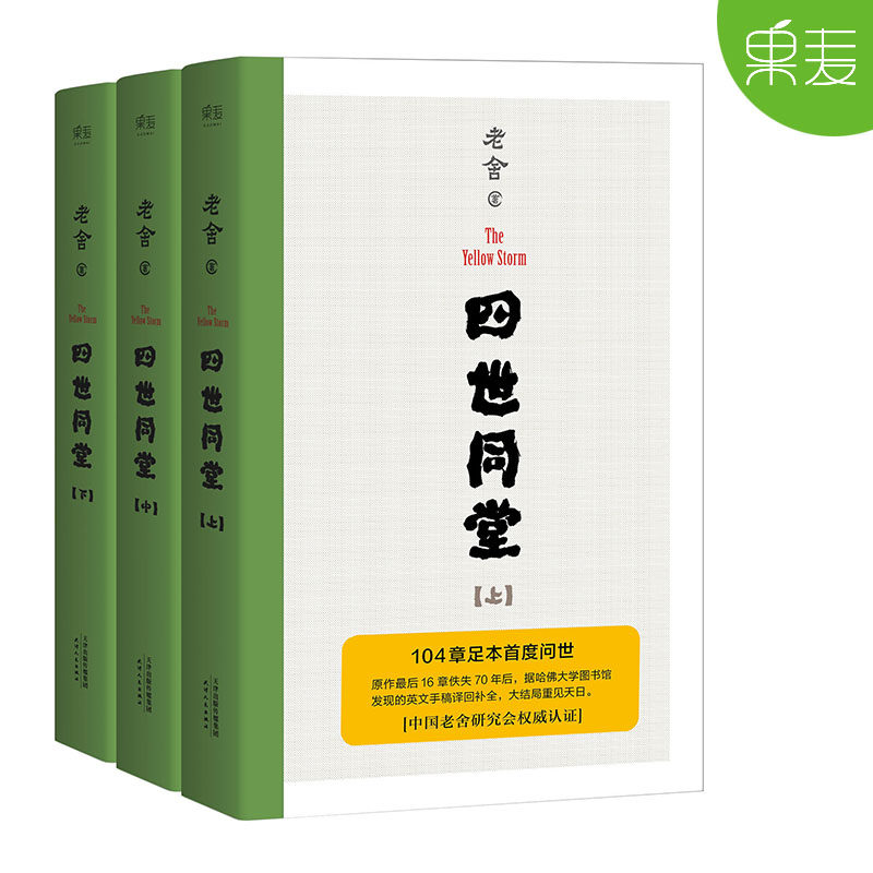 有生之年,老舍先生的《四世同堂》有了大结局! 老舍长篇代表作《四世同堂》创作跨越五年,分为《惶惑》《偷生》《饥荒》三部,是老舍创作生涯中具有代表性的作品之一,它由几个家庭的跌宕起伏,映照出中华的根与魂。 由于原作最终16章佚失,《四世同堂》仅有87章留存于世,70年间从未完整出版,是读者的一大憾事。2016年,《四世同堂》佚失部分的英文底稿终于在美国哈佛图书馆被发现,在全世界的文学爱好者中引起巨大轰动。果麦版《四世同堂》收录并译回这十余万字,并根据老舍手稿逐字校订,将87章增补为104章,权威版足本重见天日,令《四世同堂》有了完整结局。 《四世同堂》是老舍先生最深刻也是最动人的作品。每一个不愿屈服于命运的的中国人,都会在这部作品中看到自己,唤醒心中沉睡的英雄。