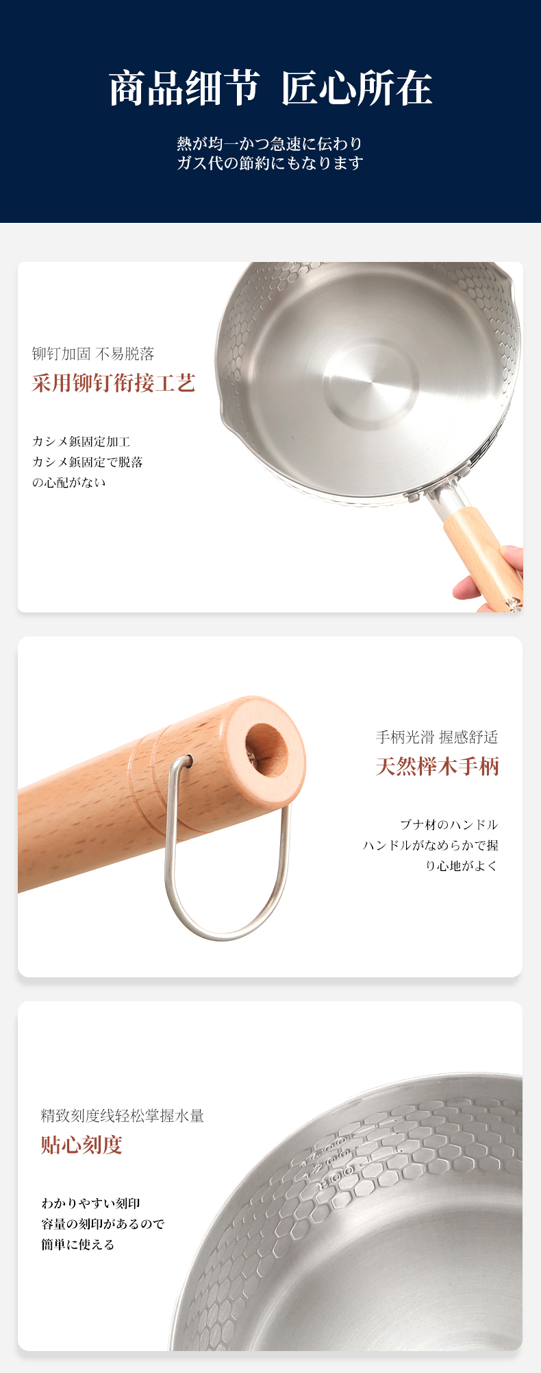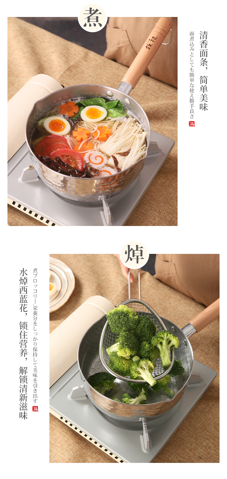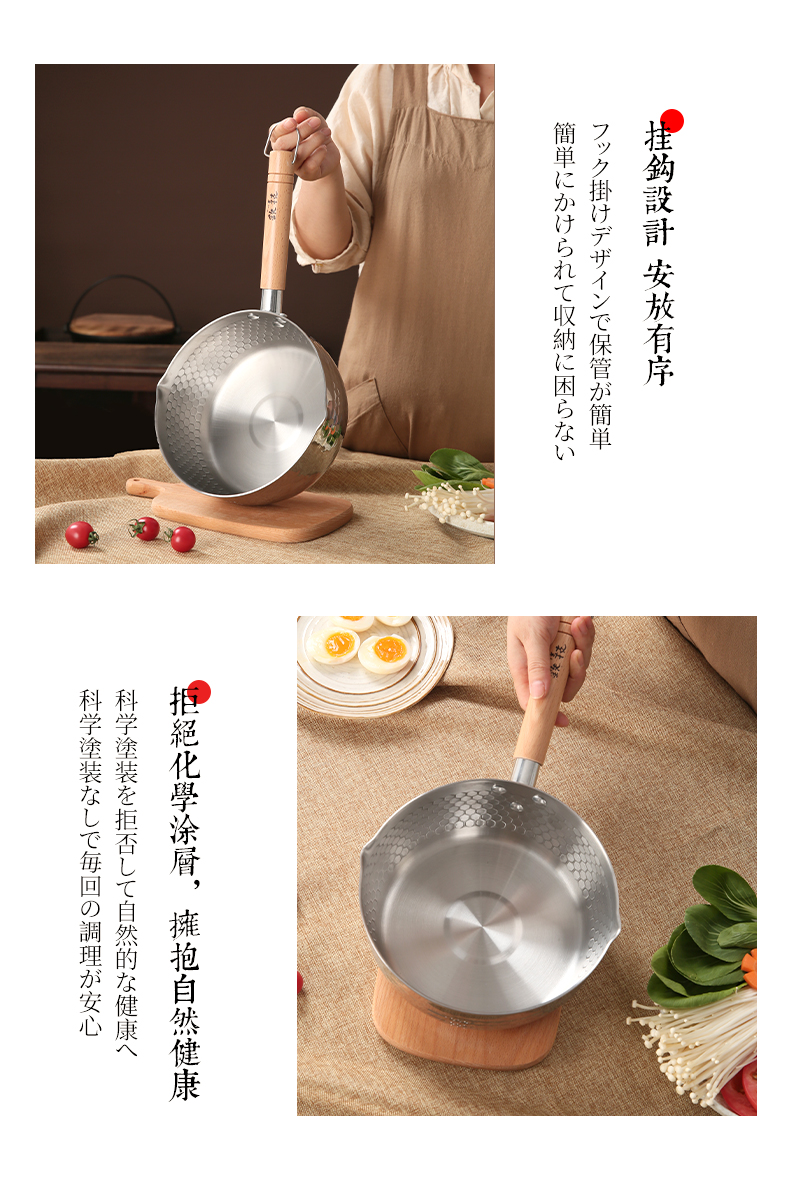 特点: 小巧便携,设计精巧,适用于小户型及户外。榉木手柄握感舒适,导热快且均匀,无涂层安全健康,多功能用途,易清洗,是厨房与露营的理想伴侣。