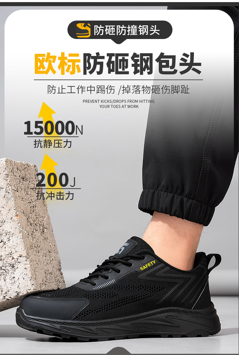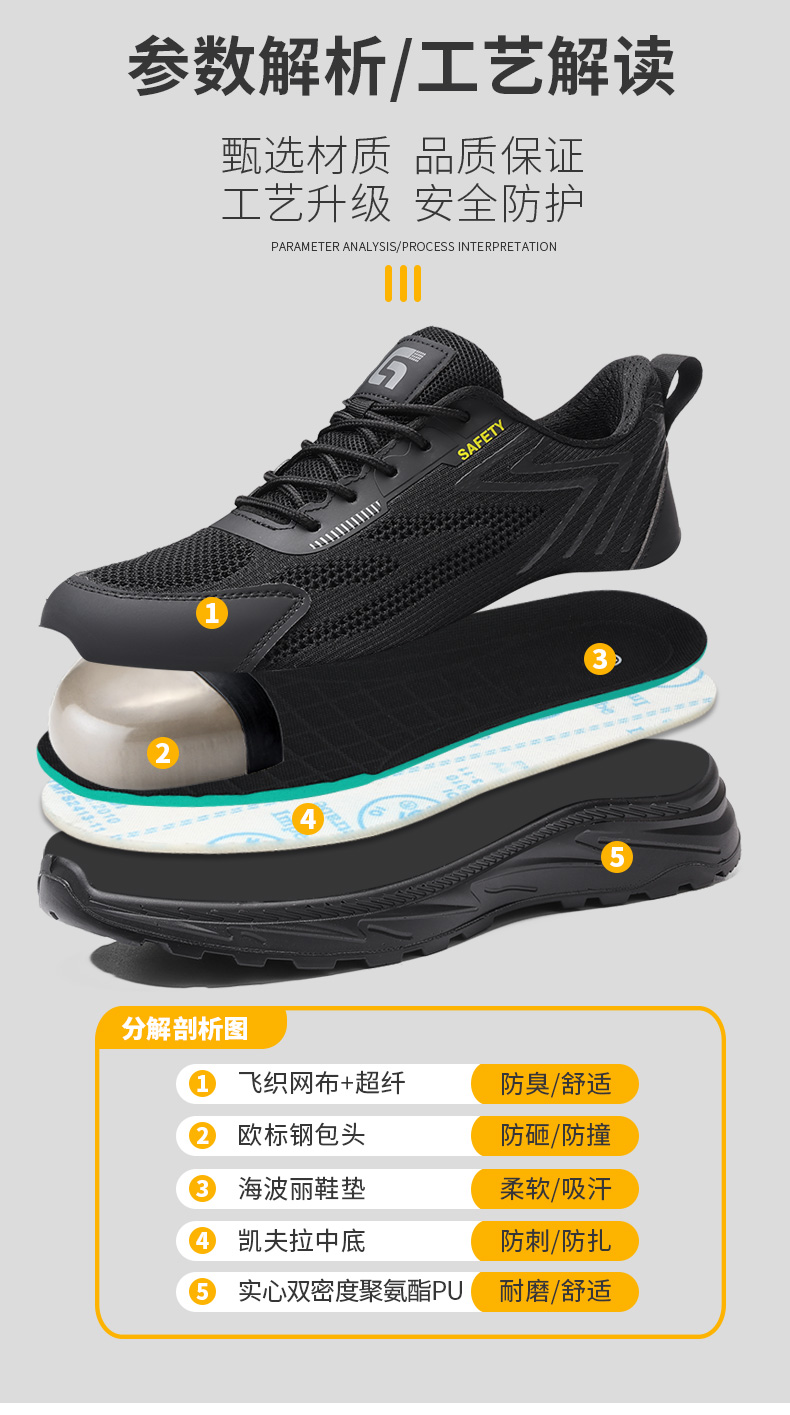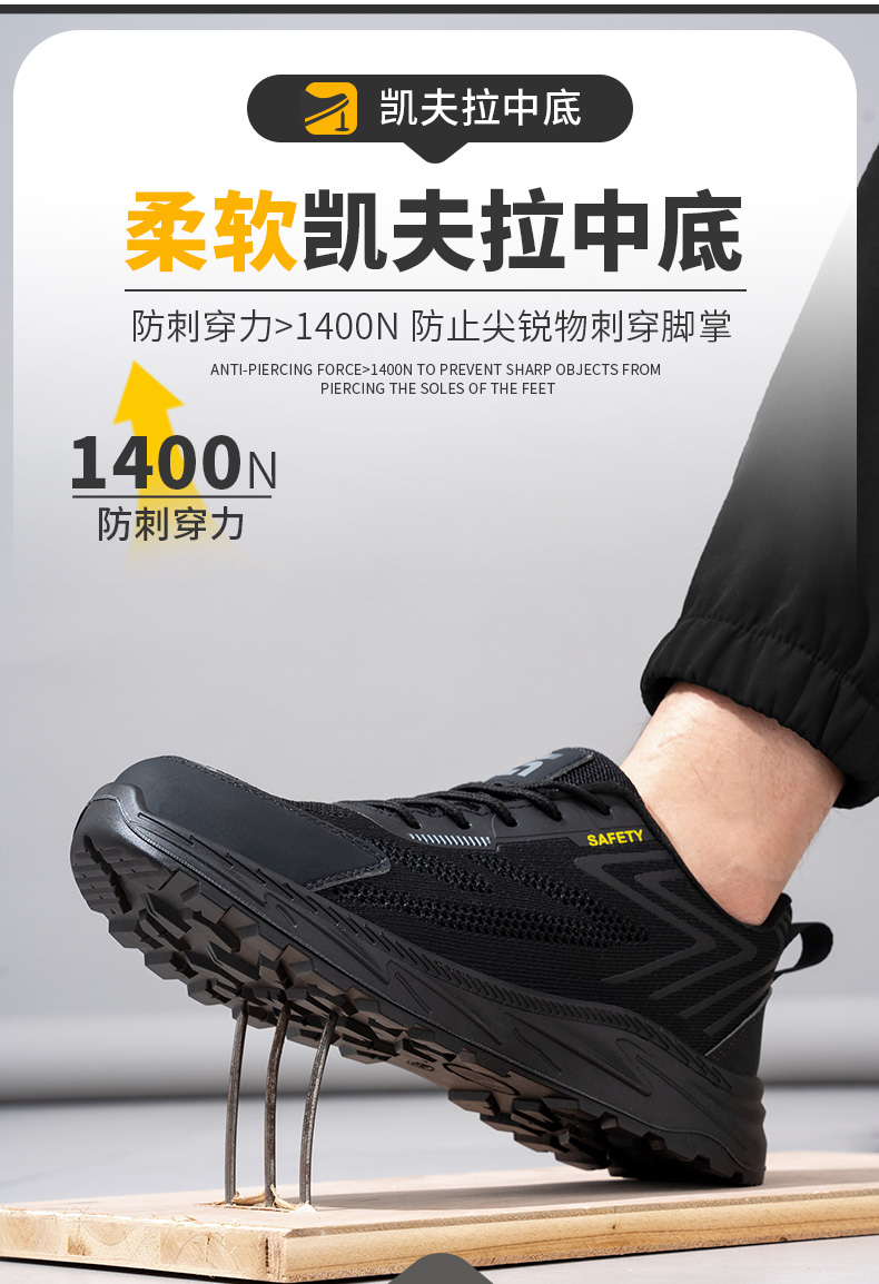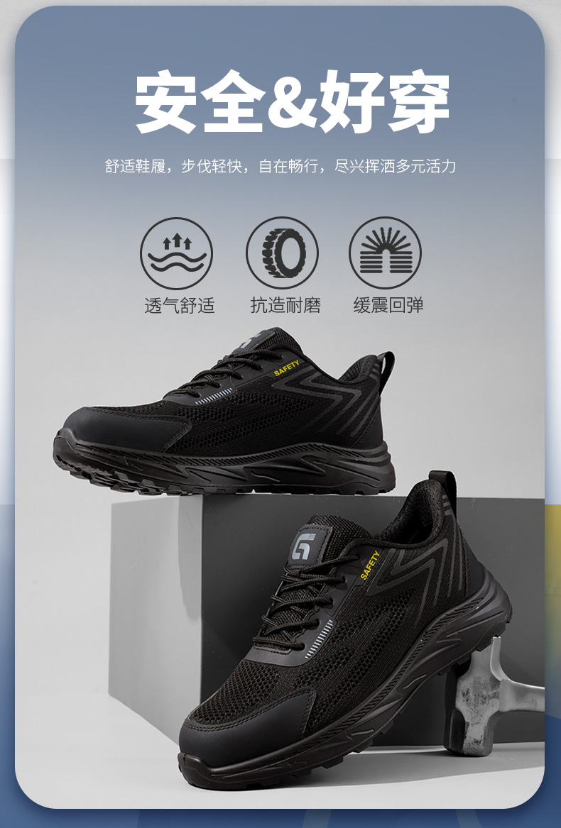 新品春季款实心底劳保鞋钢头防砸防刺穿工作耐磨舒适透气 商品图0